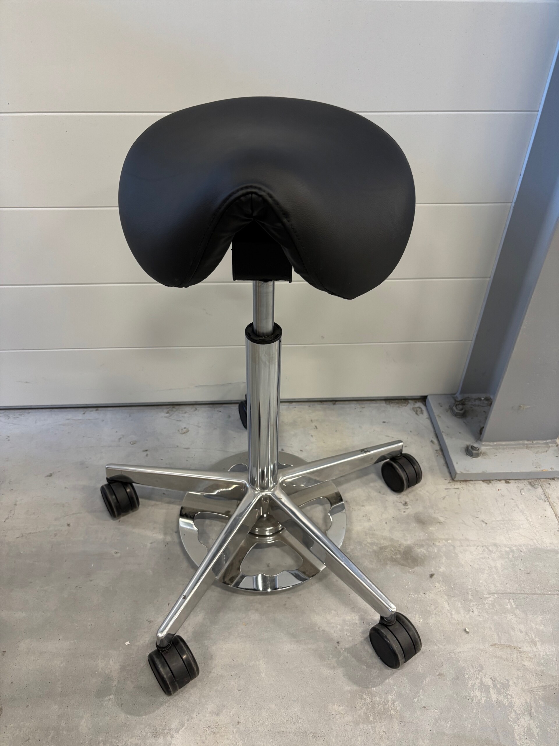 Seat in artificial leather (black). Star base in metal (aluminium). Adjustable height.