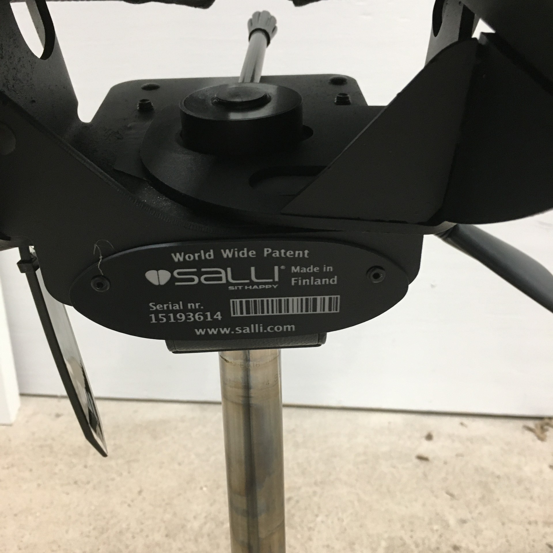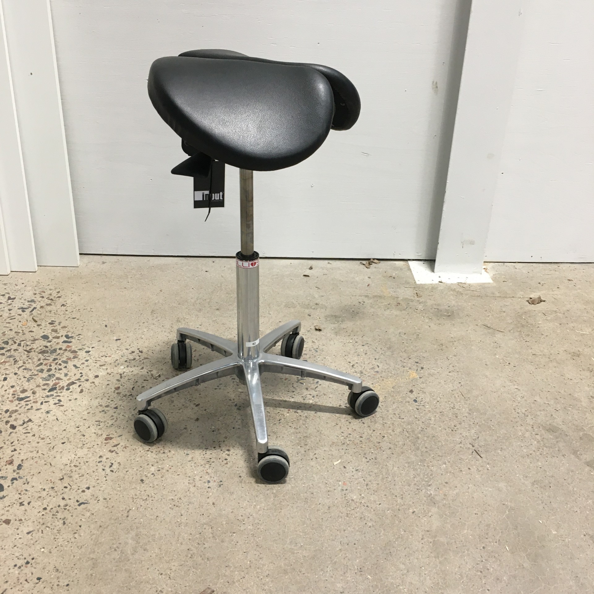 Seat in artificial leather (black). Star base in metal (aluminium). Adjustable height.