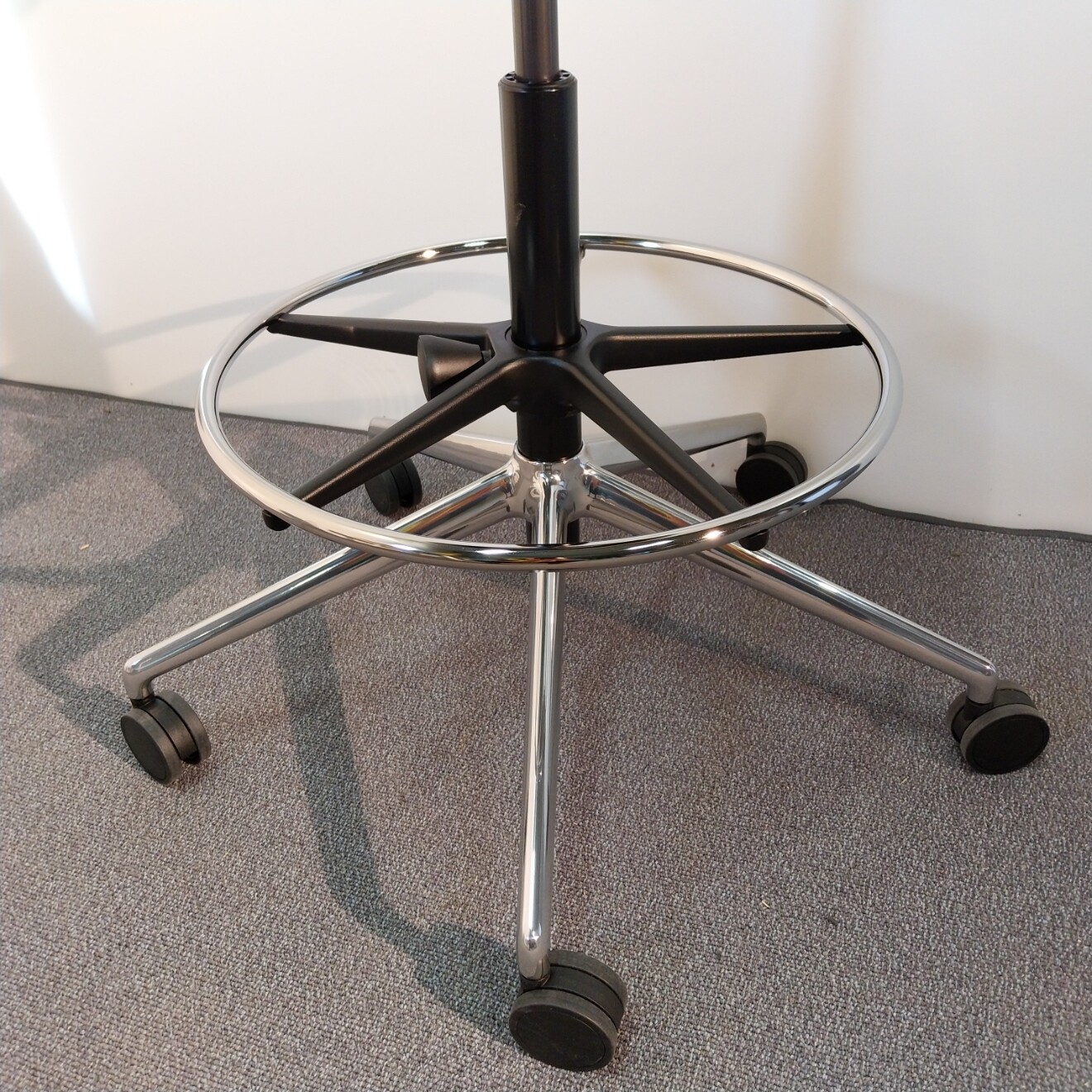 Seat in fabric (grey). Star base in metal (aluminium). Adjustable height.