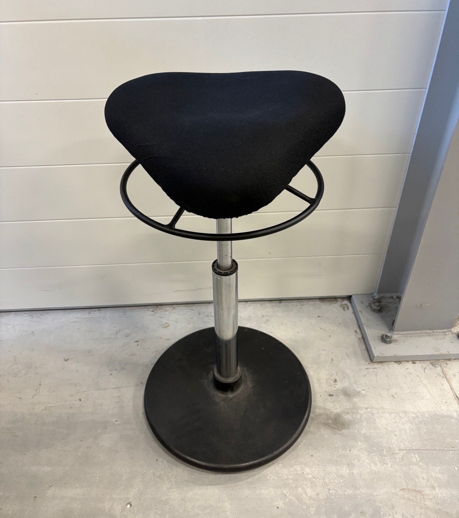 Seat in fabric (black). Disc base in metal (black).