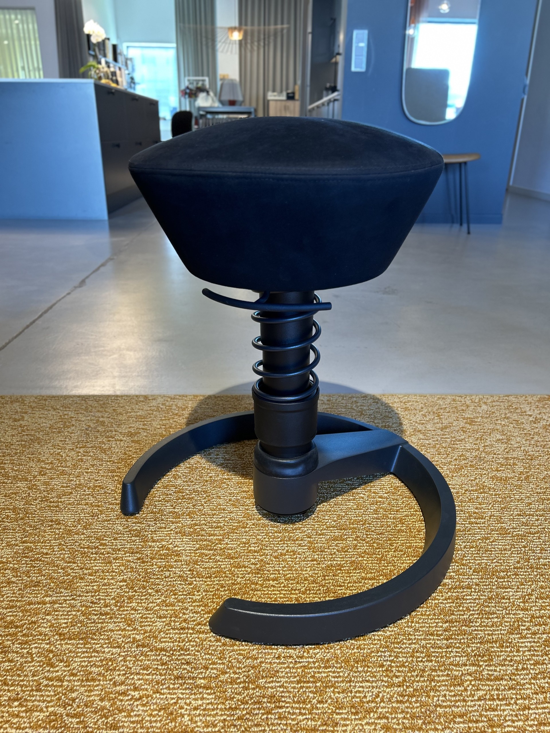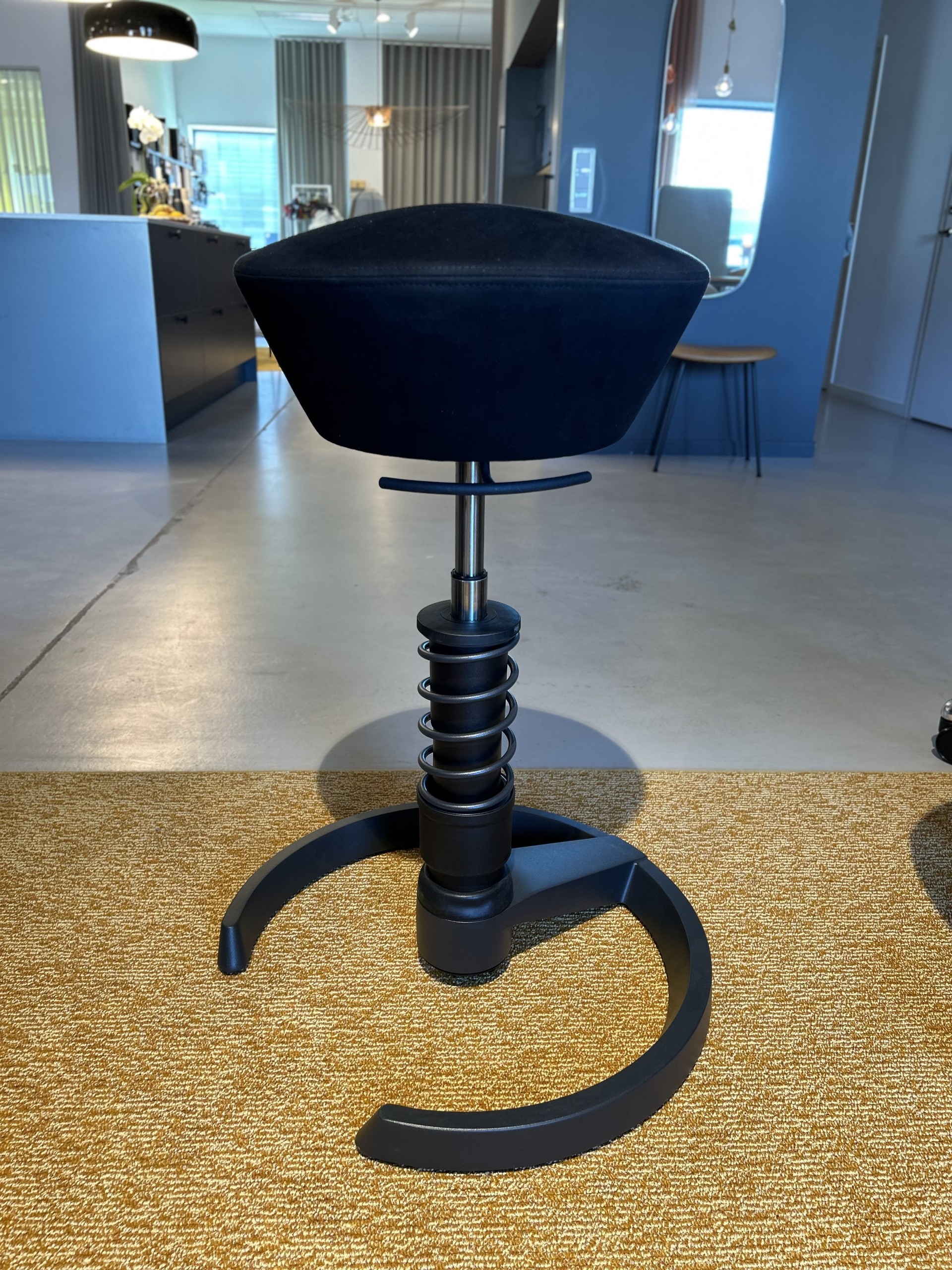 Seat in fabric (black). Disc base in metal (black). Adjustable height.
