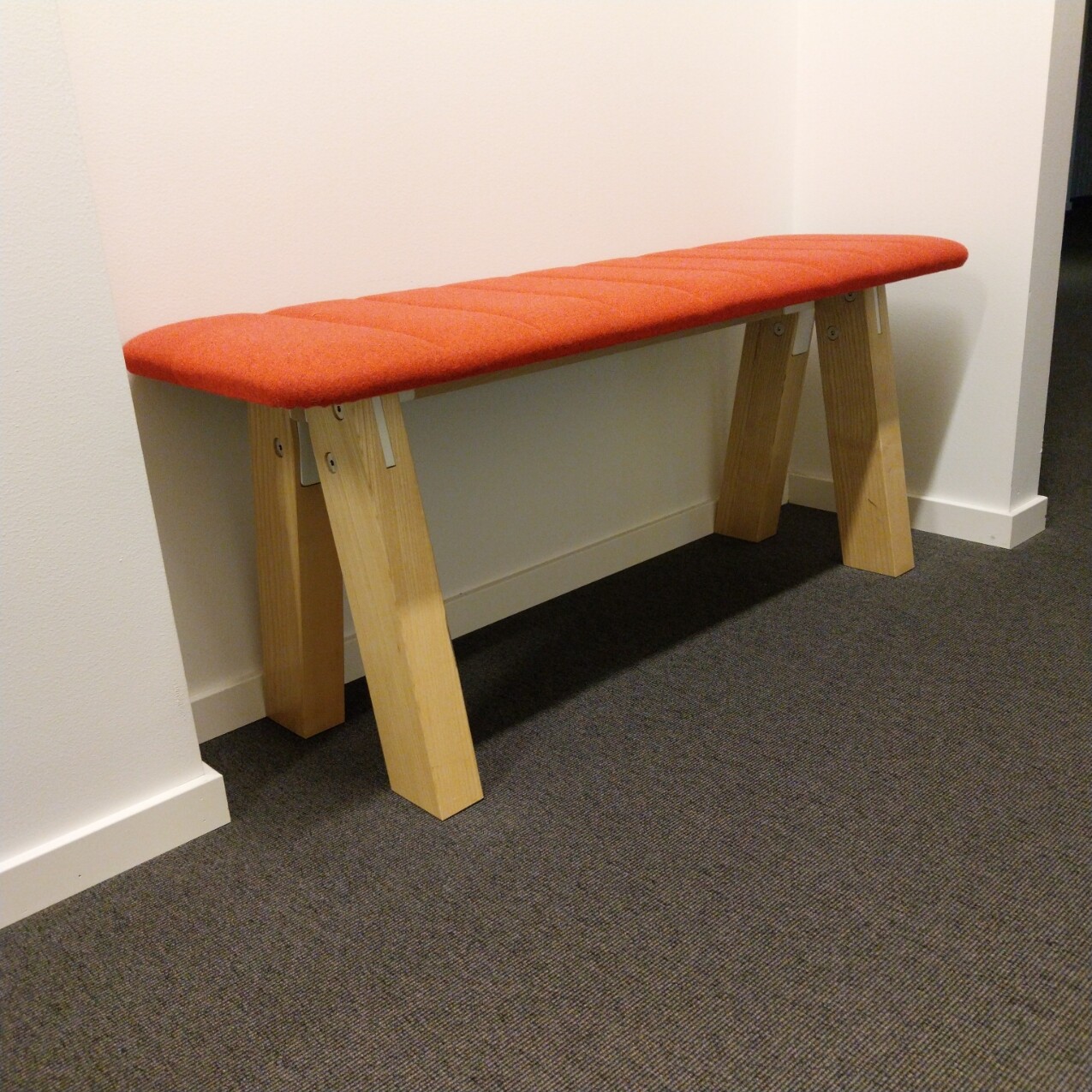 Seat in fabric (red). Legs in wood (ash).