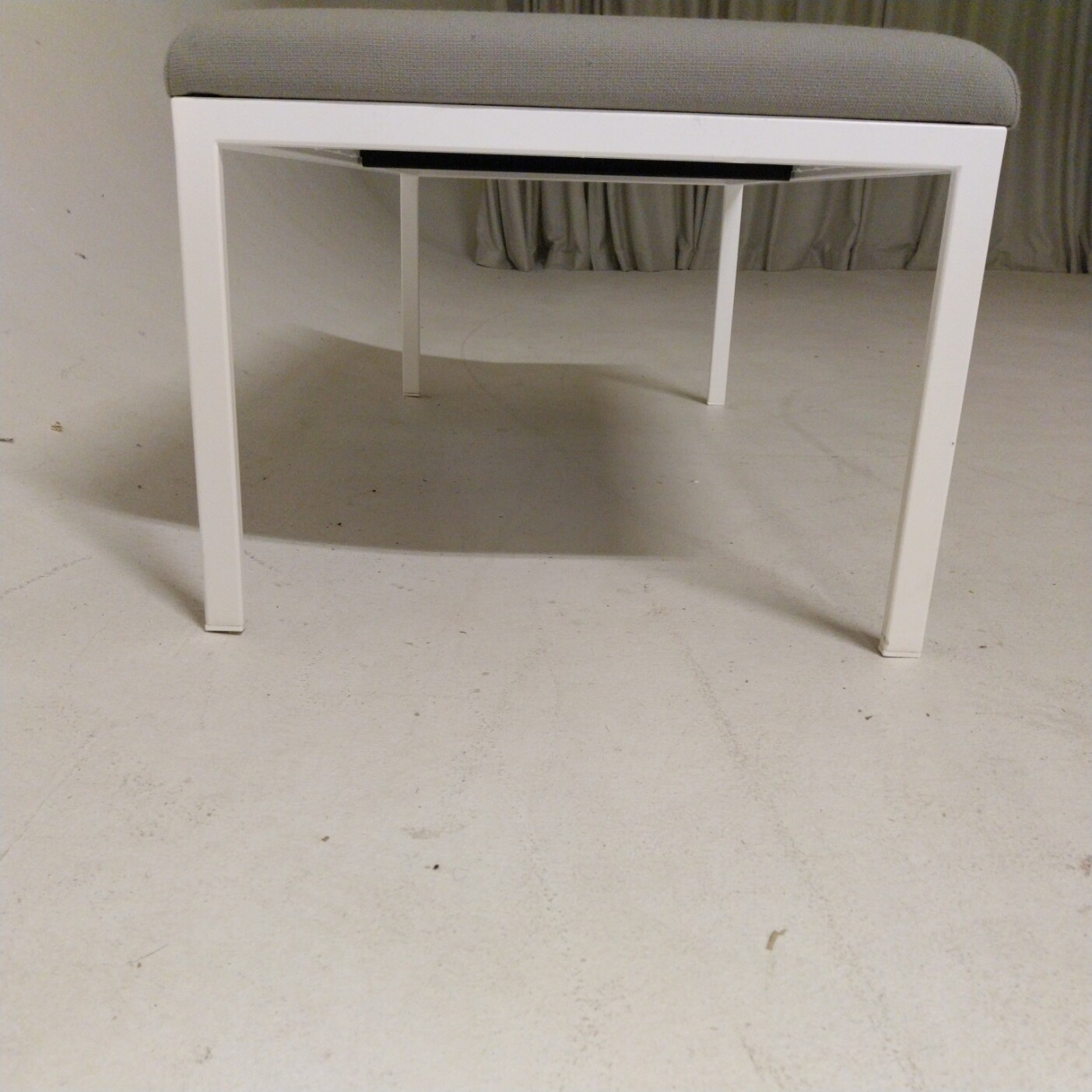 Seat in fabric (grey). Legs in metal (white).