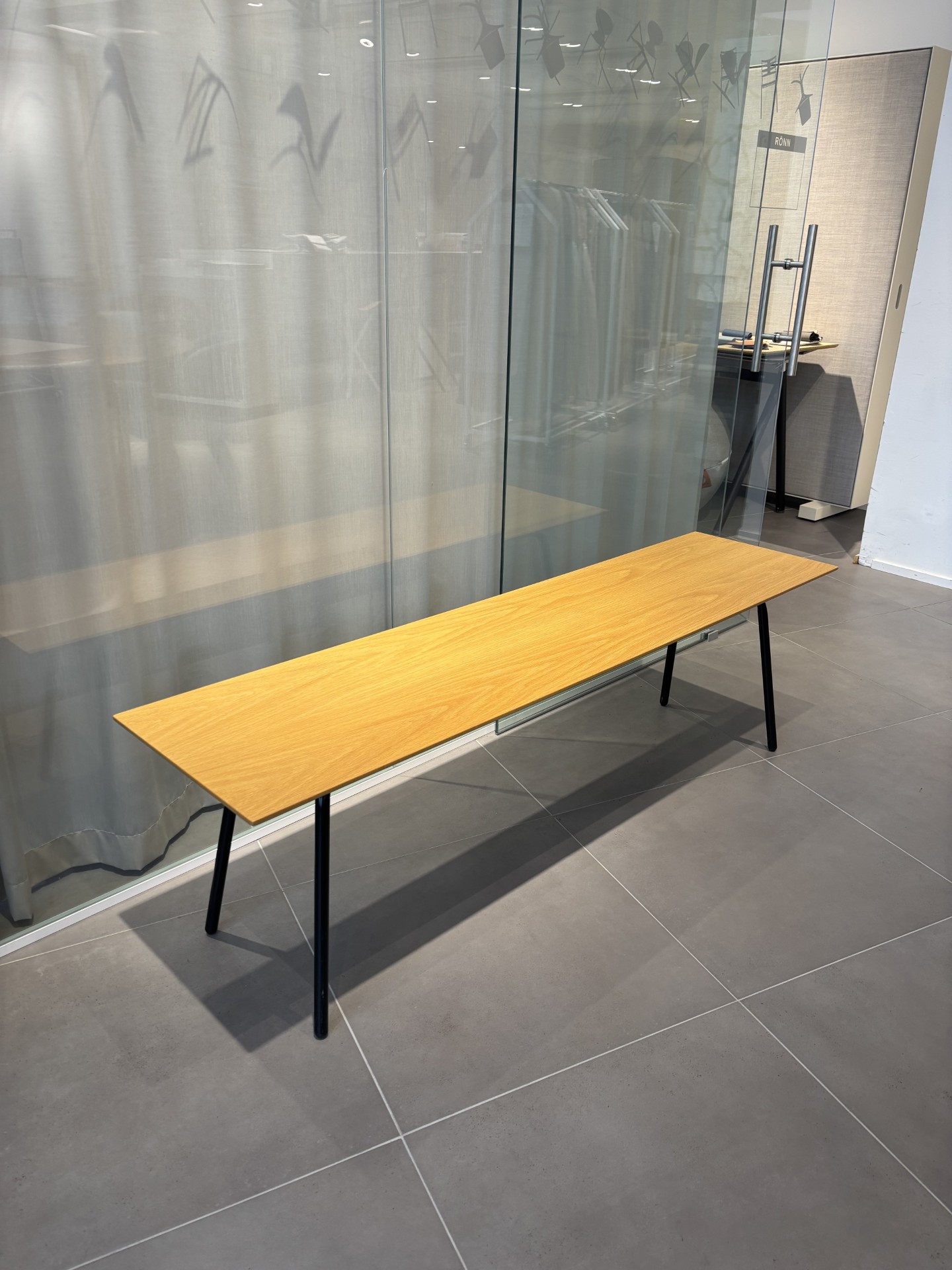 Seat in wood (oak). Legs in metal (black).