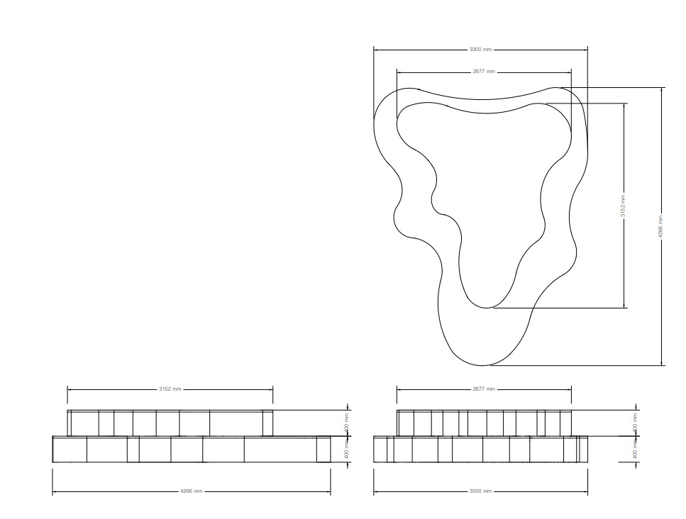 Length 4266 mmWidth 3300 mmHeight 800 mmSitting height 400 mm