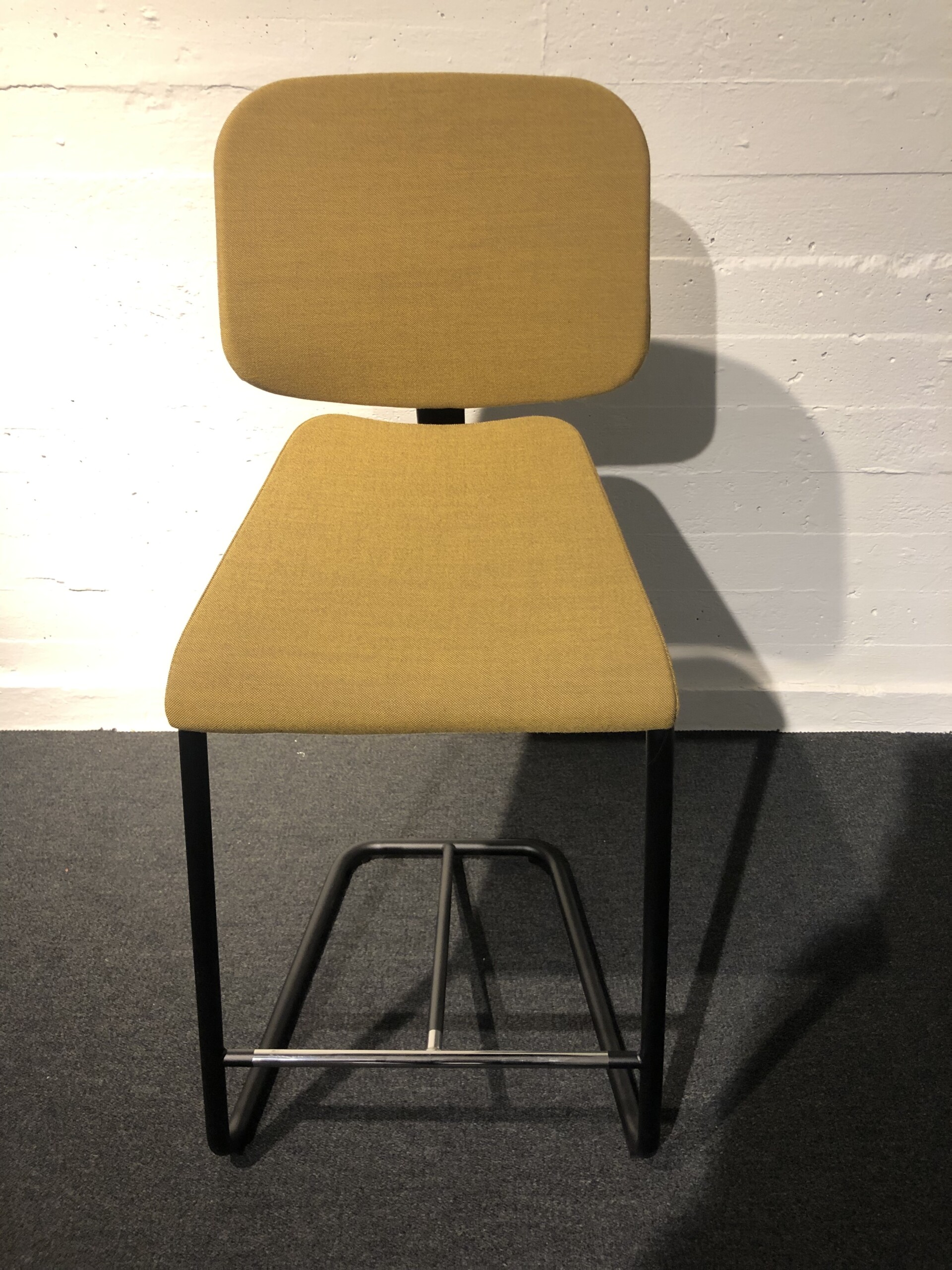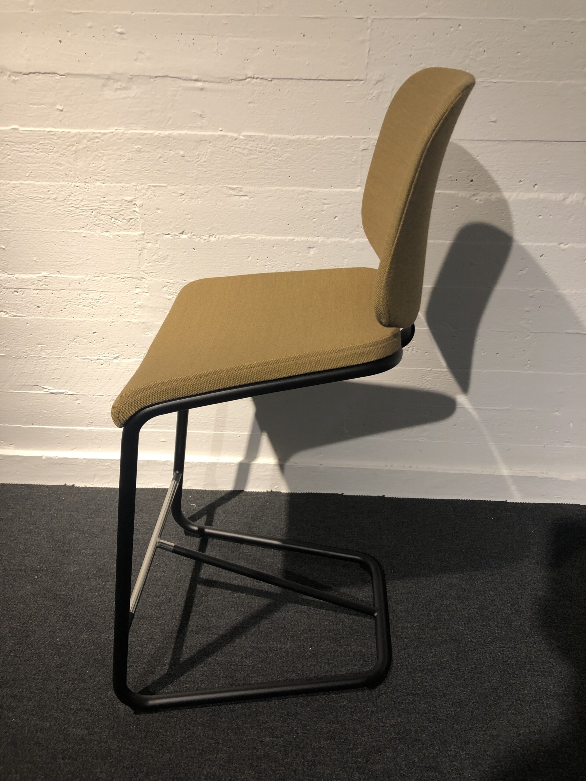 Seat and backrest in fabric (yellow). Sledgebase in metal (black).