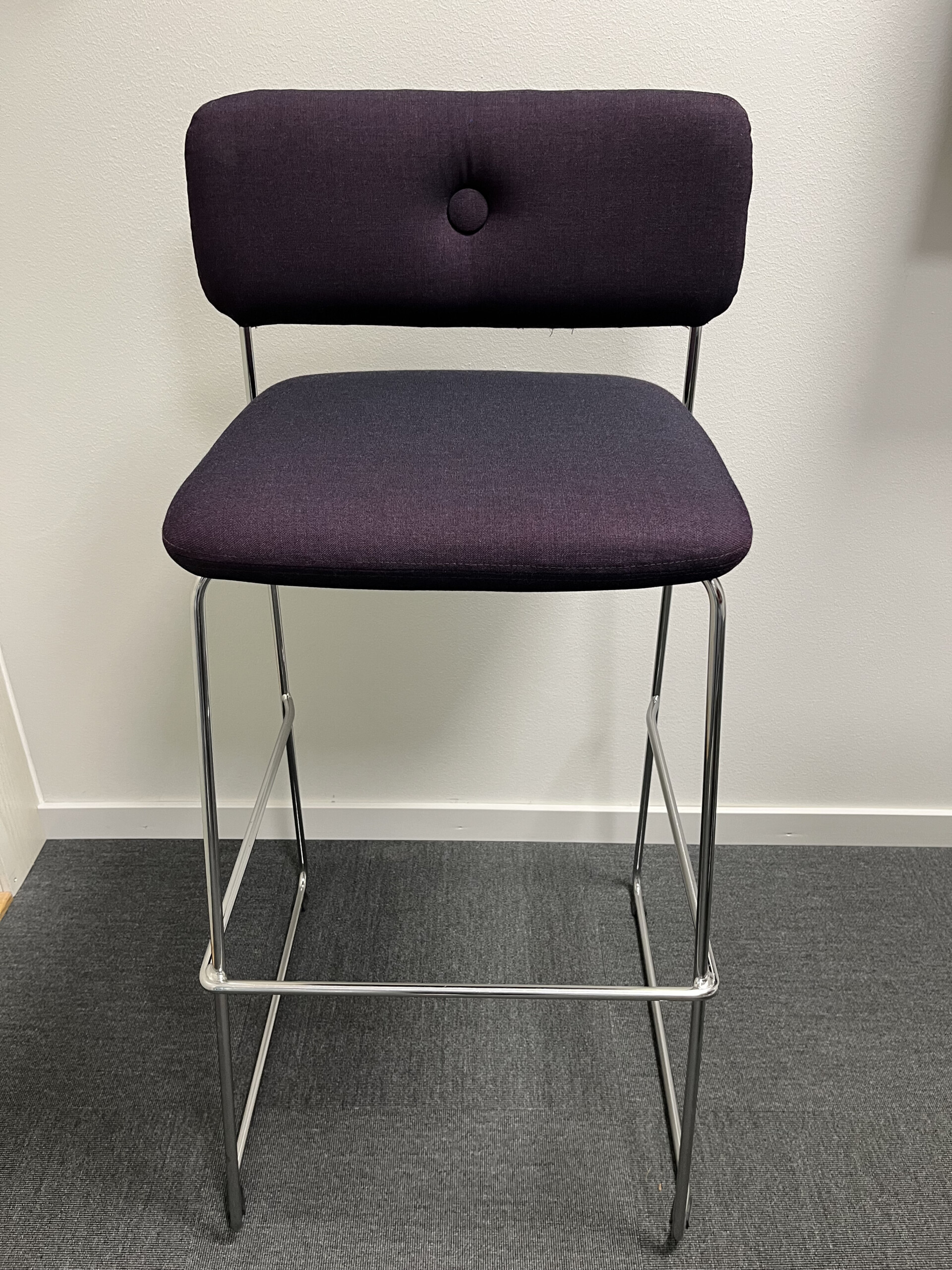 Seat and backrest in fabric (purple). Sledgebase in metal (chrome).