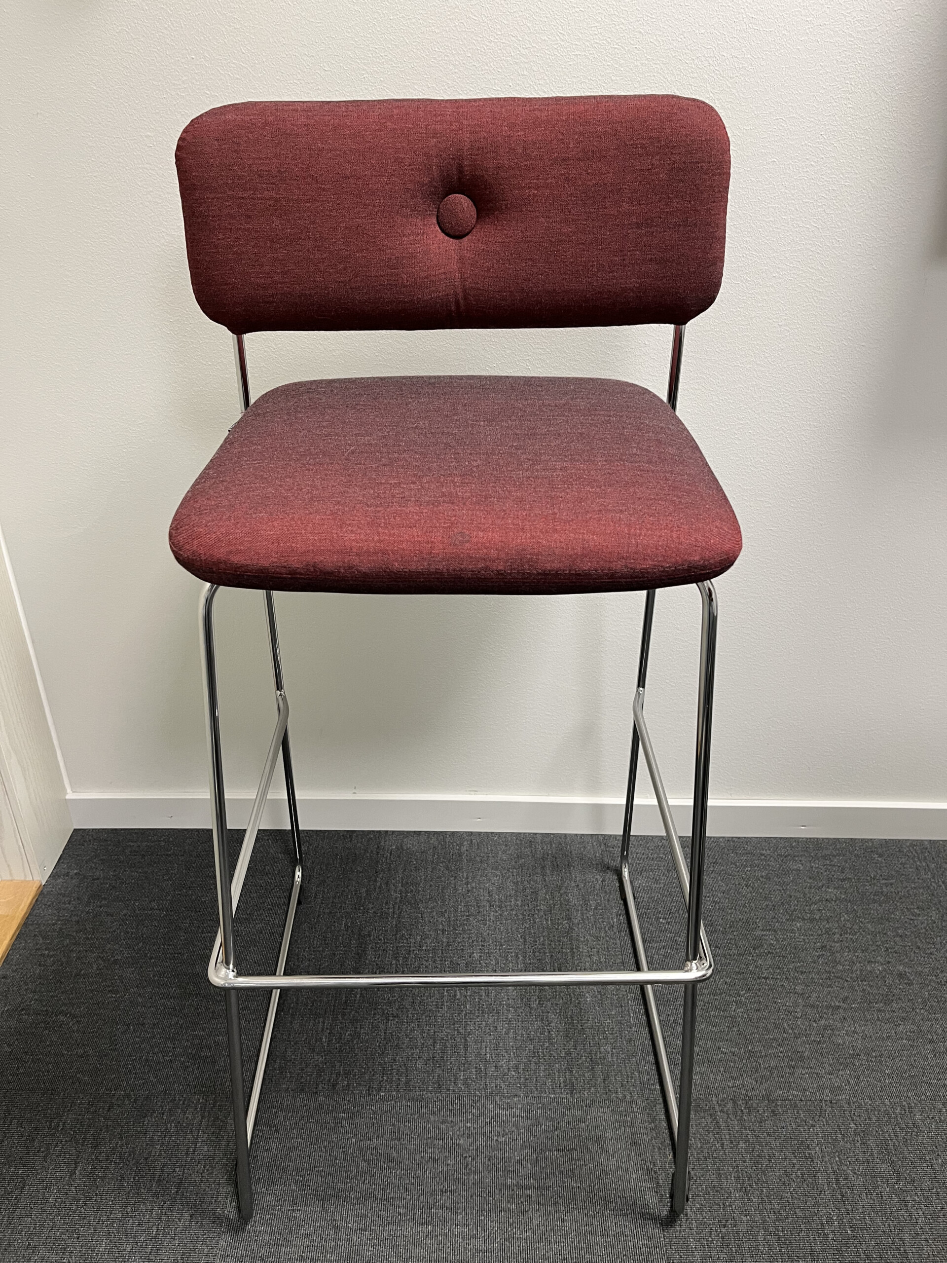 Seat and backrest in fabric (red). Sledgebase in metal (chrome).