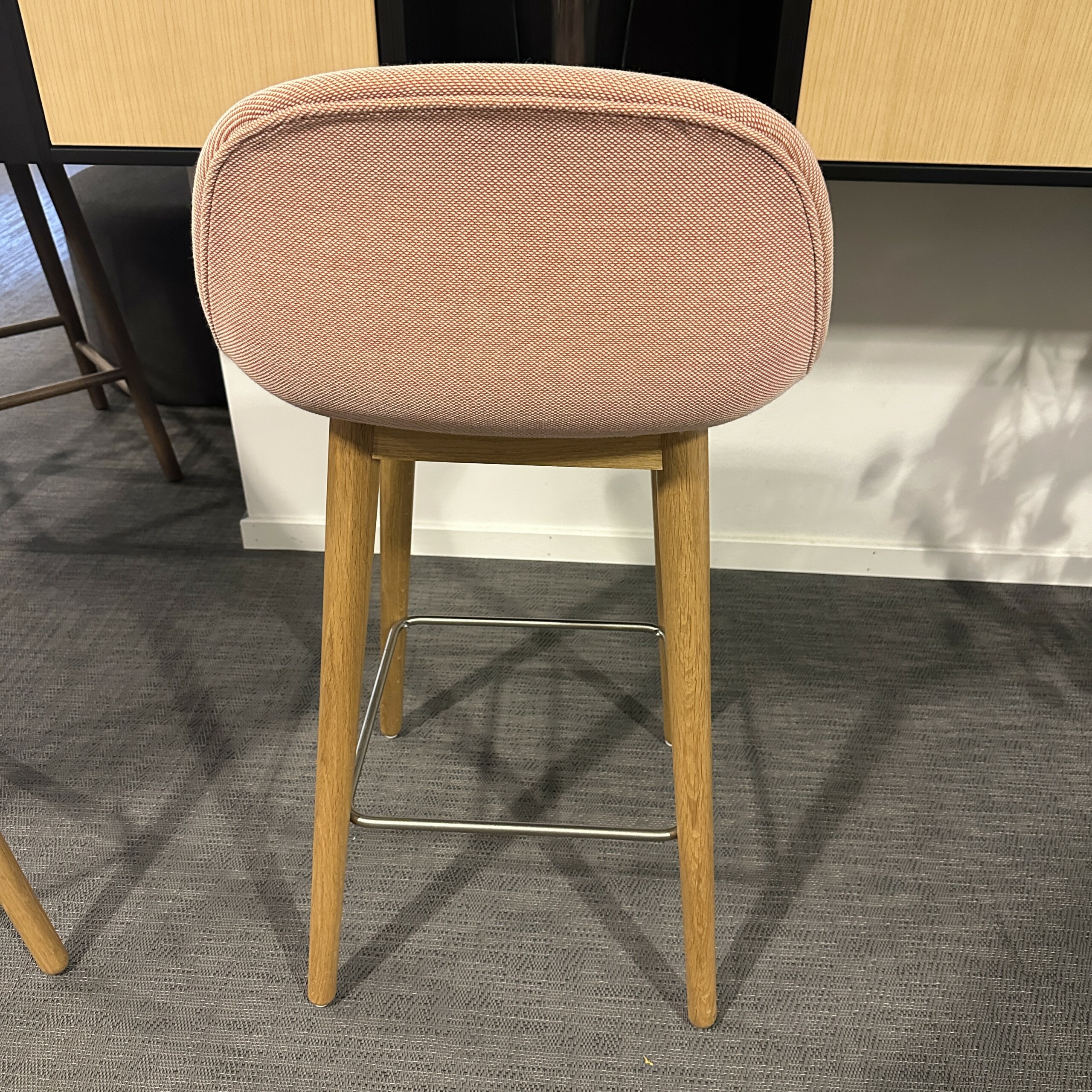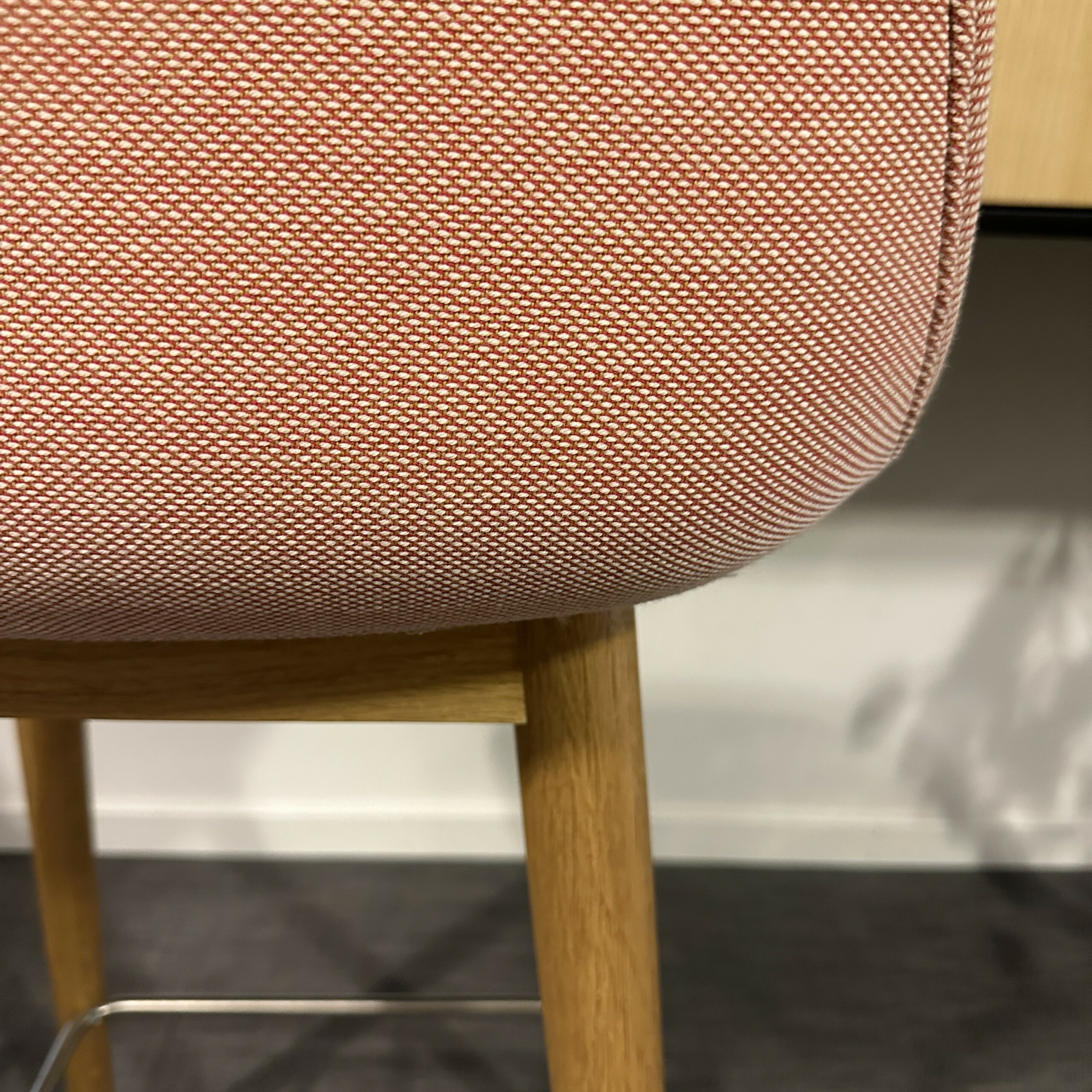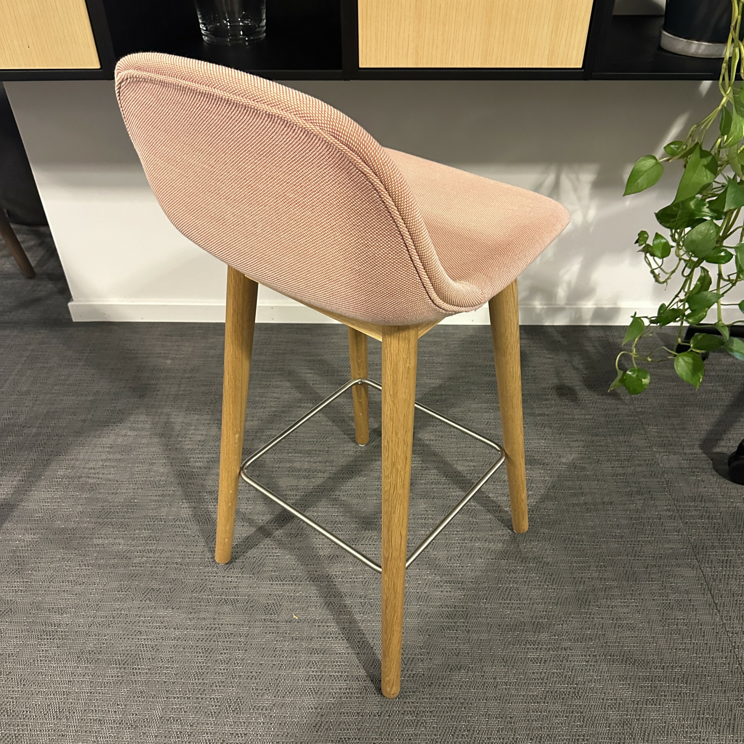 Seat and backrest in fabric (pink). Legs in wood (oak).