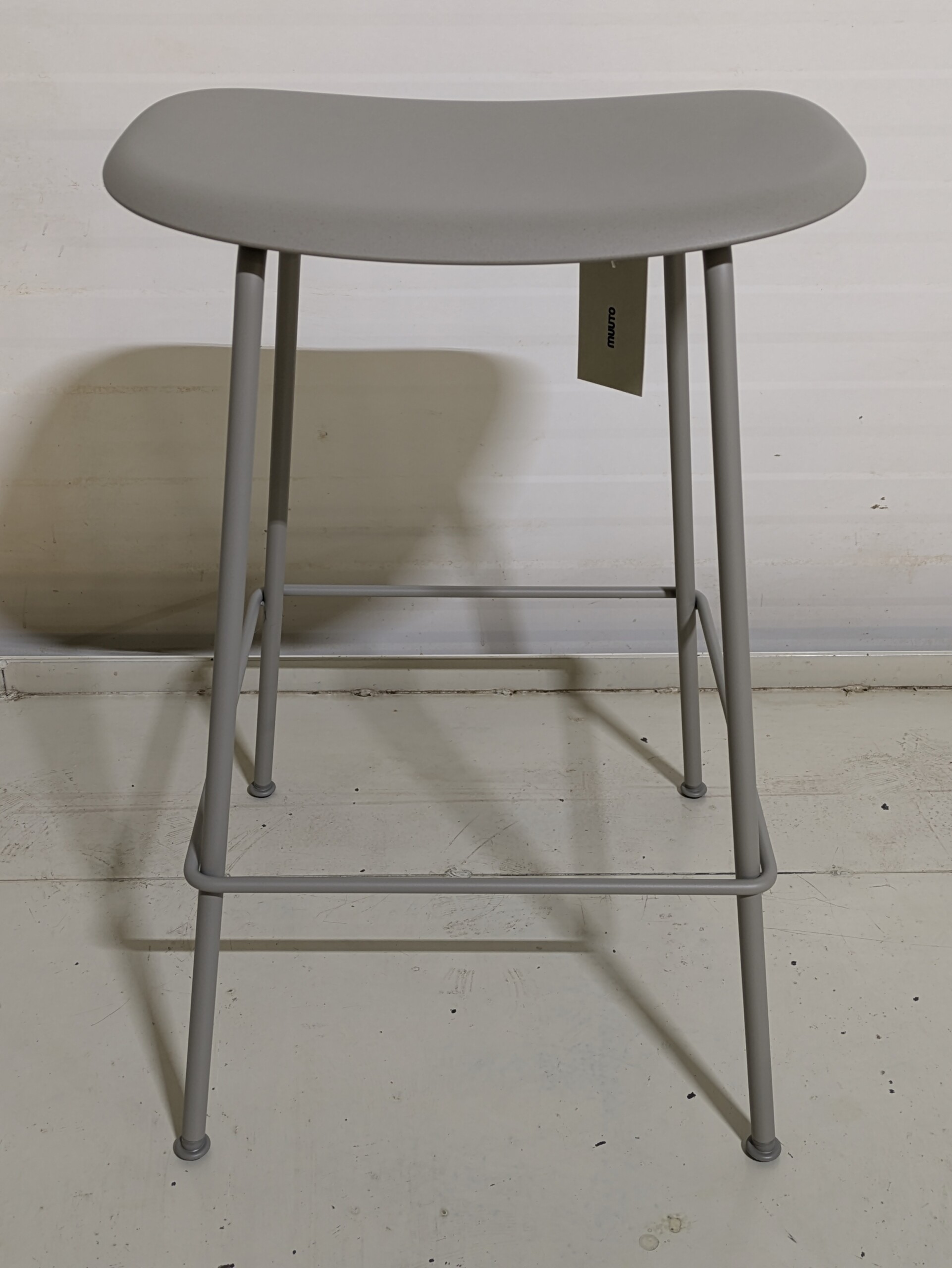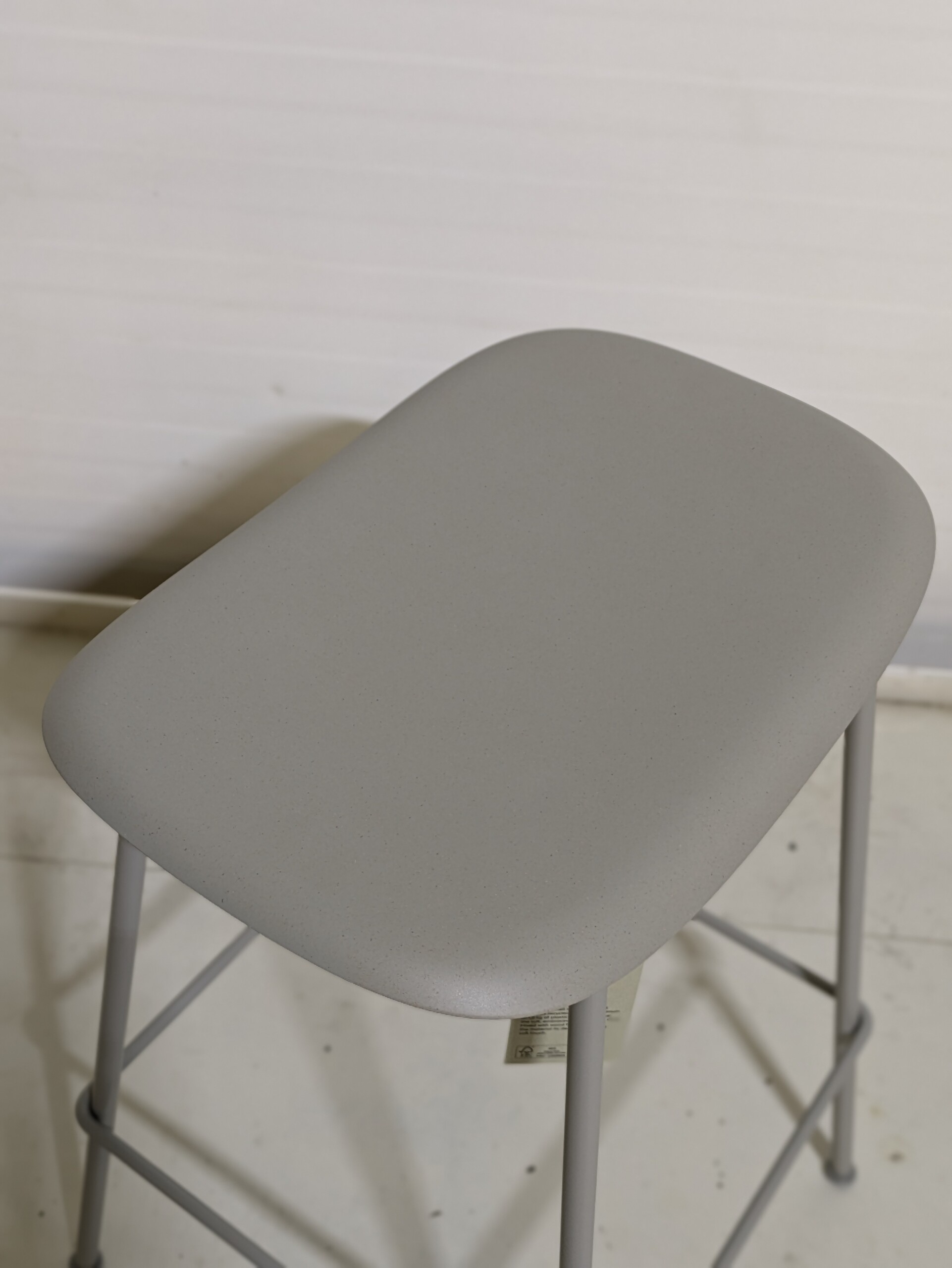Seat in plastic (grey). Legs in metal (grey).