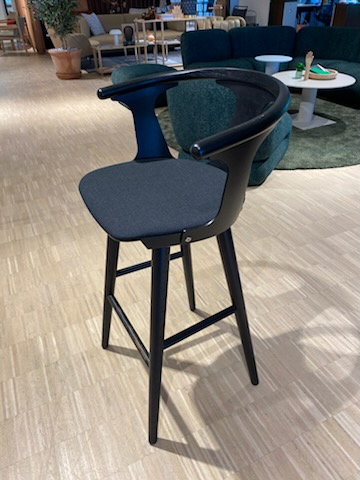 Seat in fabric (black). Backrest in wood (black). Legs in wood (black).