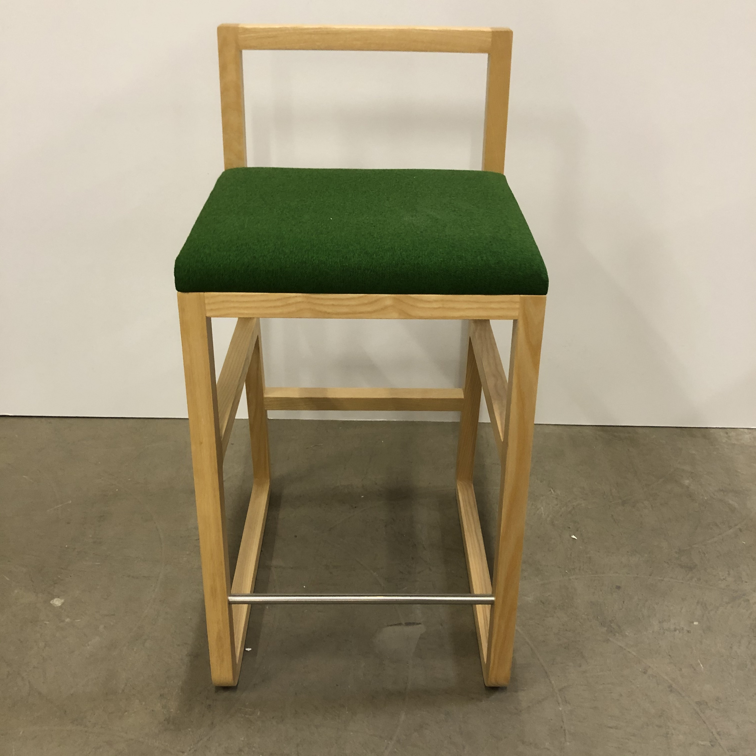 Seat in fabric (green). Backrest in wood (ash). Sledgebase in wood (ash).