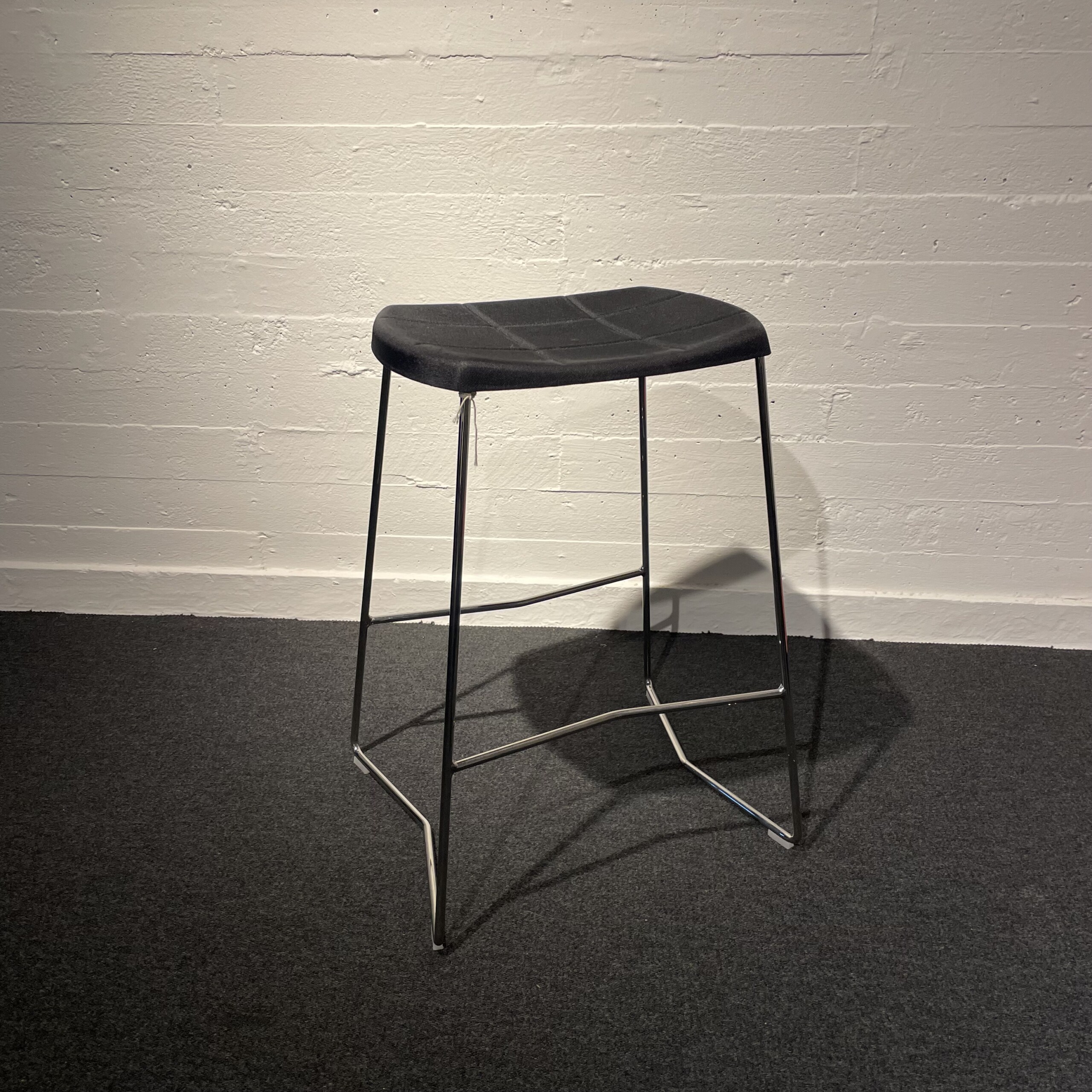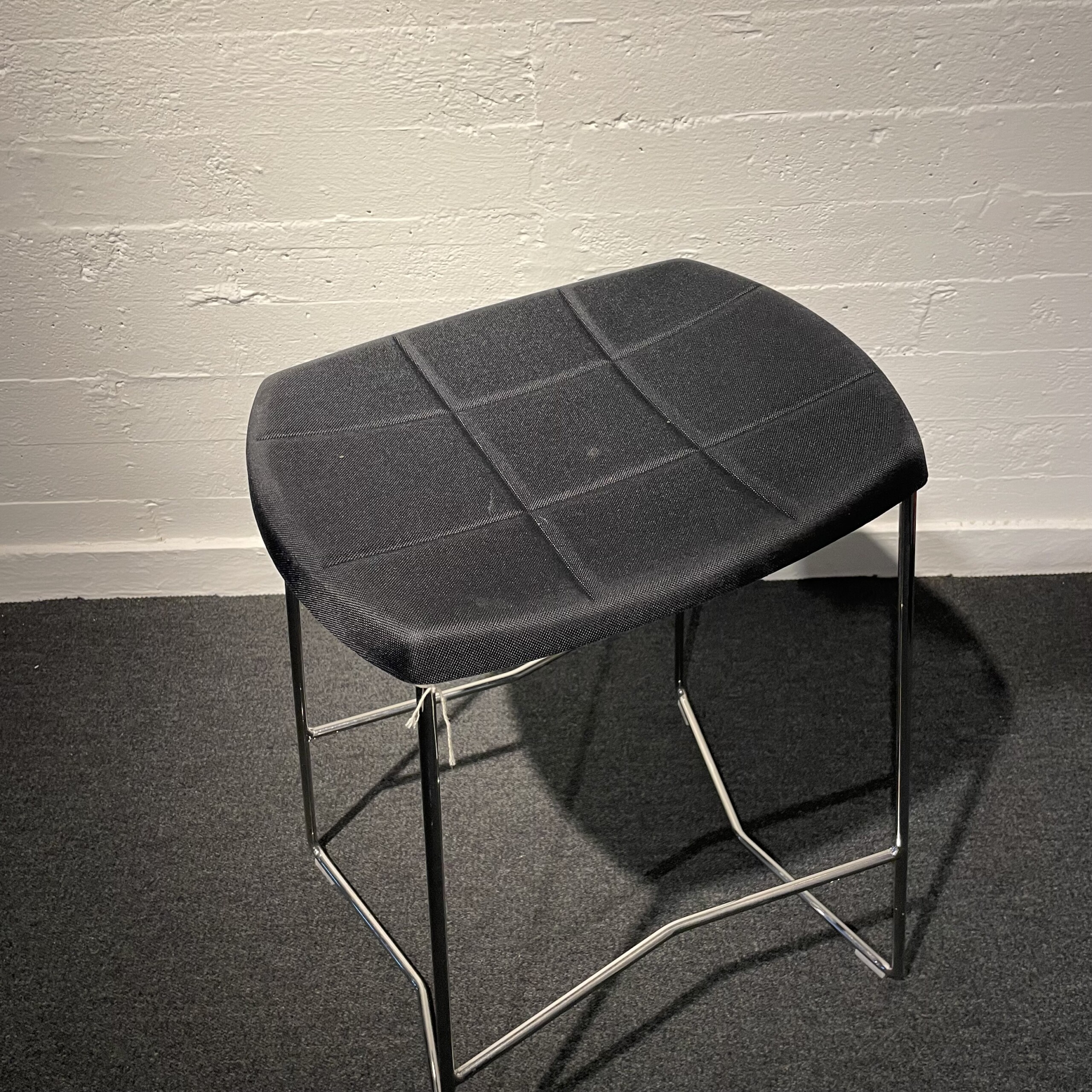 Seat in fabric (black). Sledgebase in metal (chrome).