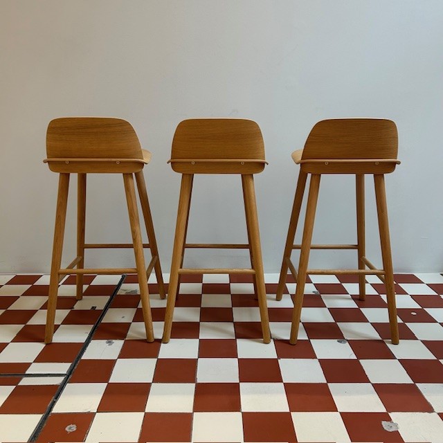 Seat, backrest and legs in wood (oak).