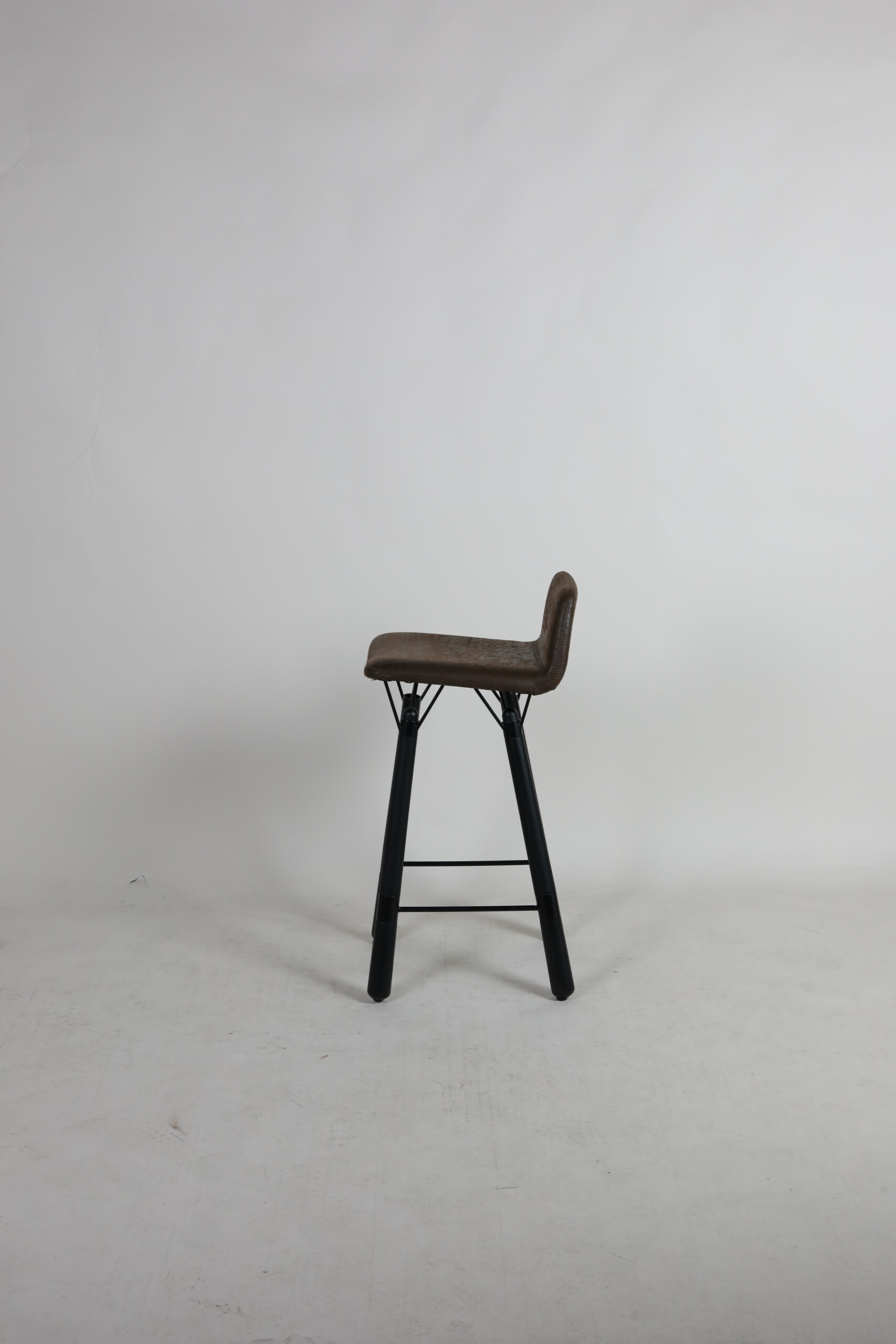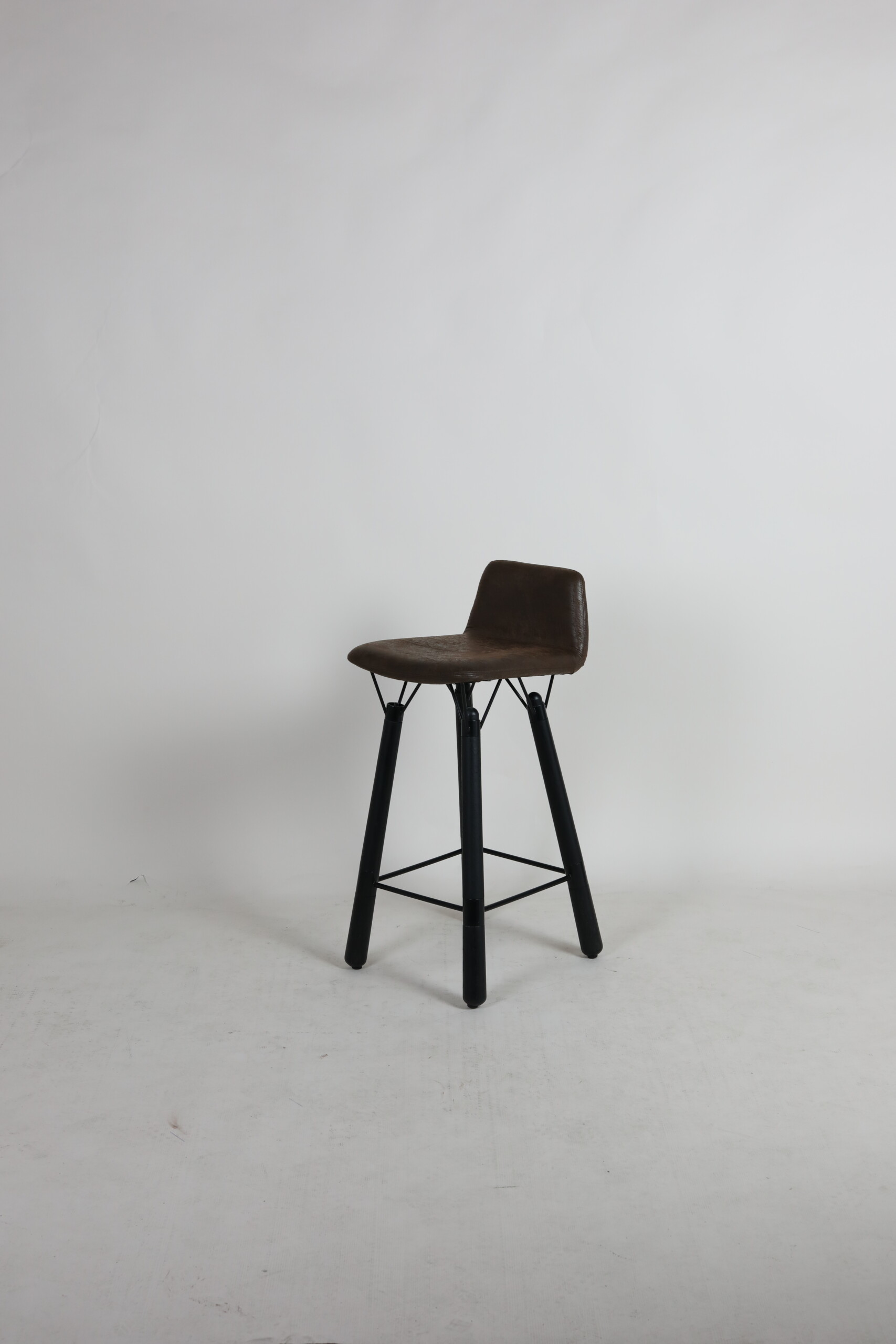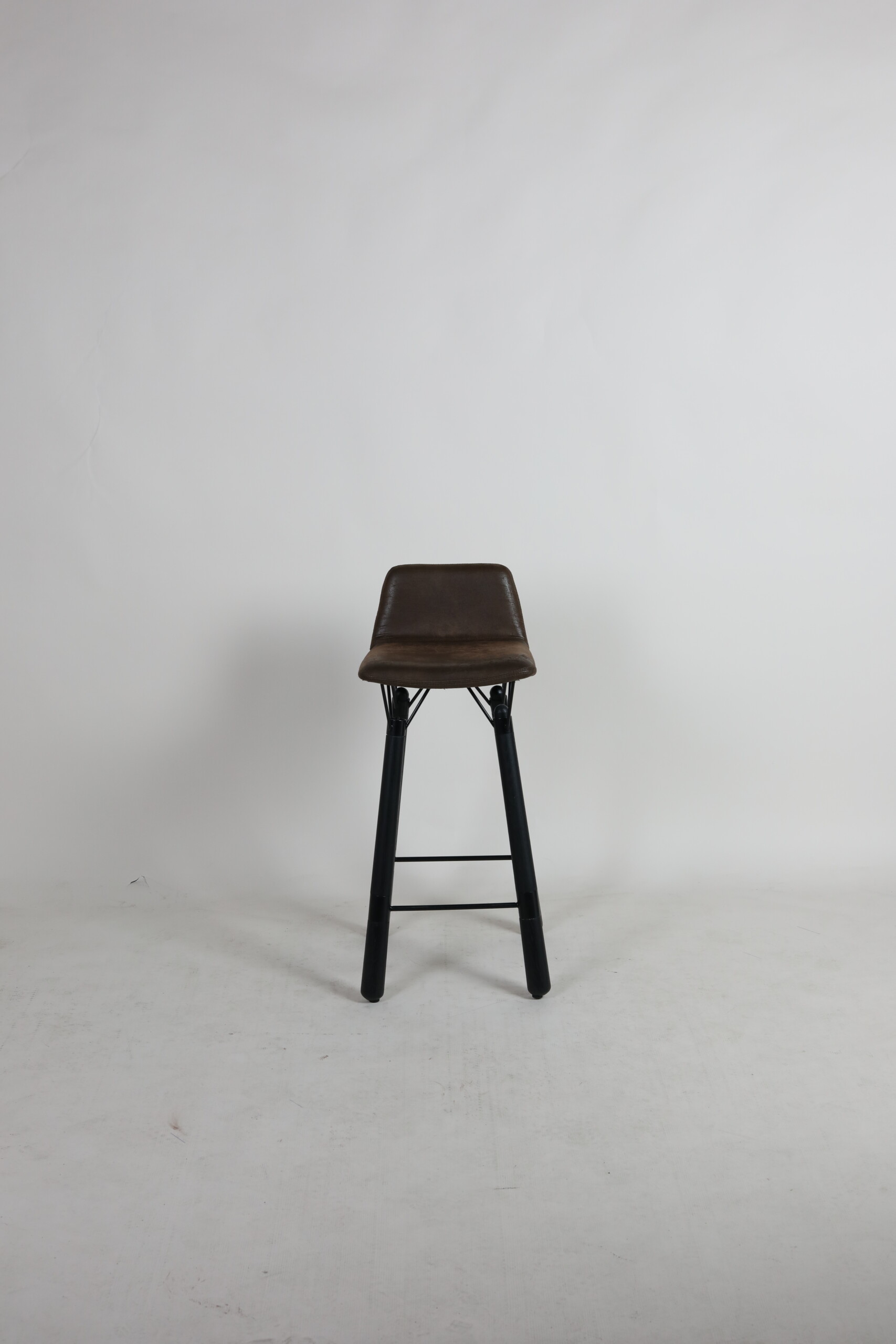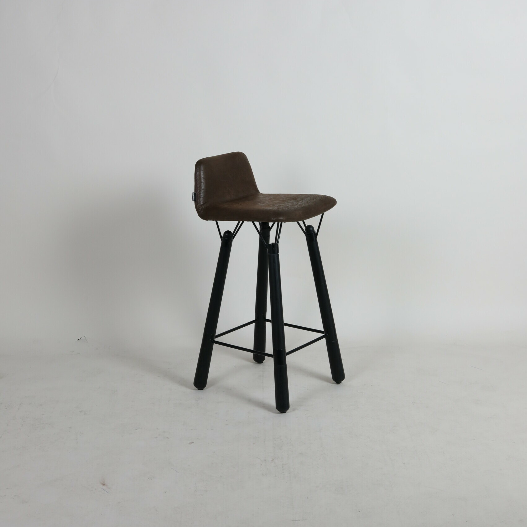 Seat and backrest in fabric (brown). Legs in wood (black).