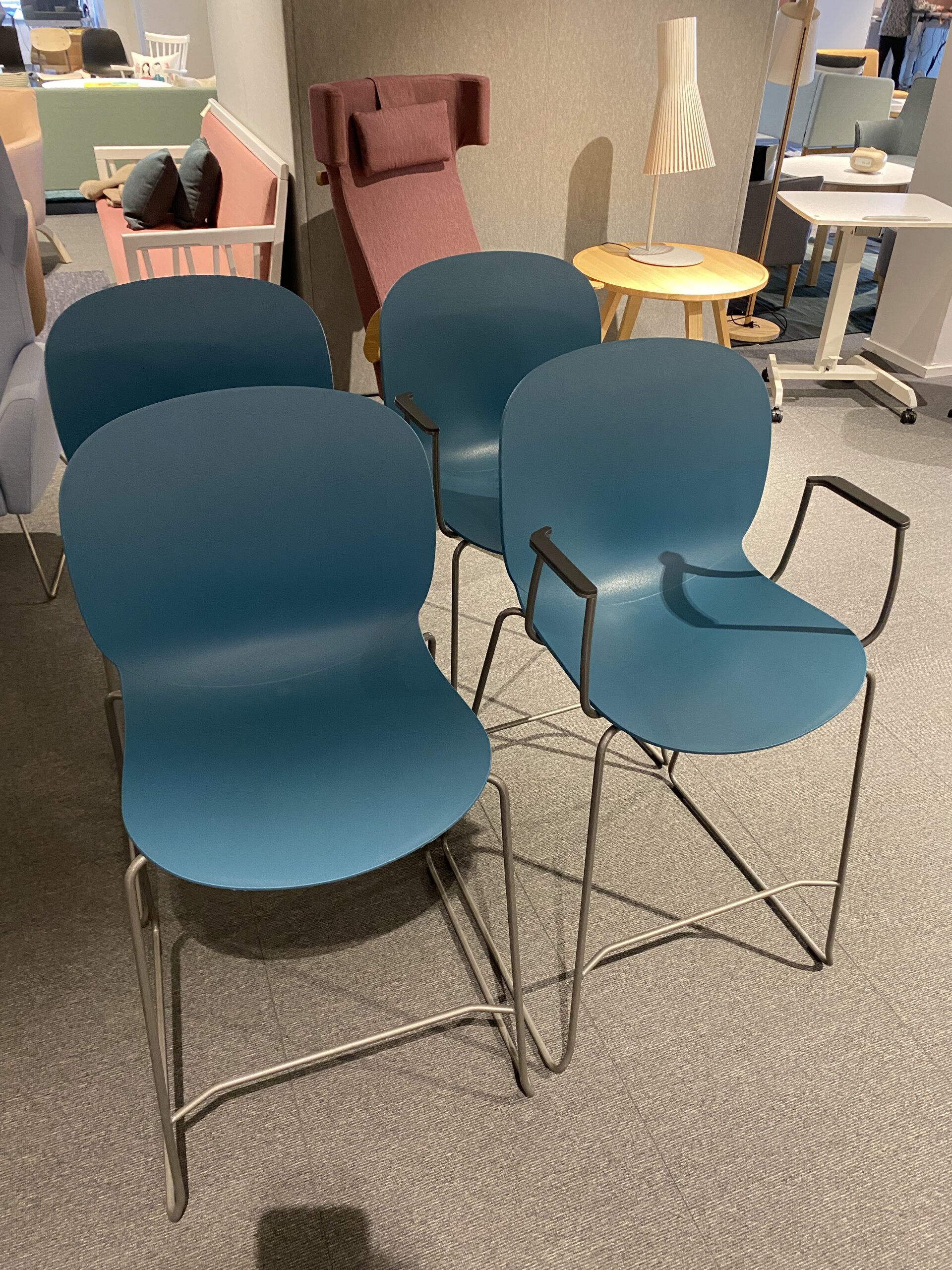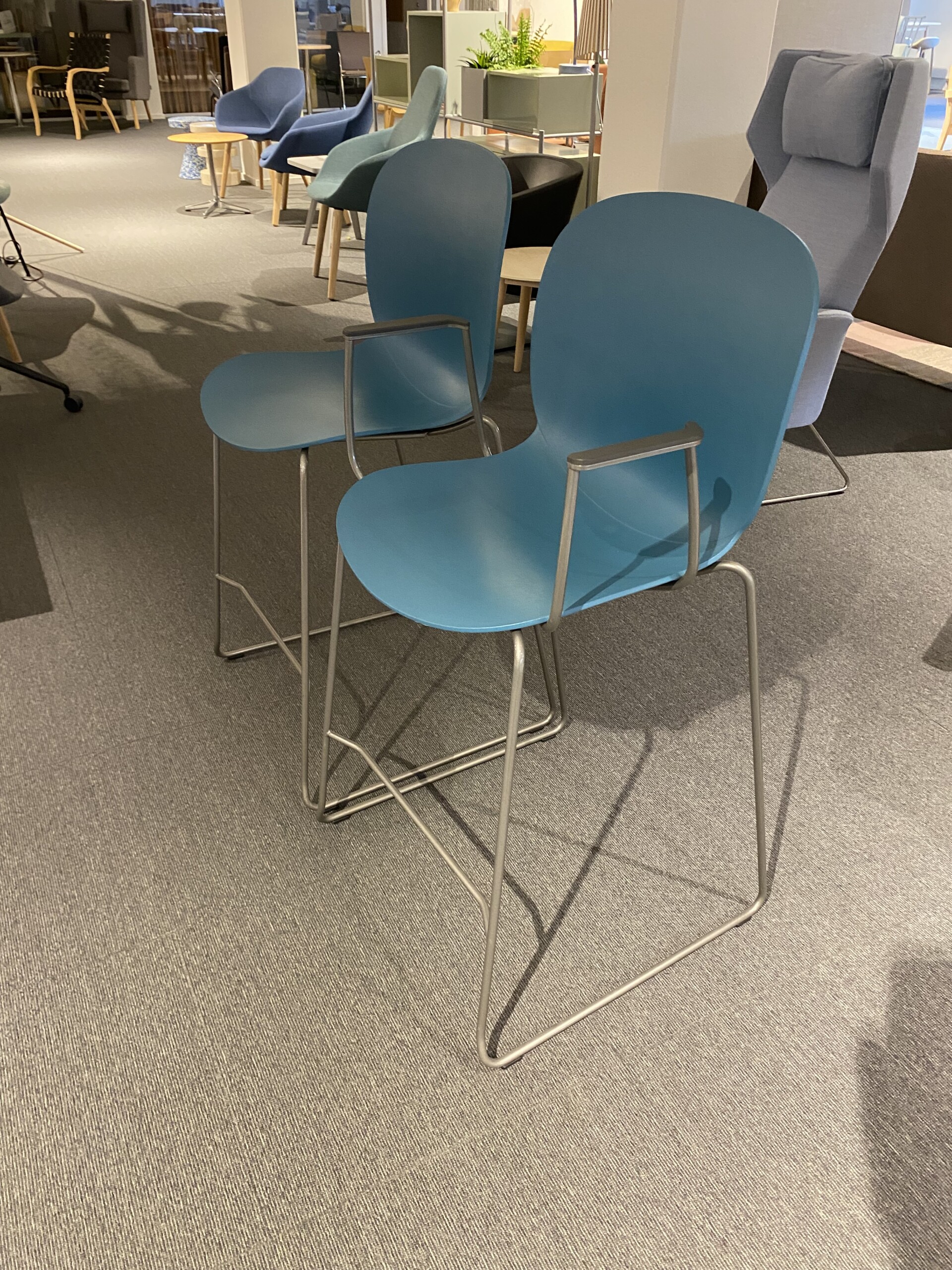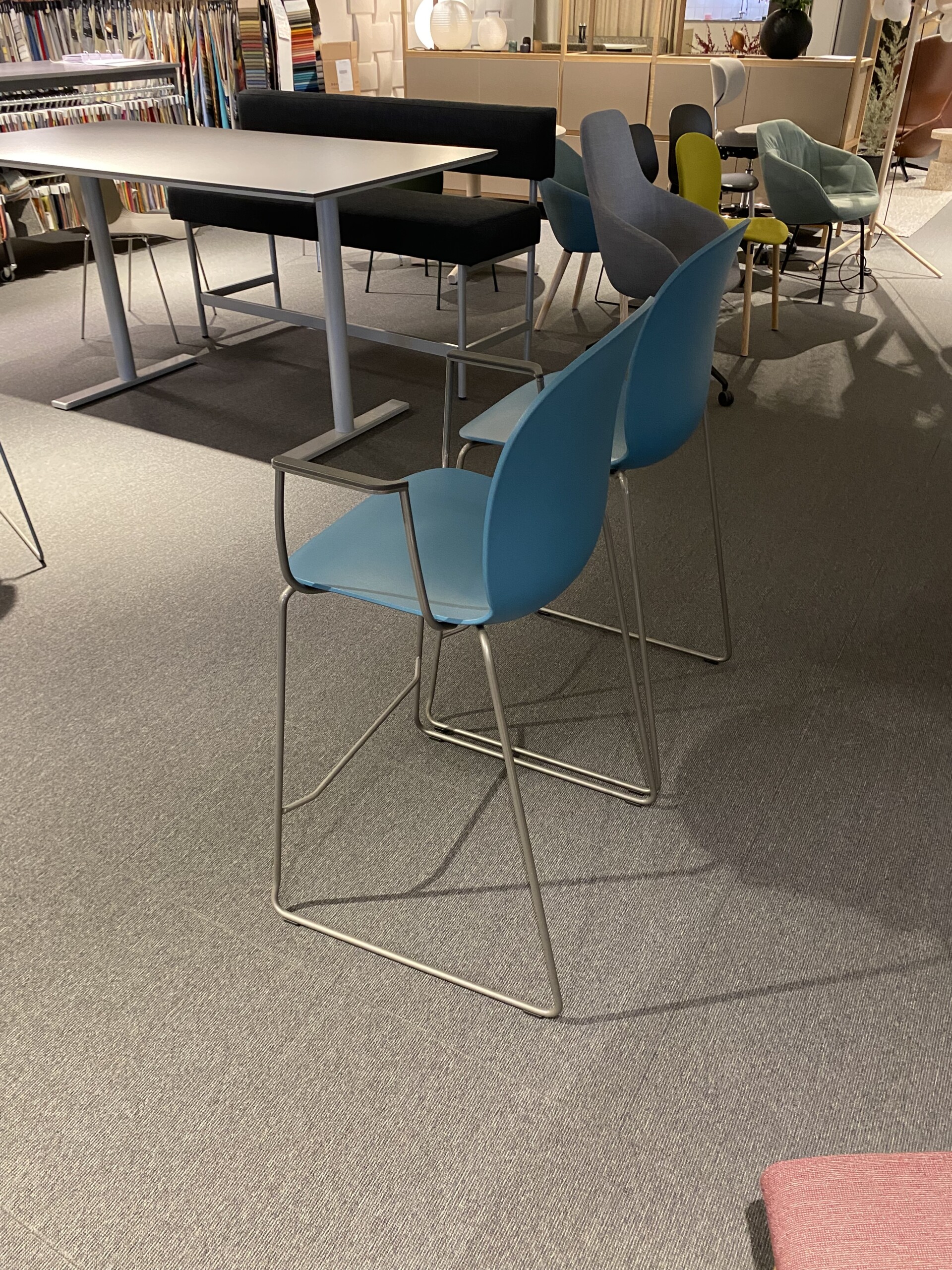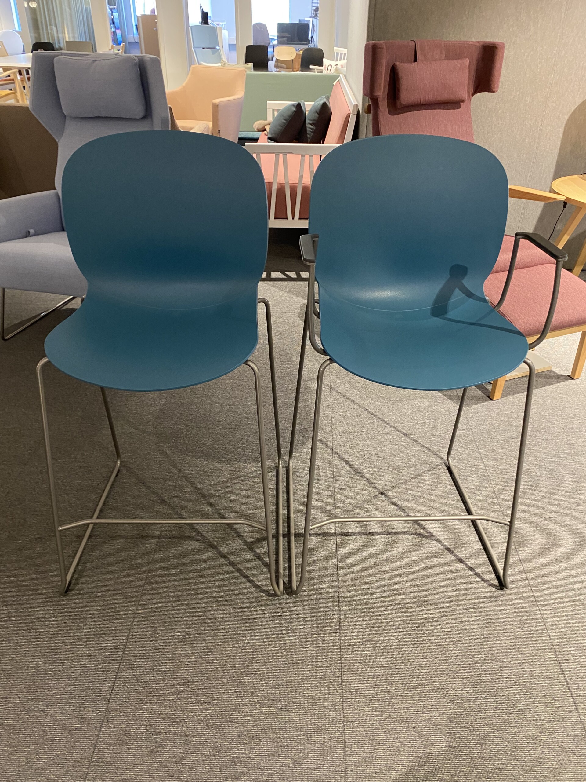 Seat and backrest in plastic (blue). Sledgebase in metal (grey).