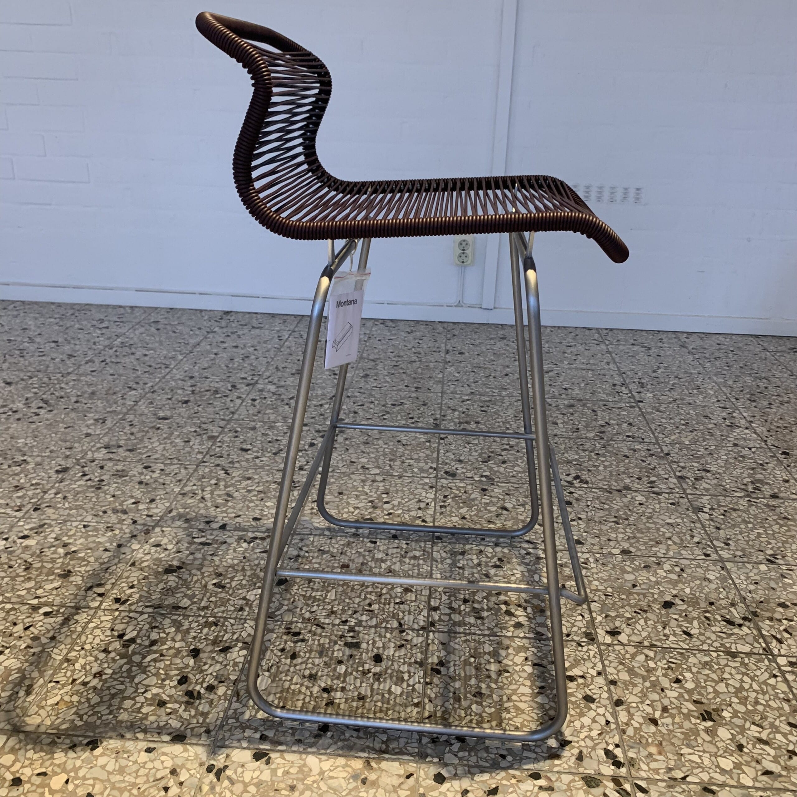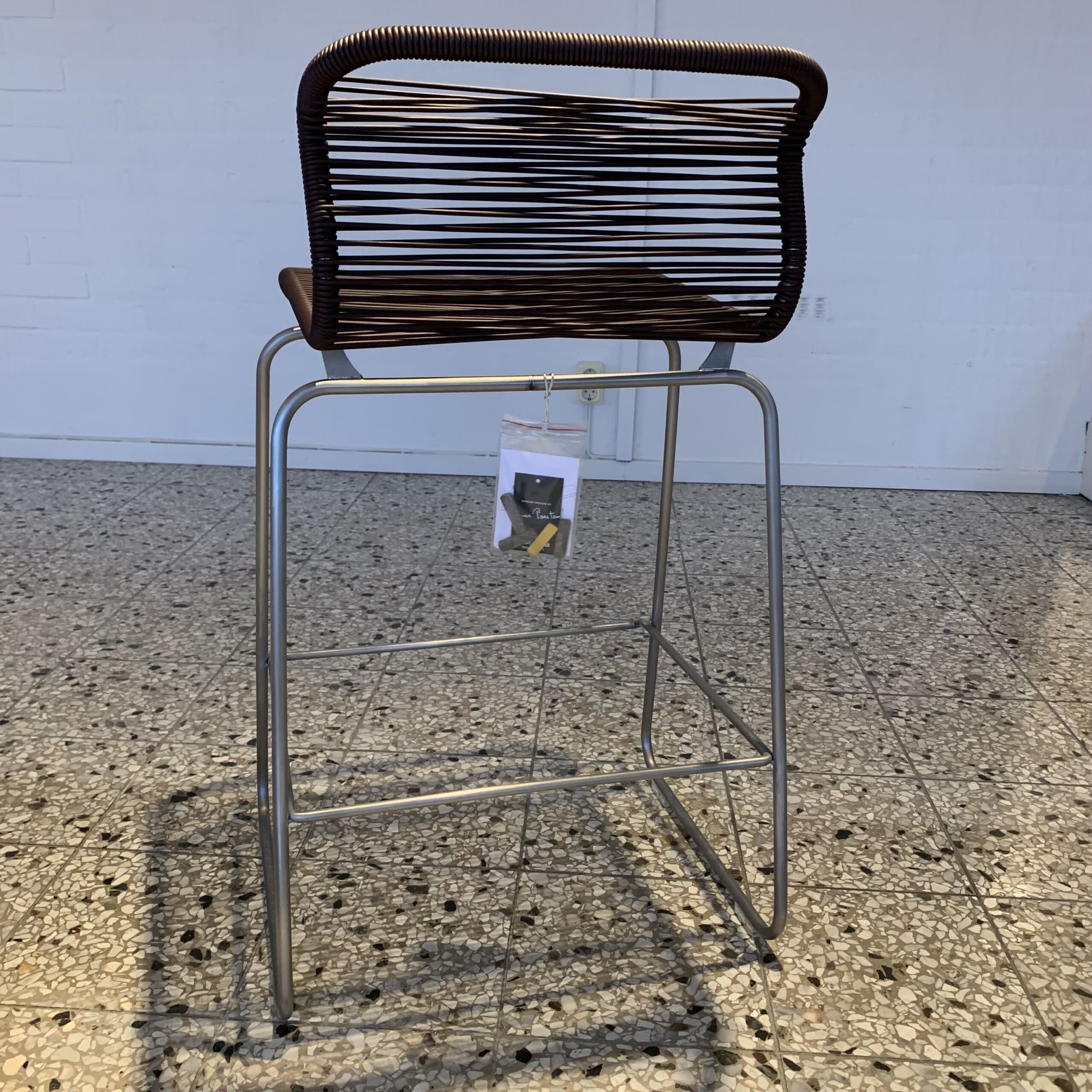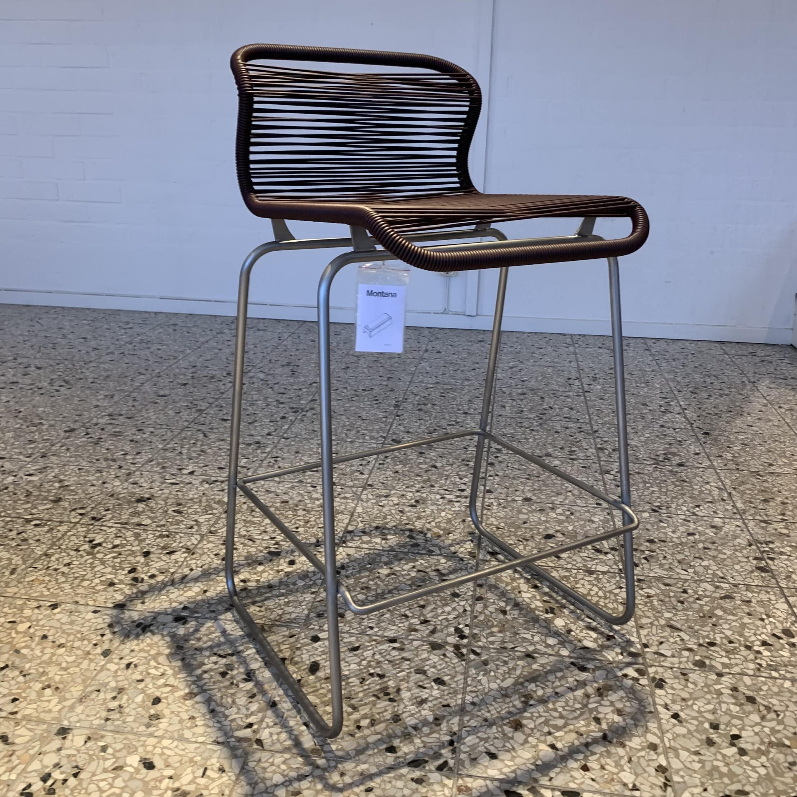 Seat and backrest in rubber (brown). Sledgebase in metal (stainless).