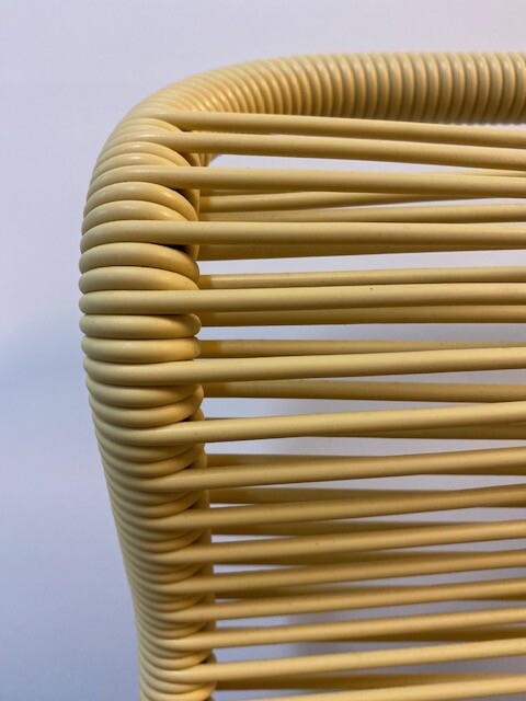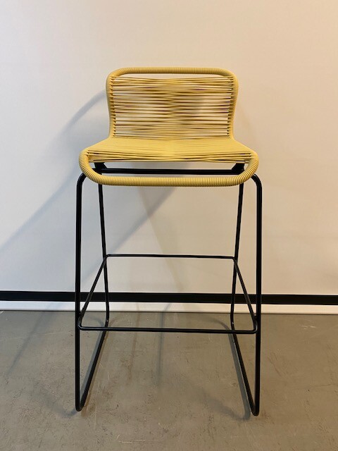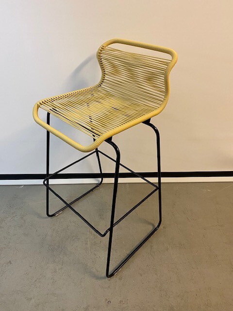 Seat and backrest in plastic (yellow). Sledgebase in metal (black).