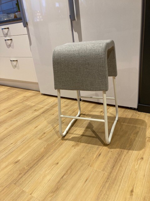 Seat in fabric (grey). Sledgebase in metal (white).