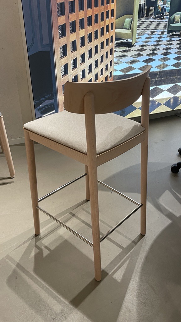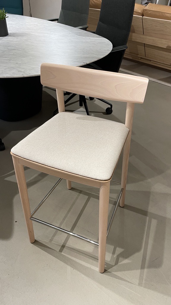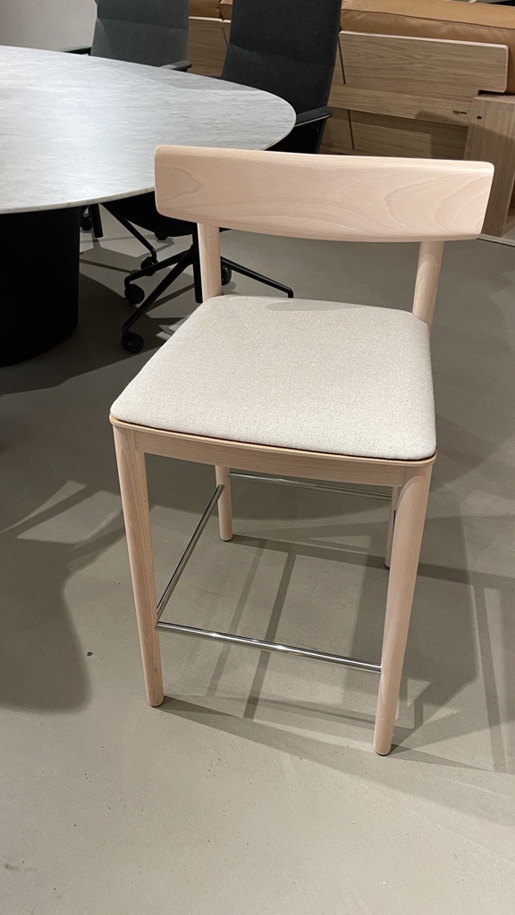 Seat in fabric (beige). Backrest in wood (ash). Legs in wood (ash).