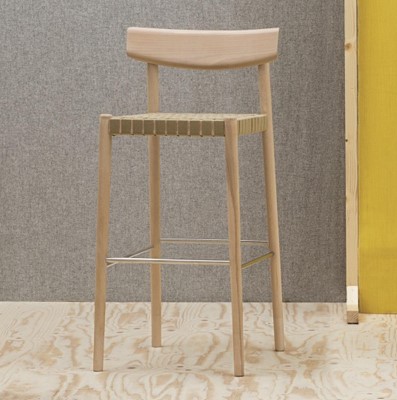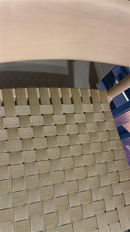 Seat in webbing (beige). Backrest in wood (oak). Legs in wood (oak).