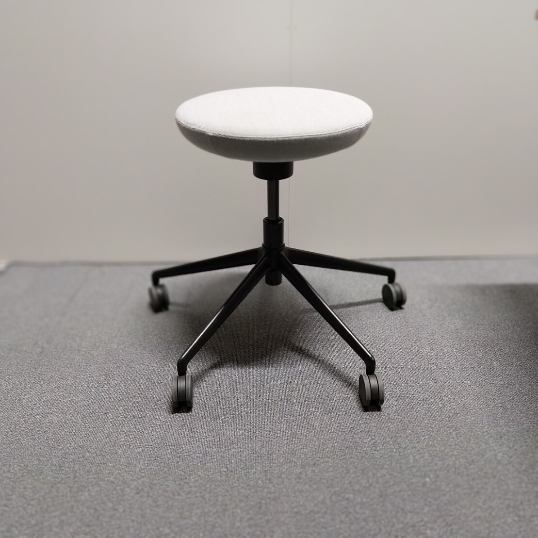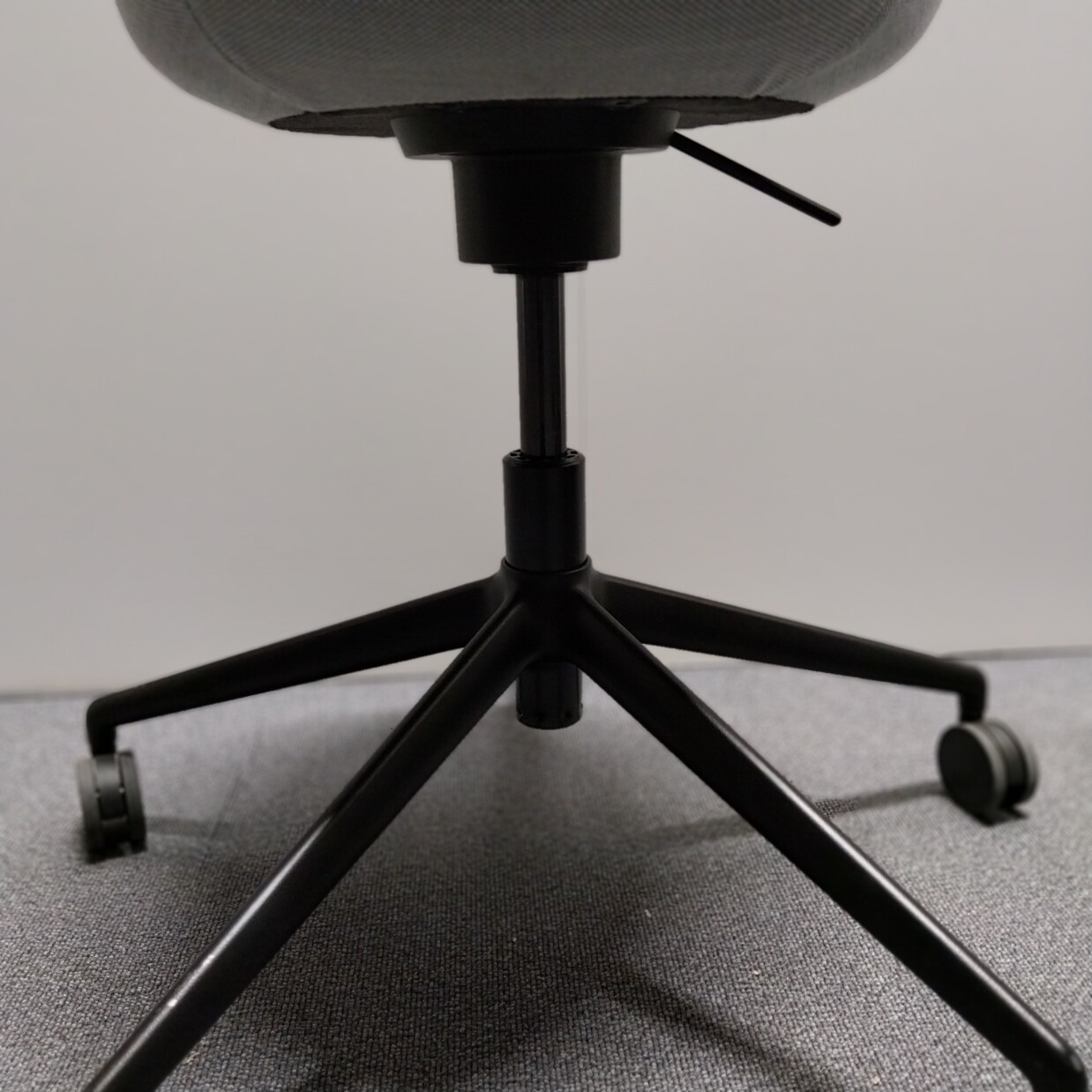 Seat in fabric (grey). Star base in metal (black).