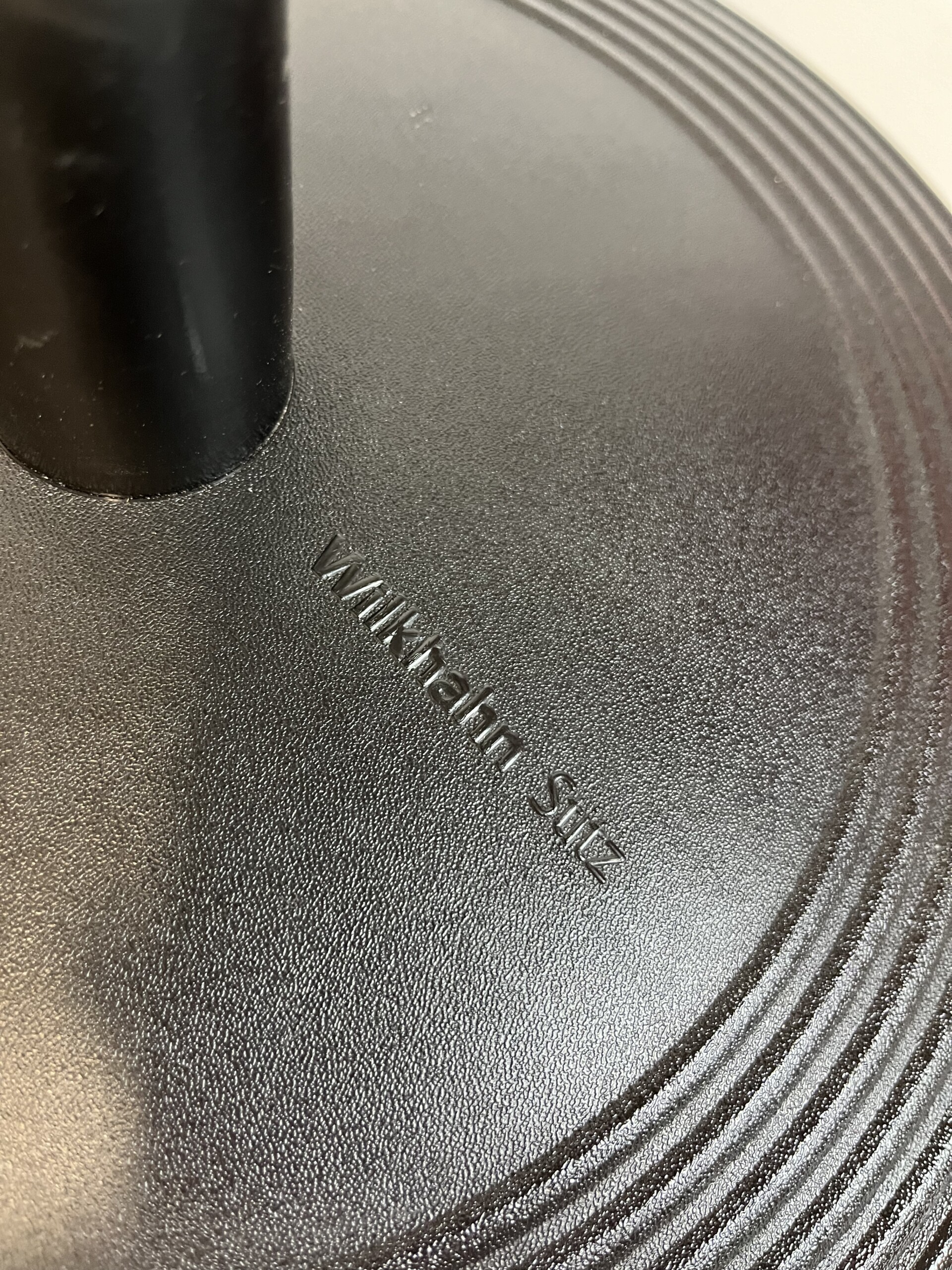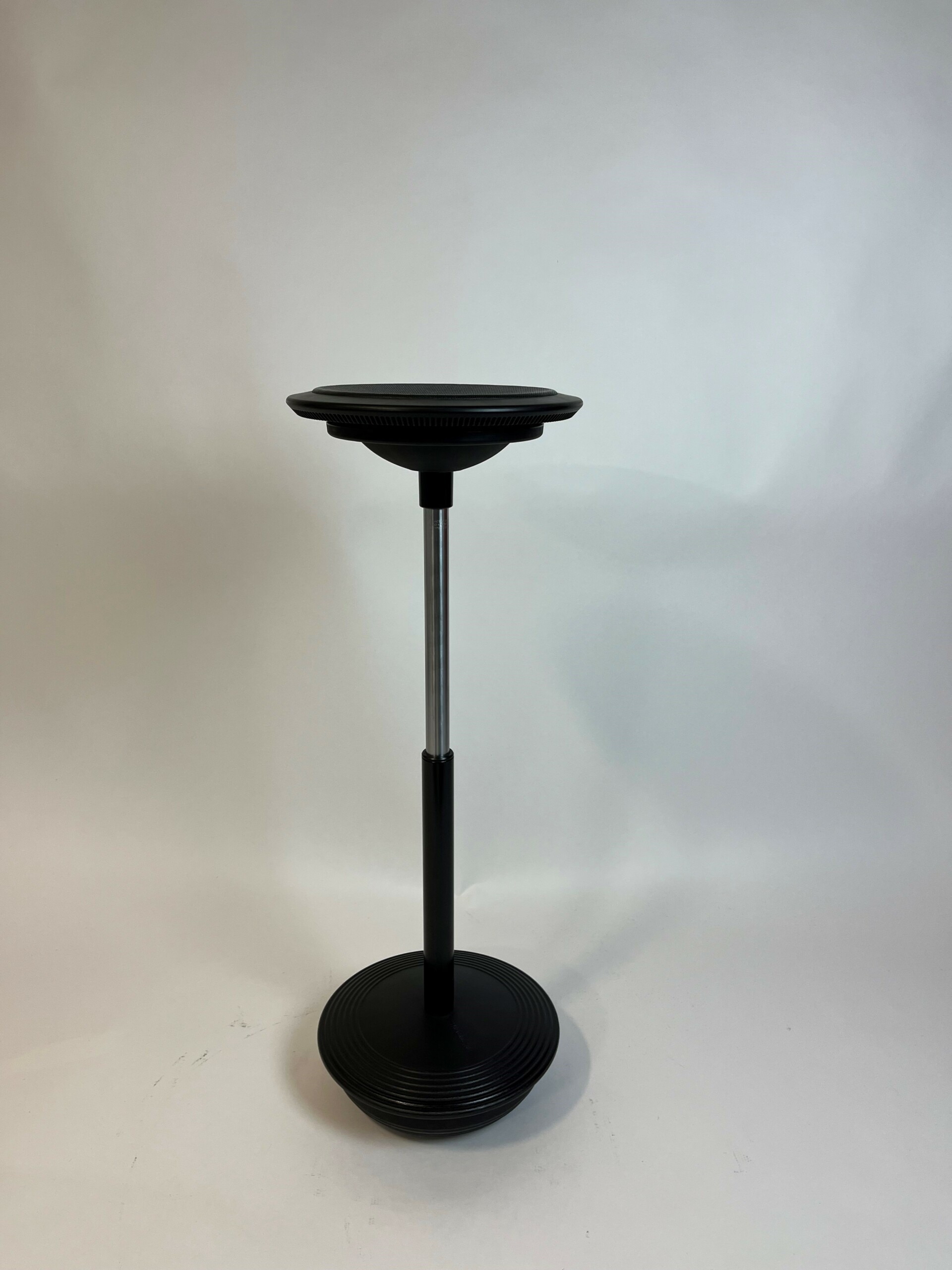 Seat in plastic (black). Disc base in metal (black). Adjustable height.