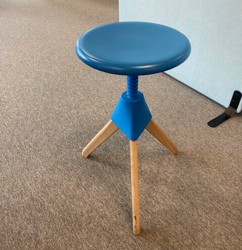 Seat in wood (blue). Star base in wood (bok).