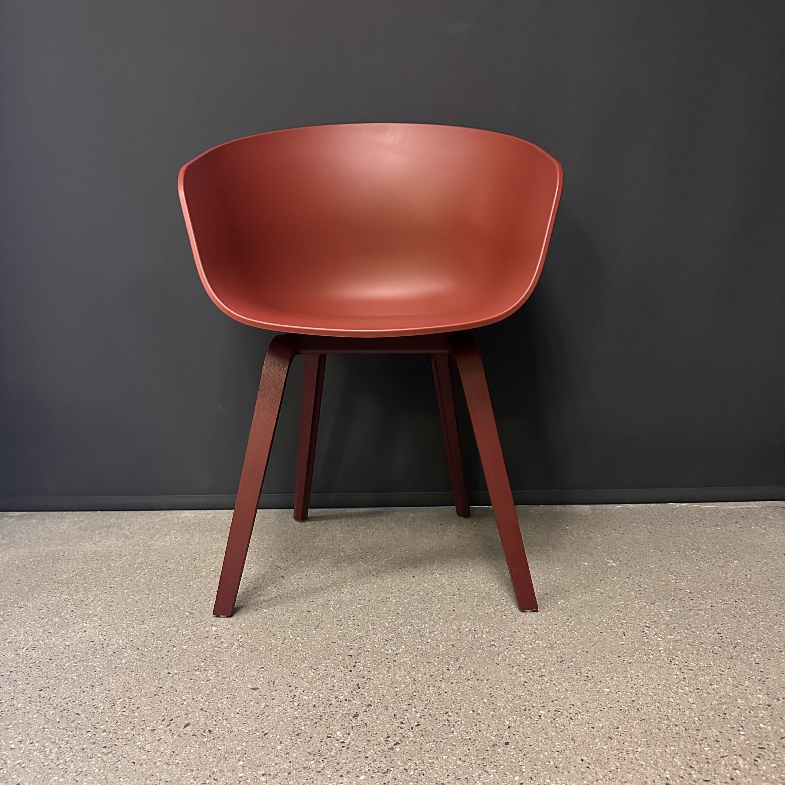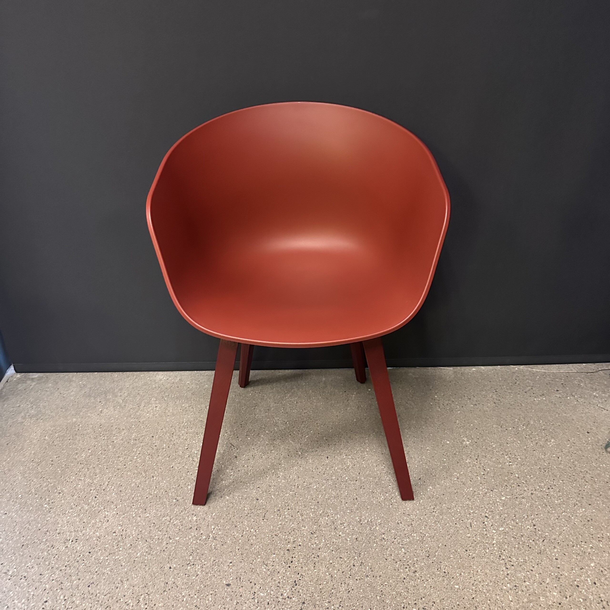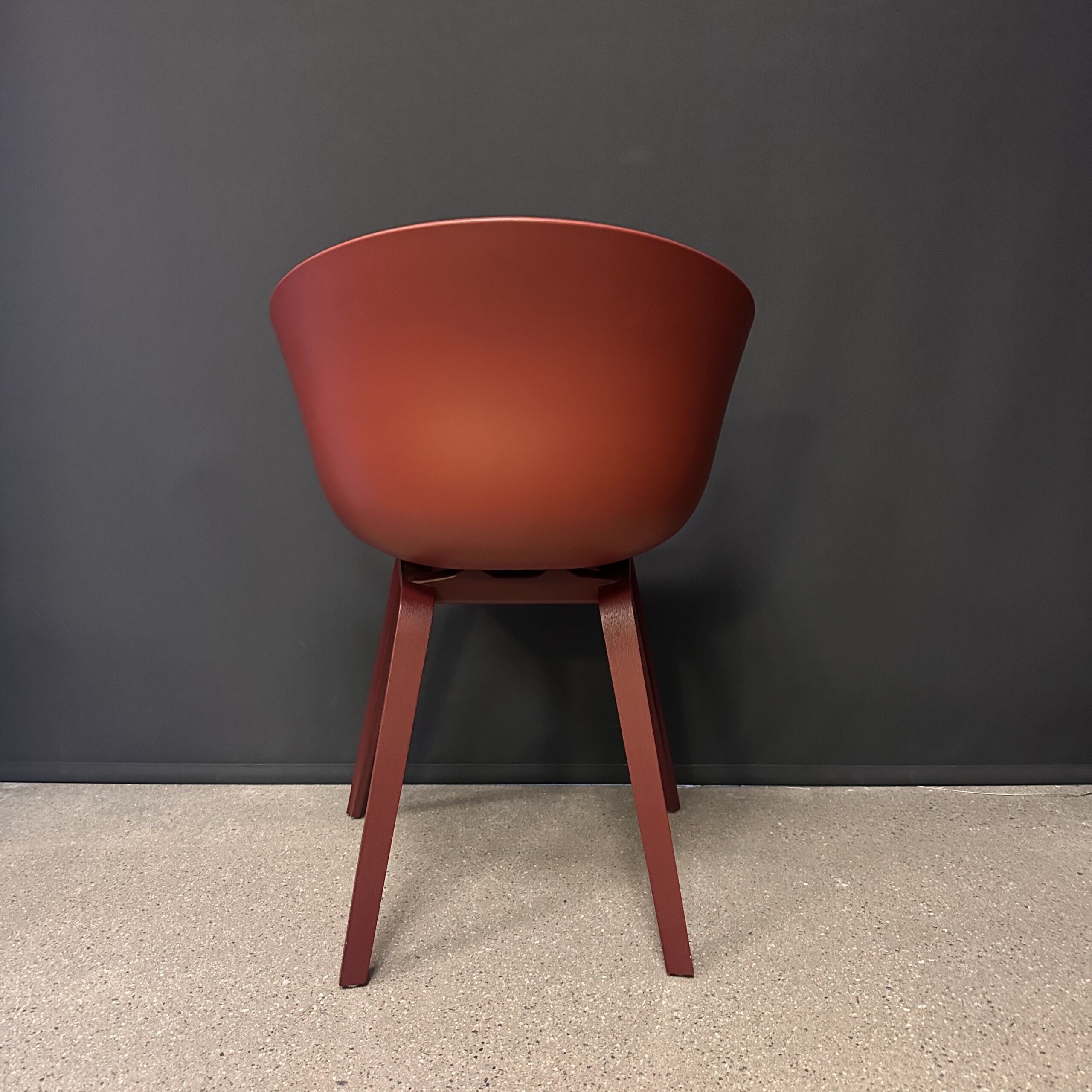 Seat and backrest in plastic (red). Legs in wood (red).