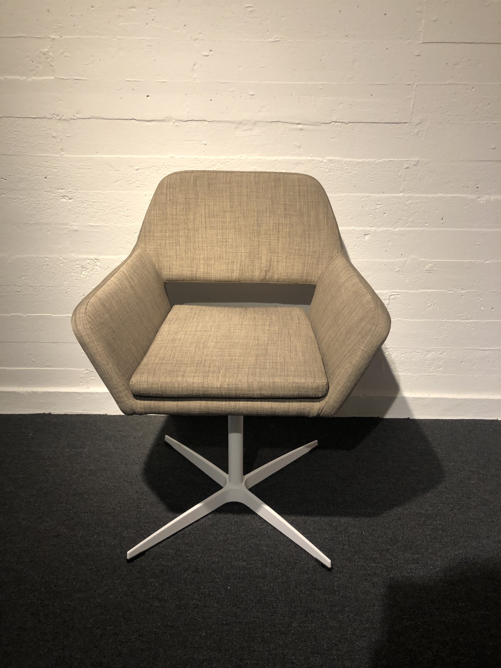 Seat and backrest in fabric (beige). Star base in metal (white).