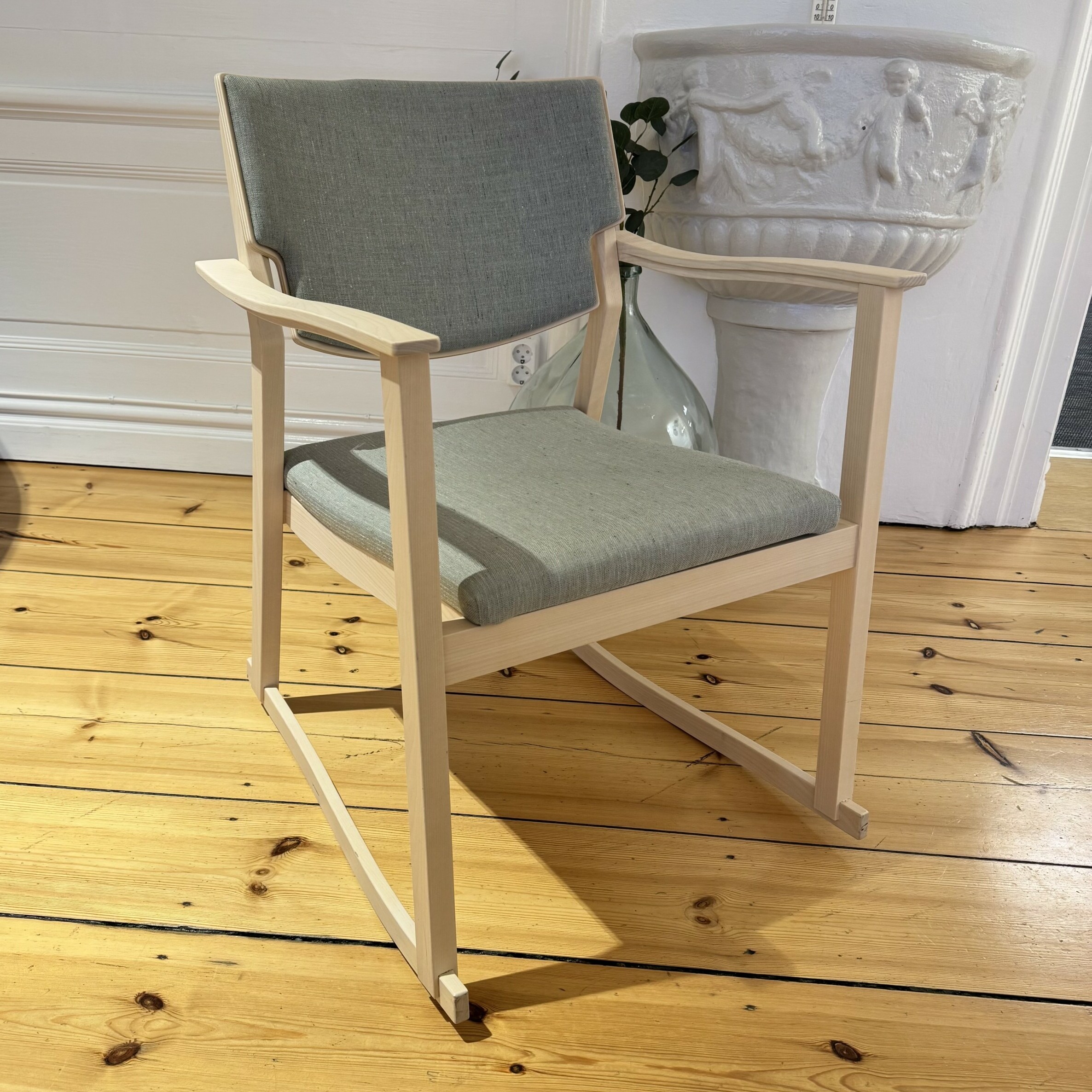 Seat and backrest in fabric (turquoise). Sledgebase in wood (birch).