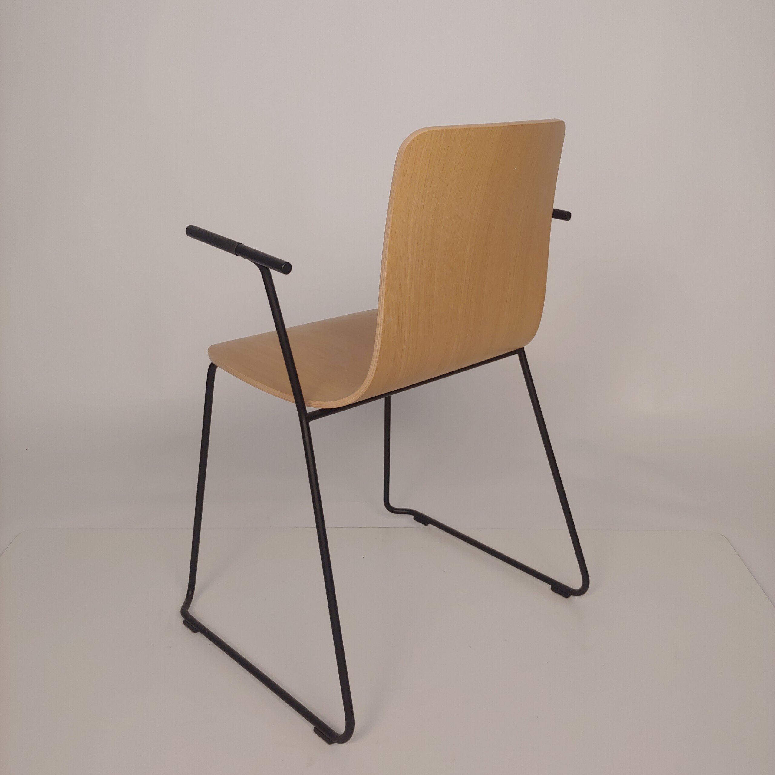 Seat and backrest in wood (oak). Sledgebase in metal (black).
