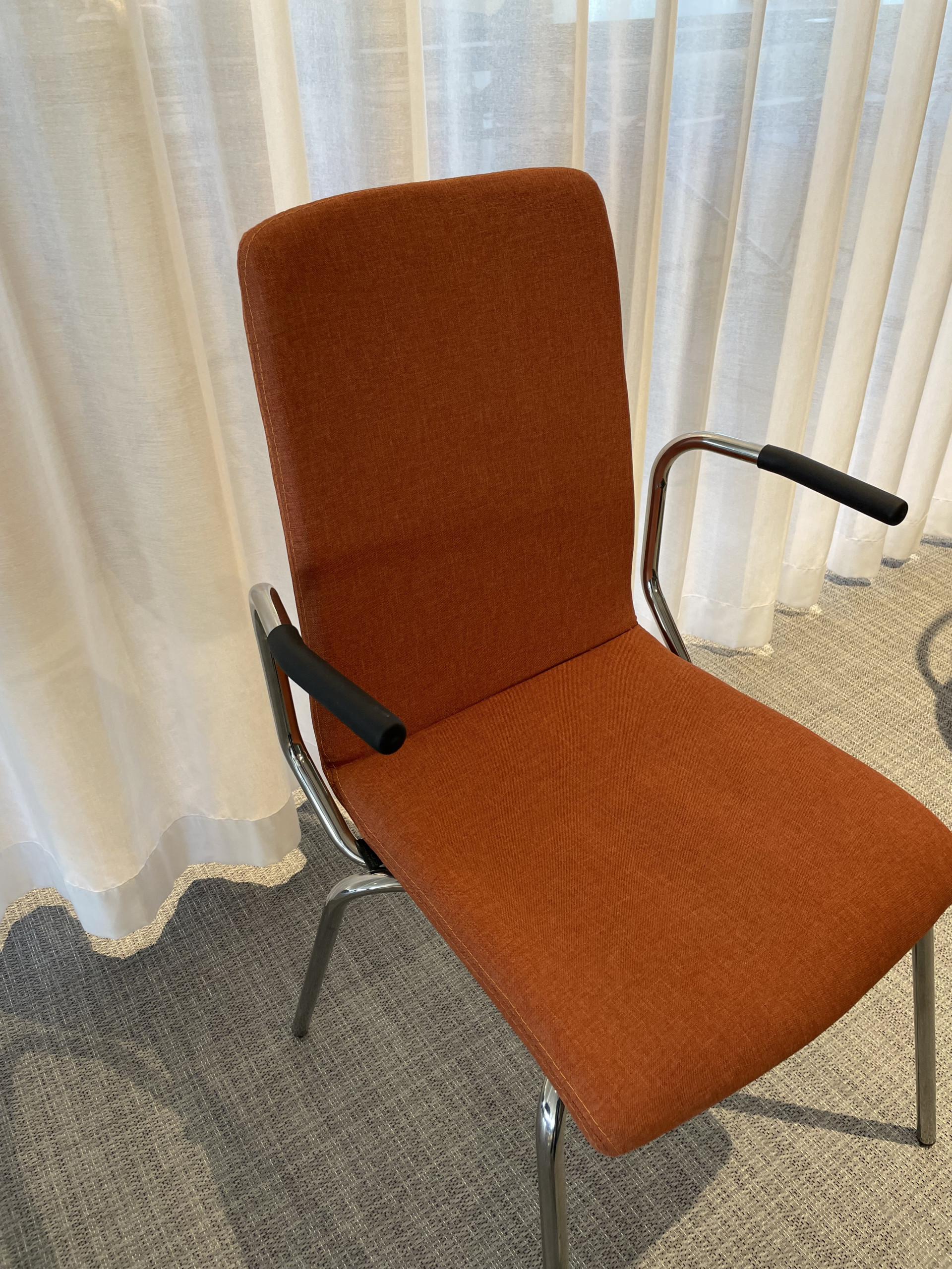 Seat and backrest in fabric (orange). Legs in metal (aluminium).