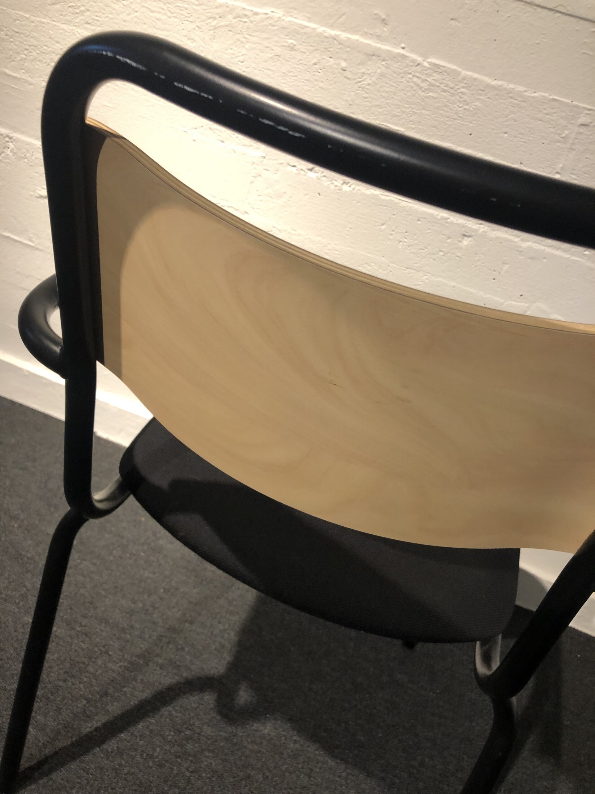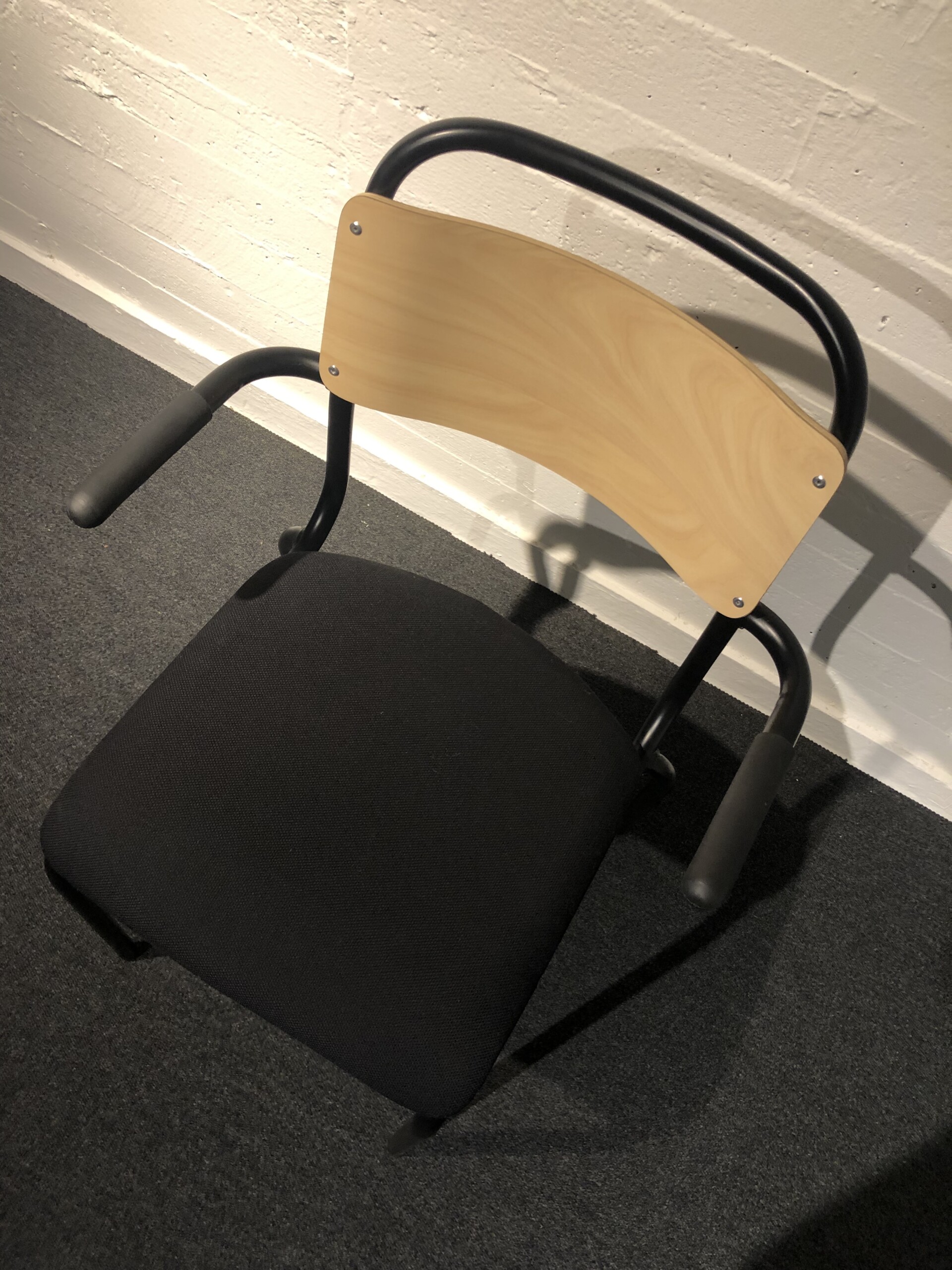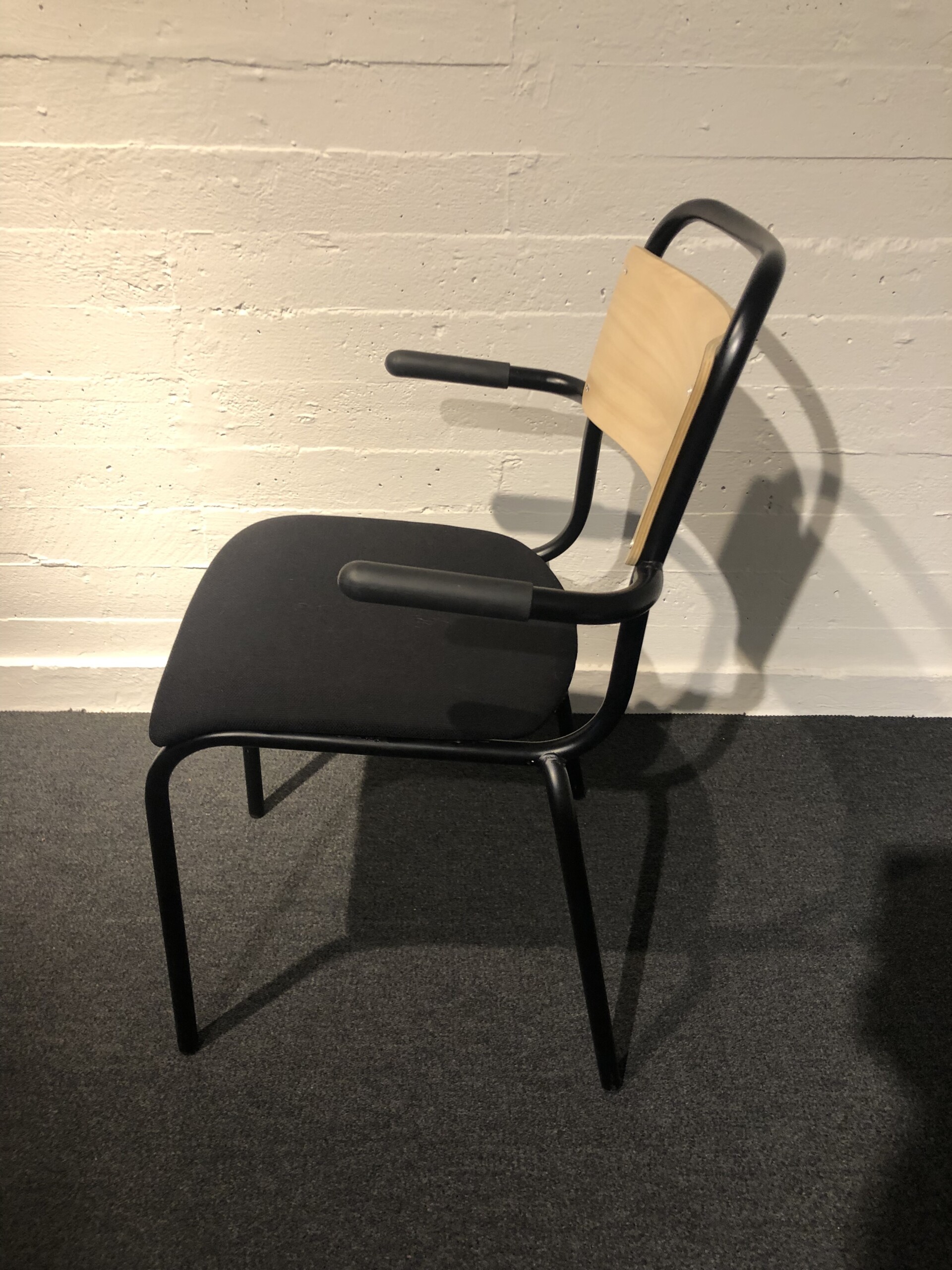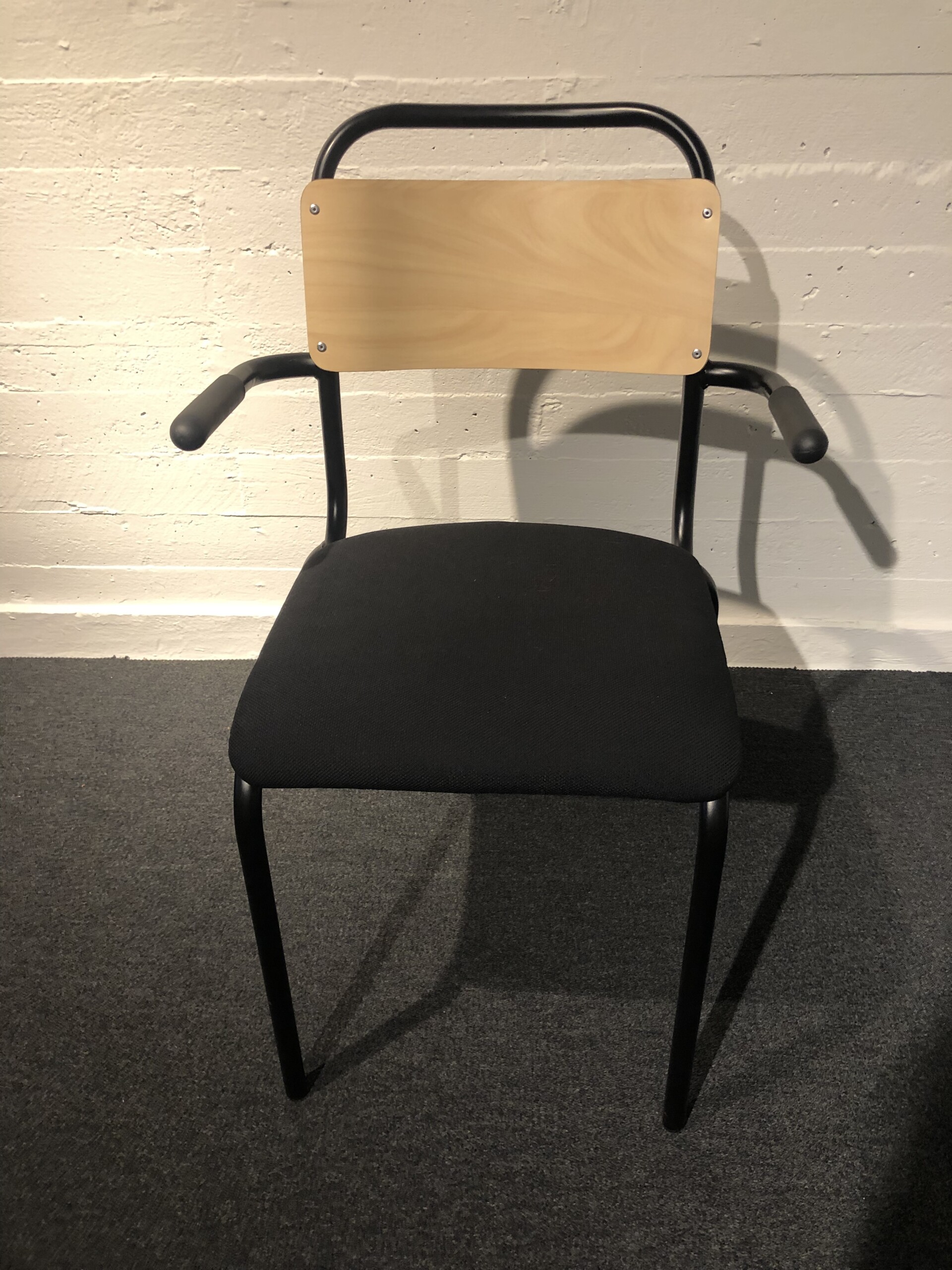 Seat in fabric (black). Backrest in wood (birch). Legs in metal (black).
