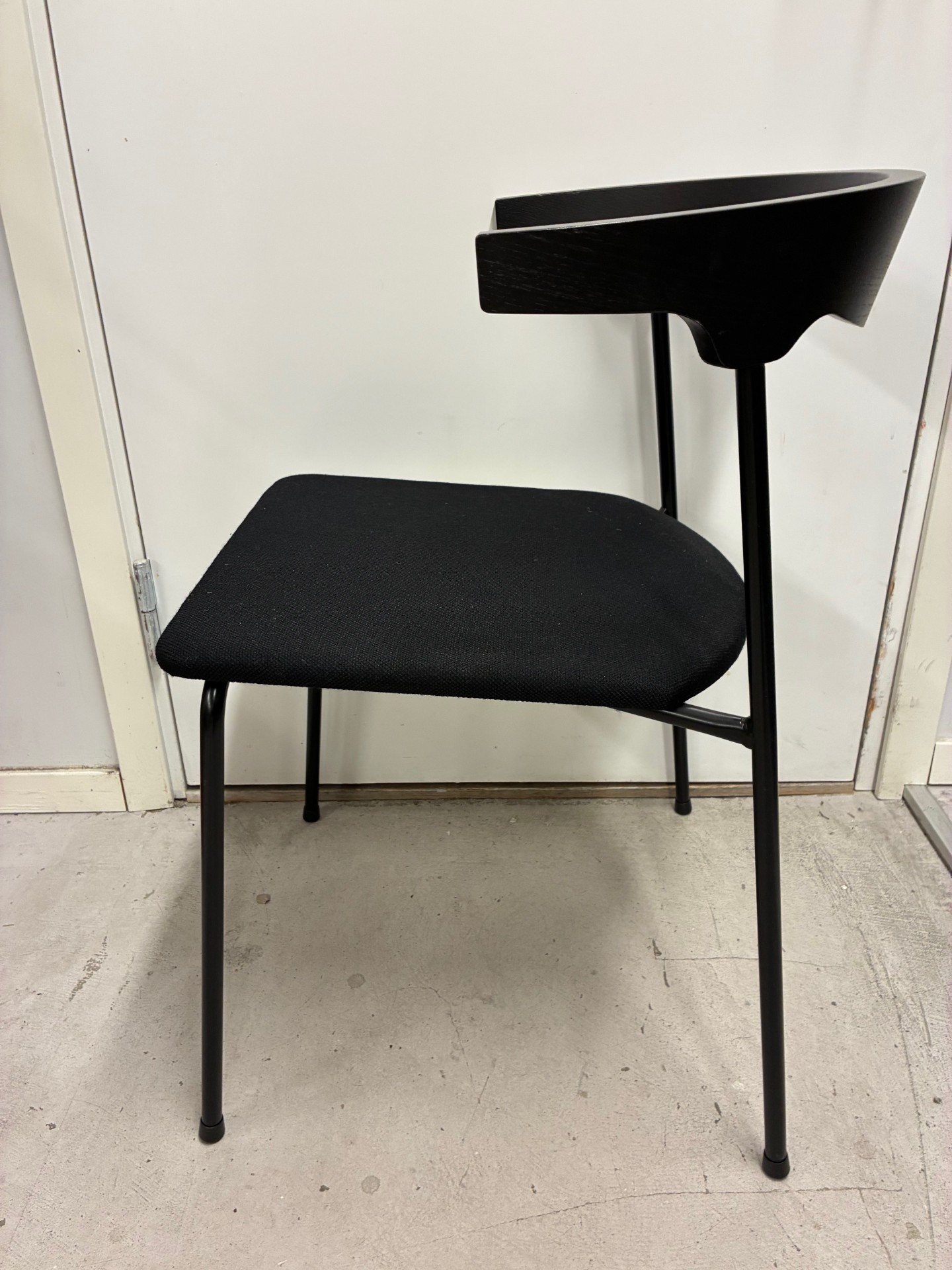 Seat in fabric (black). Backrest in wood (black). Legs in metal (black).