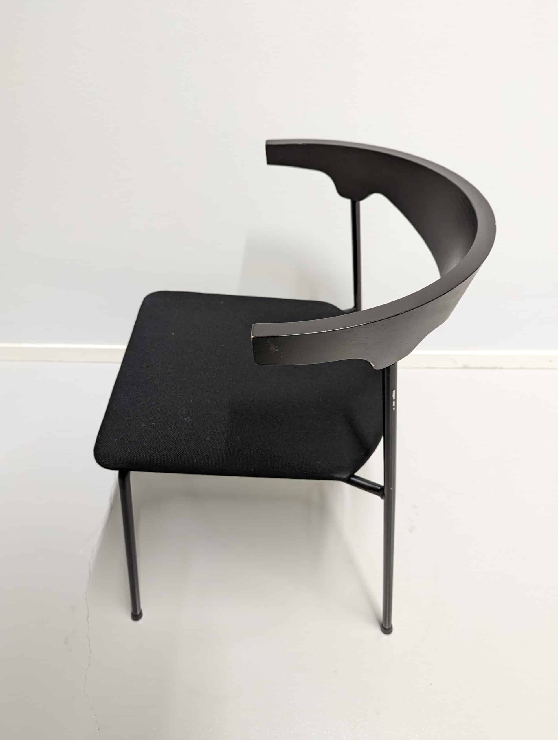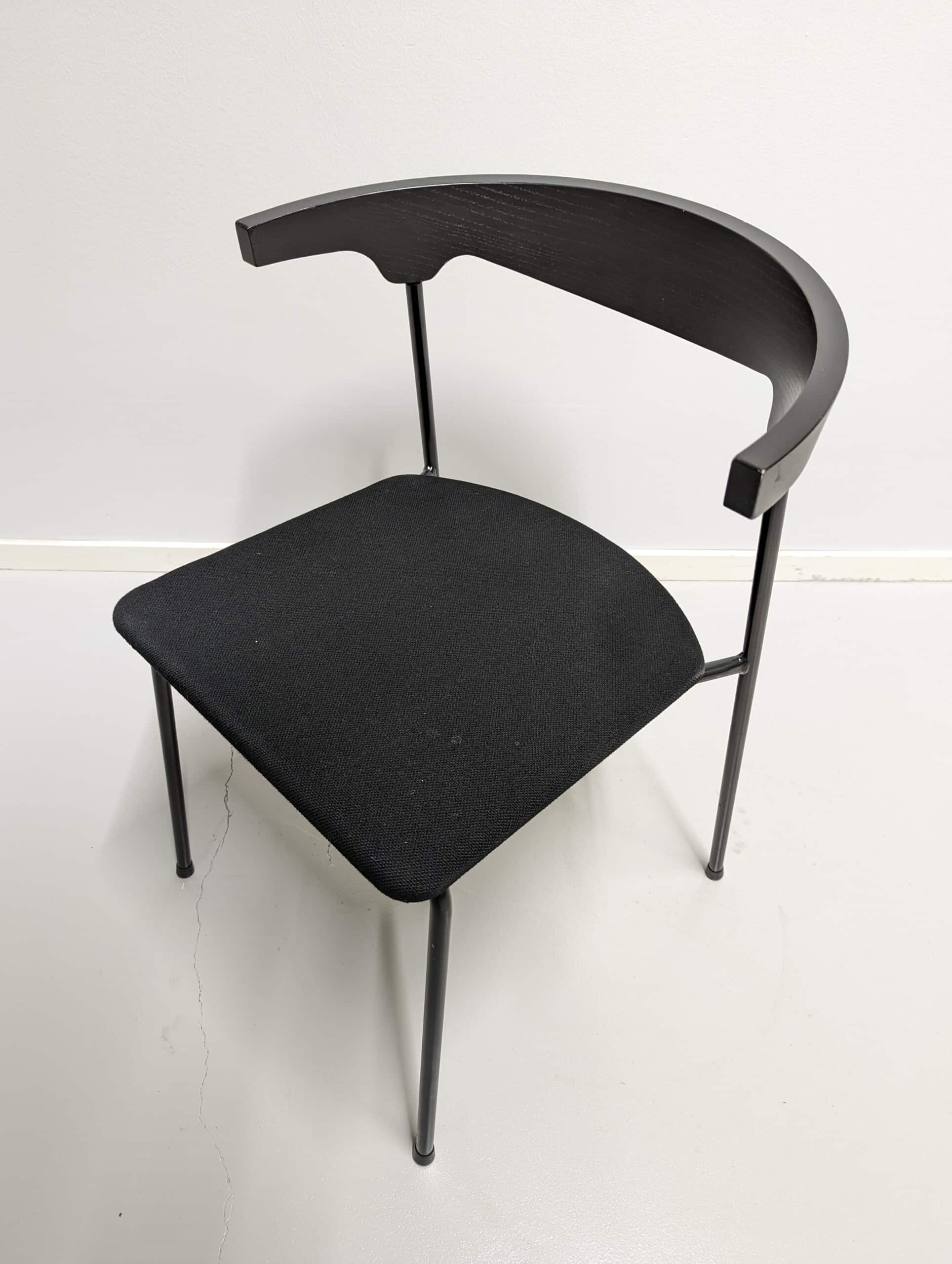 Seat in fabric (black). Backrest in wood (black). Legs in metal (black).