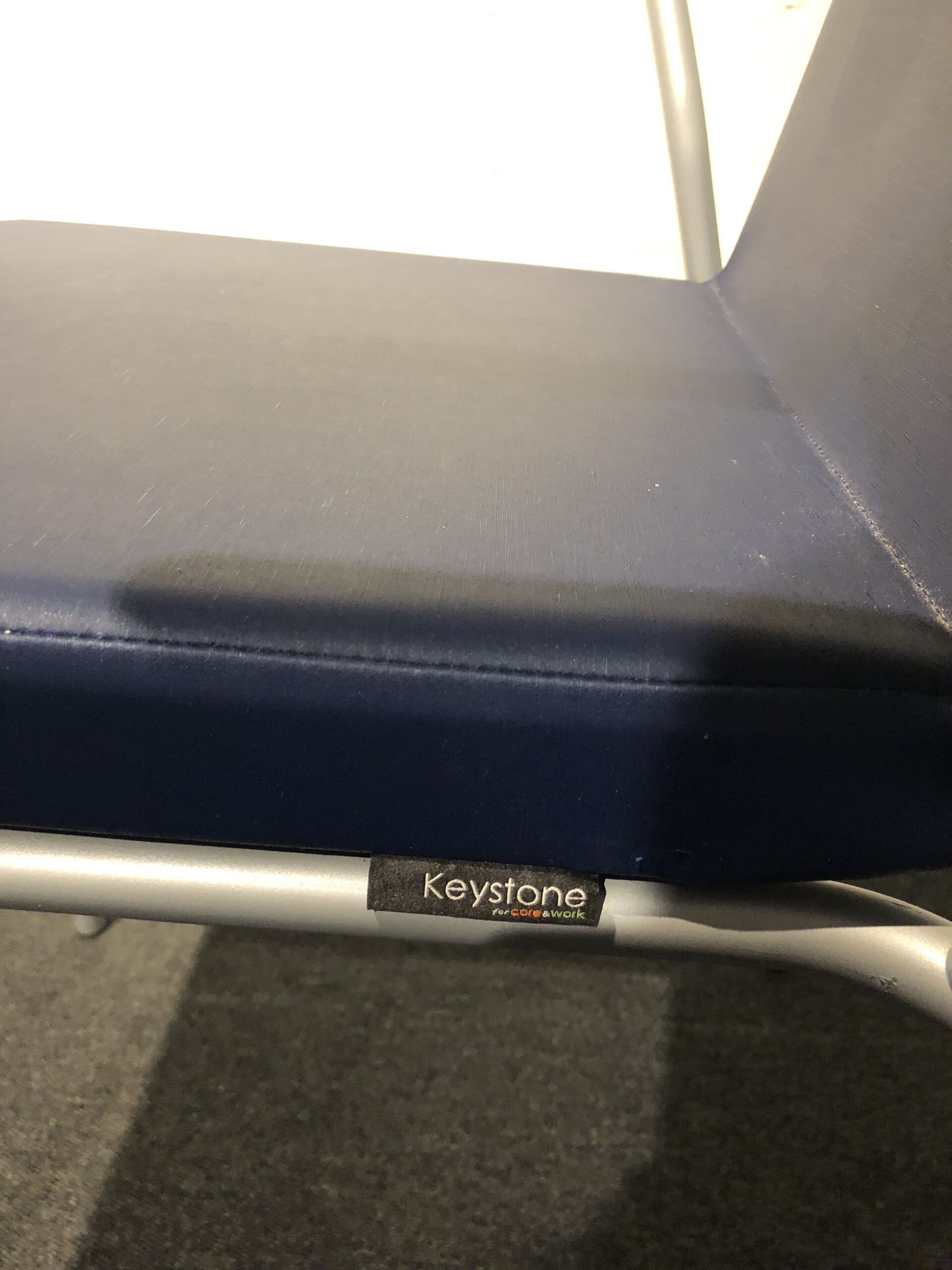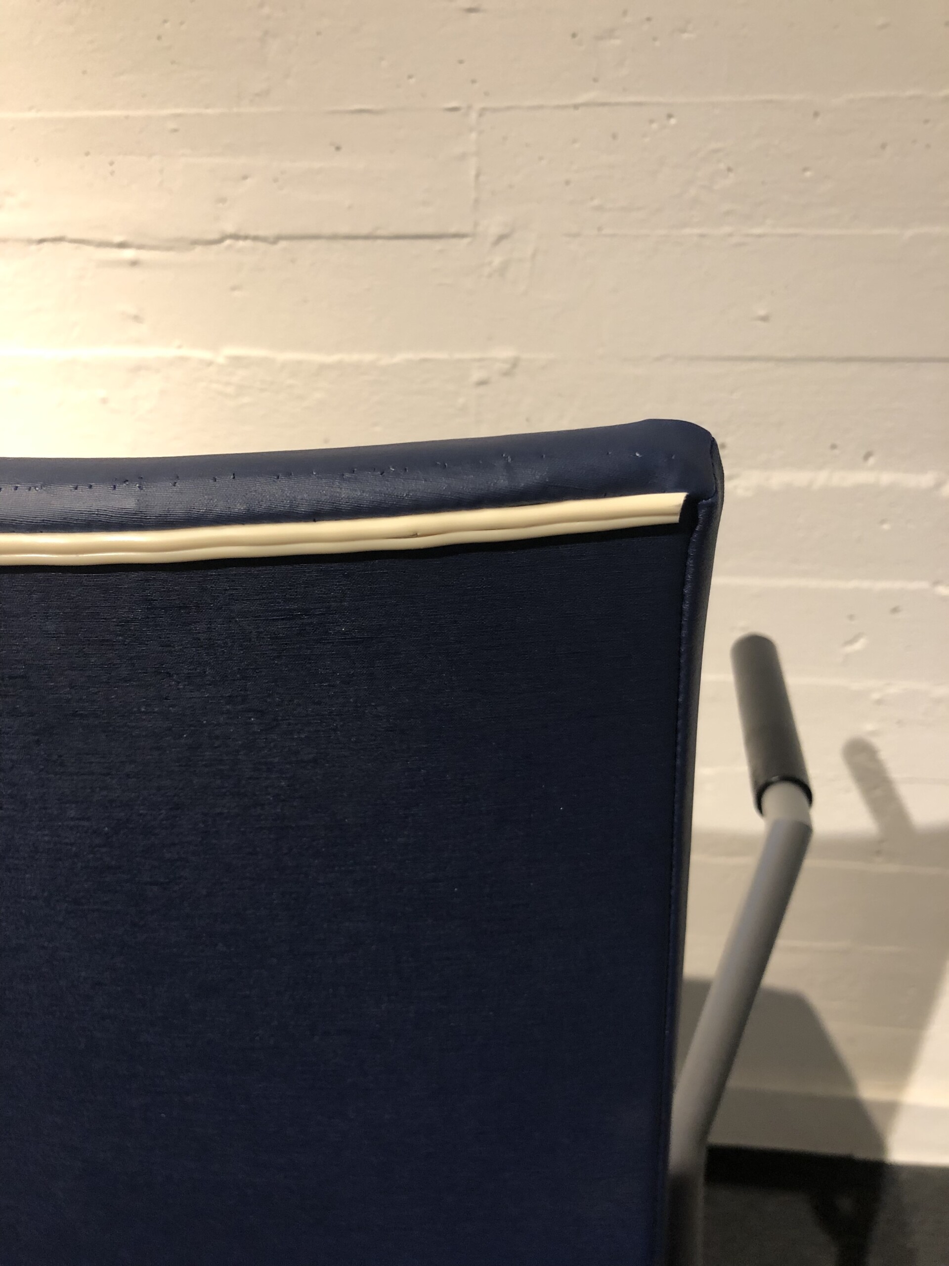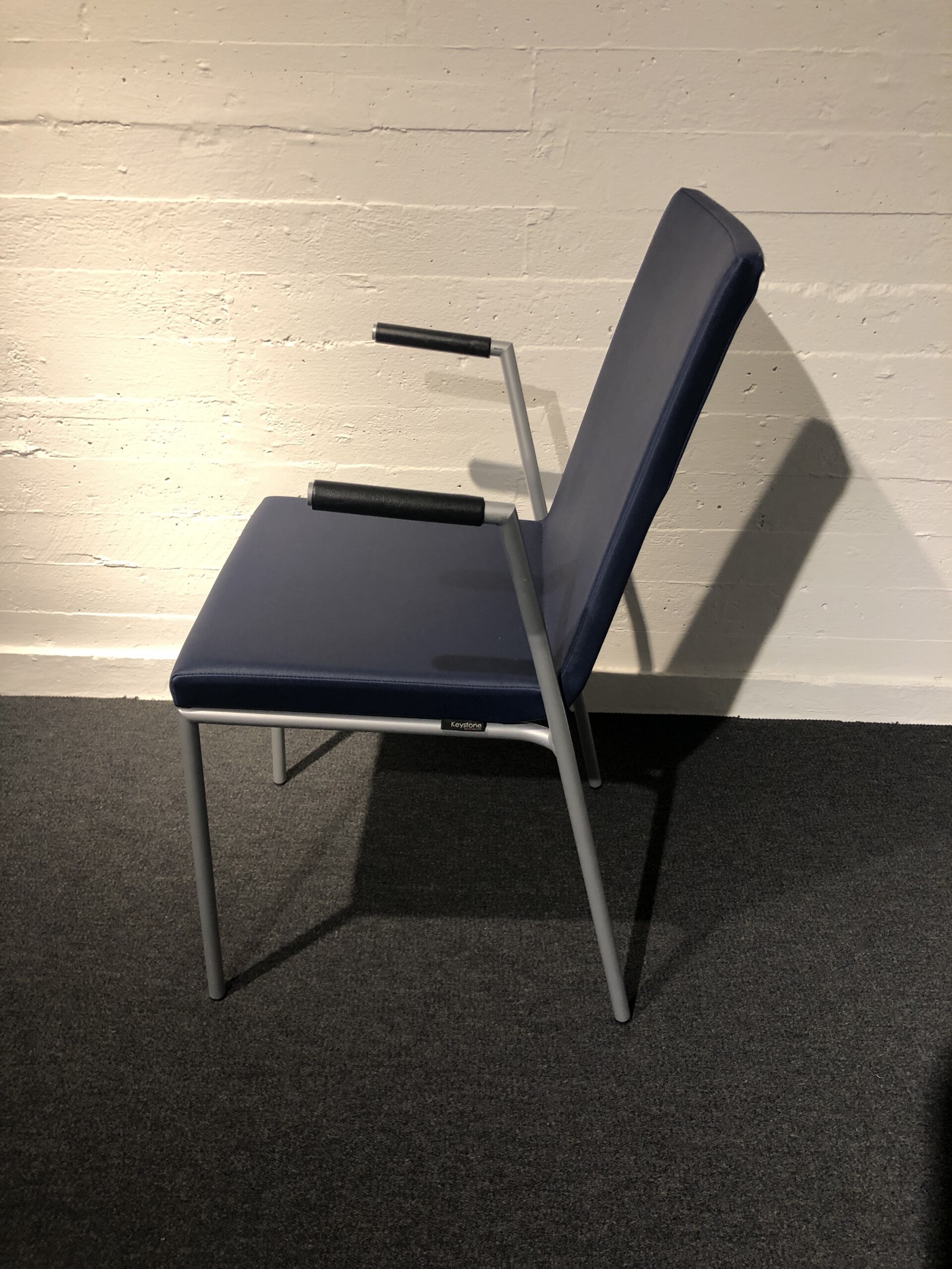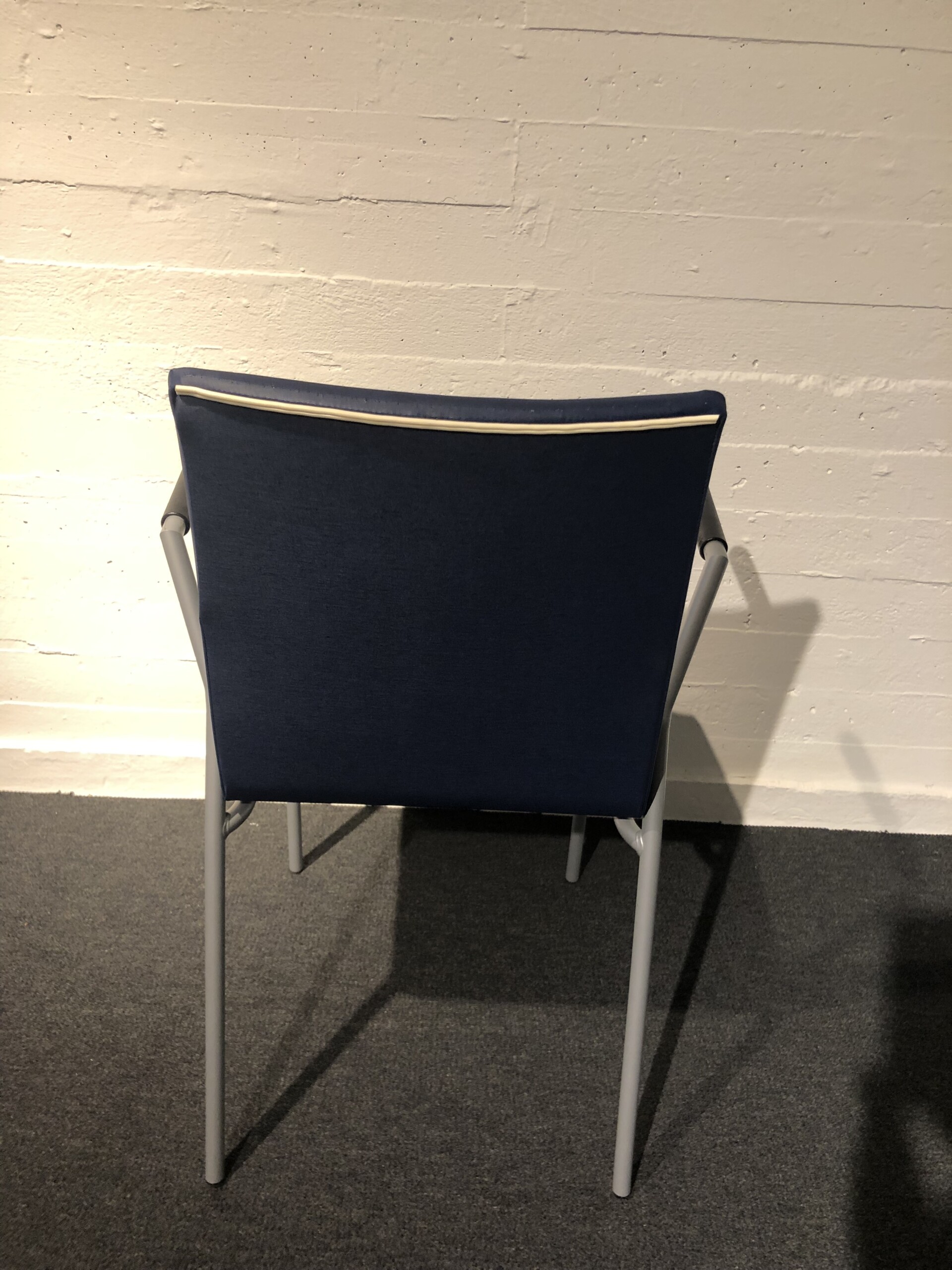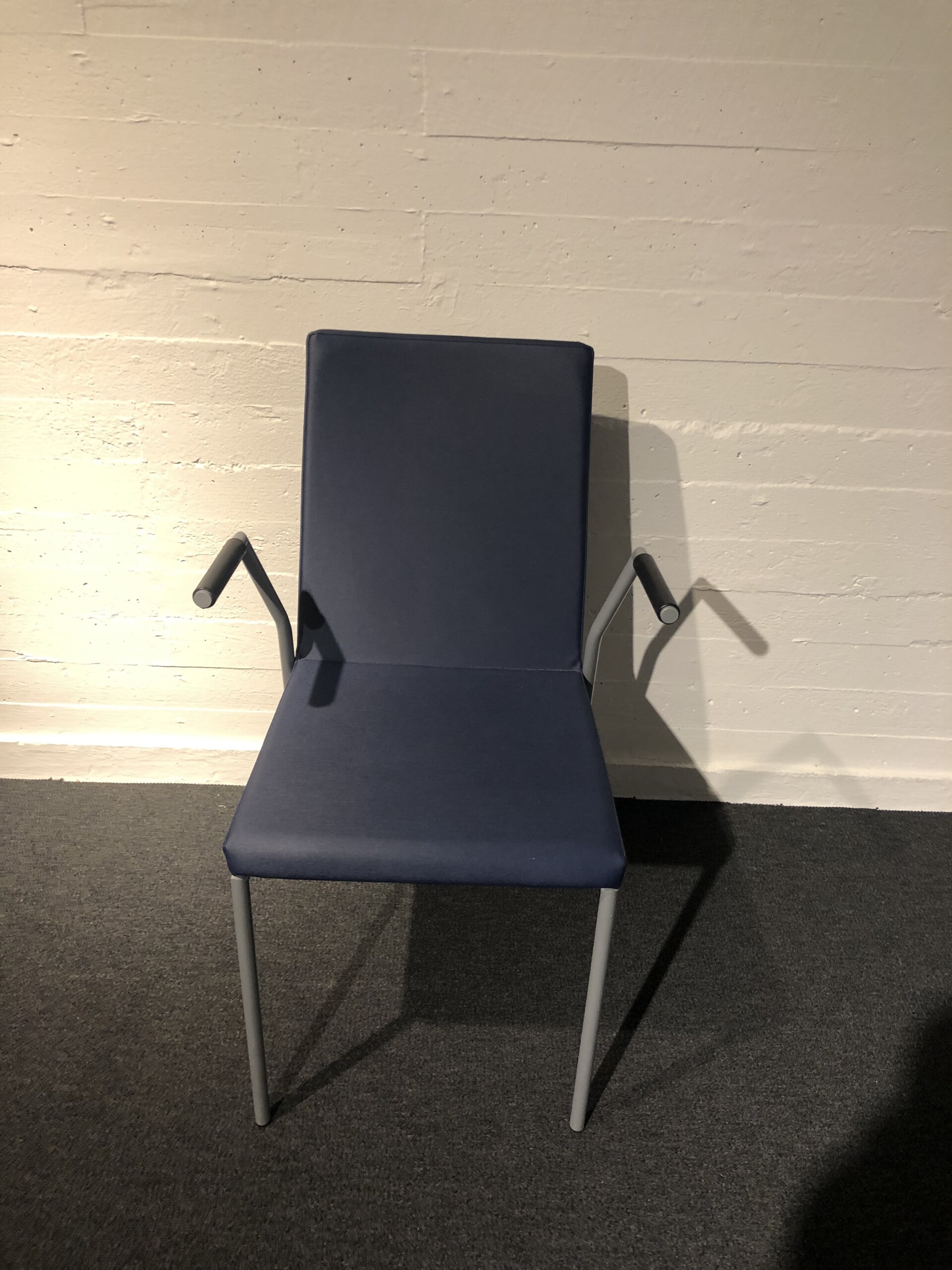 Seat and backrest in artificial leather (blue). Legs in metal (silver).