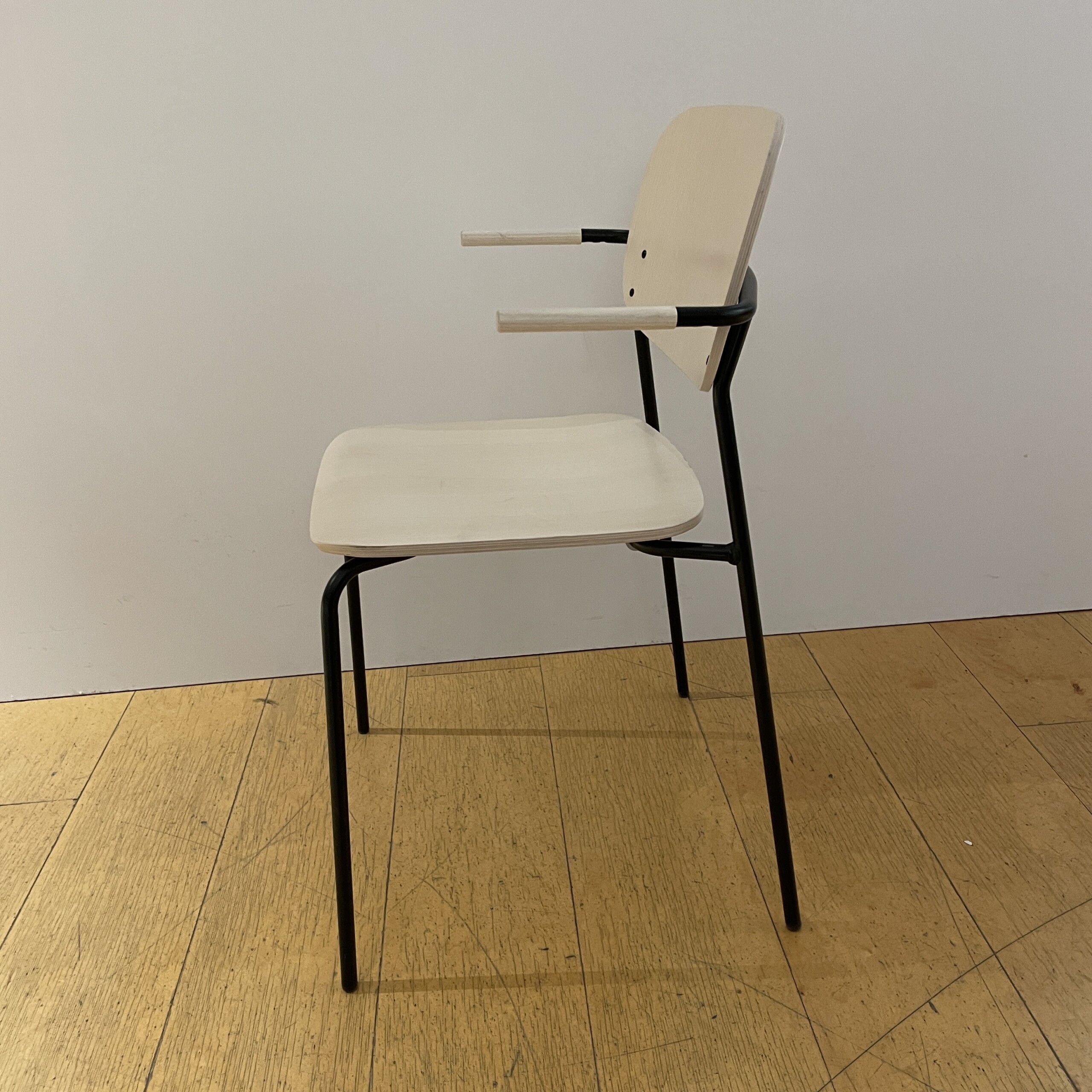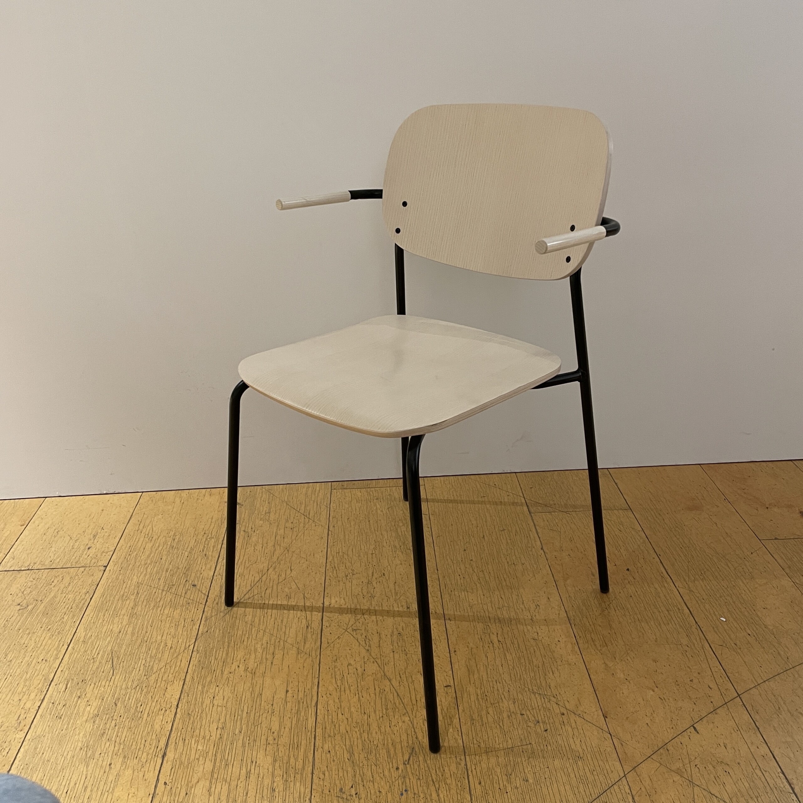 Seat and backrest in wood (ash). Legs in metal (black).