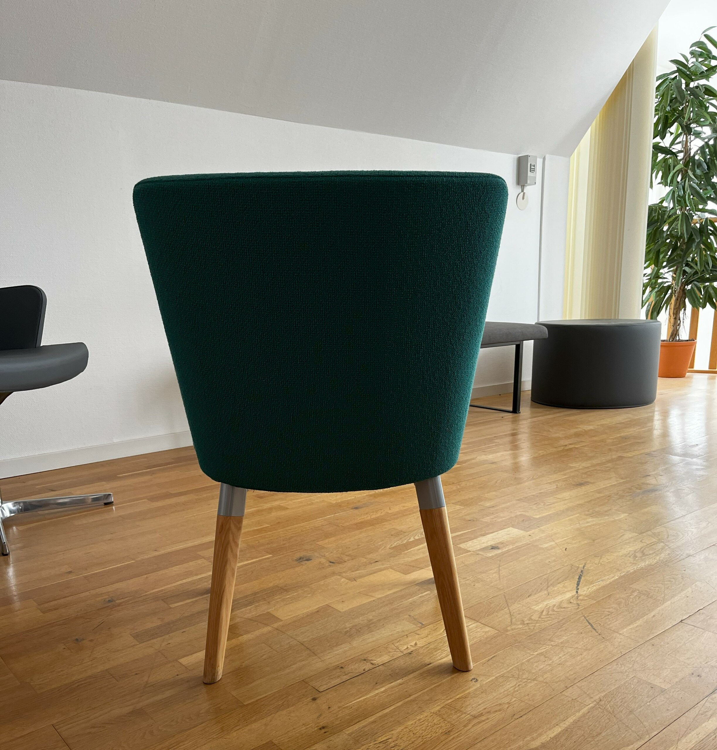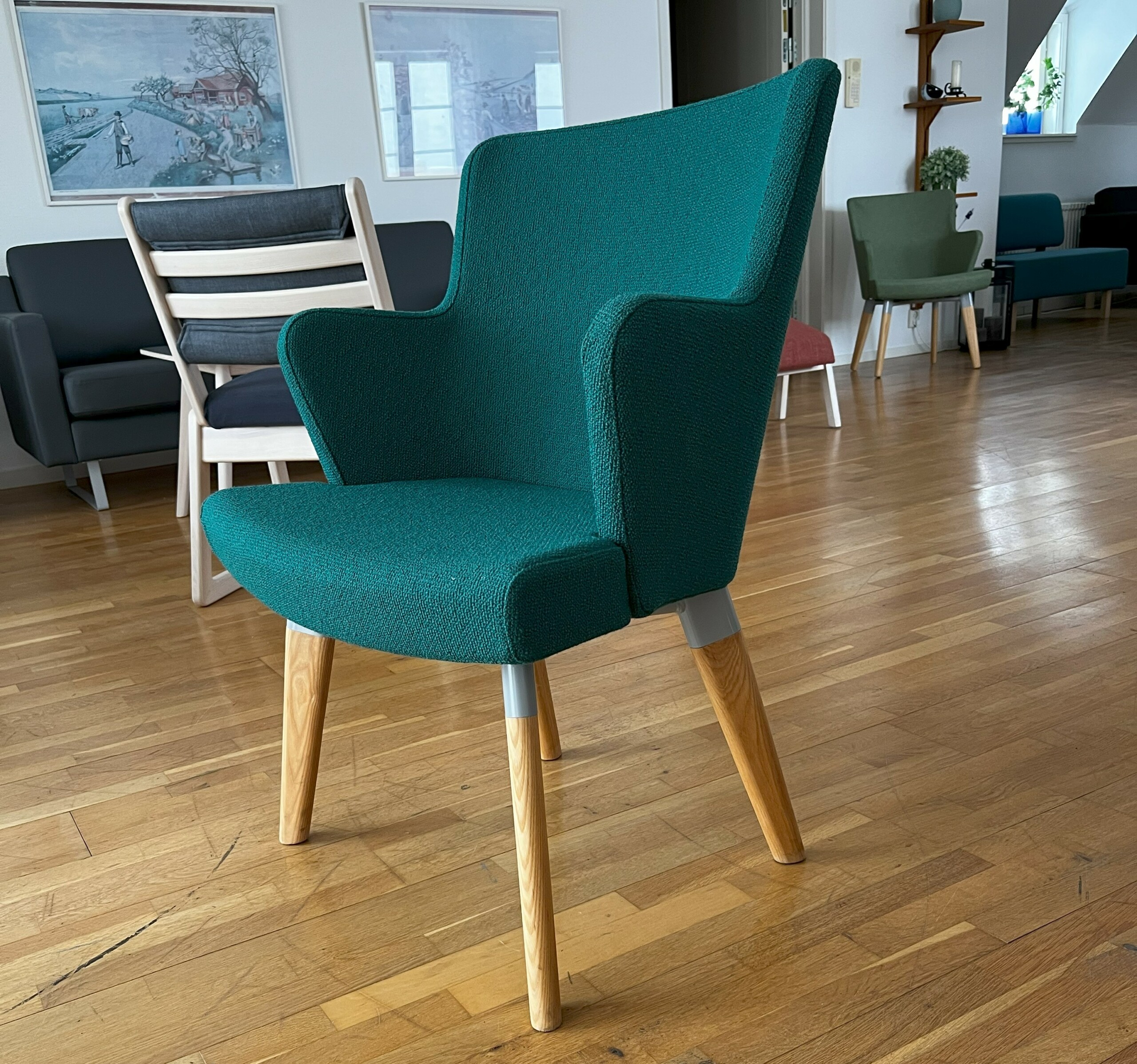 Seat and backrest in fabric (green). Legs in wood (ash).