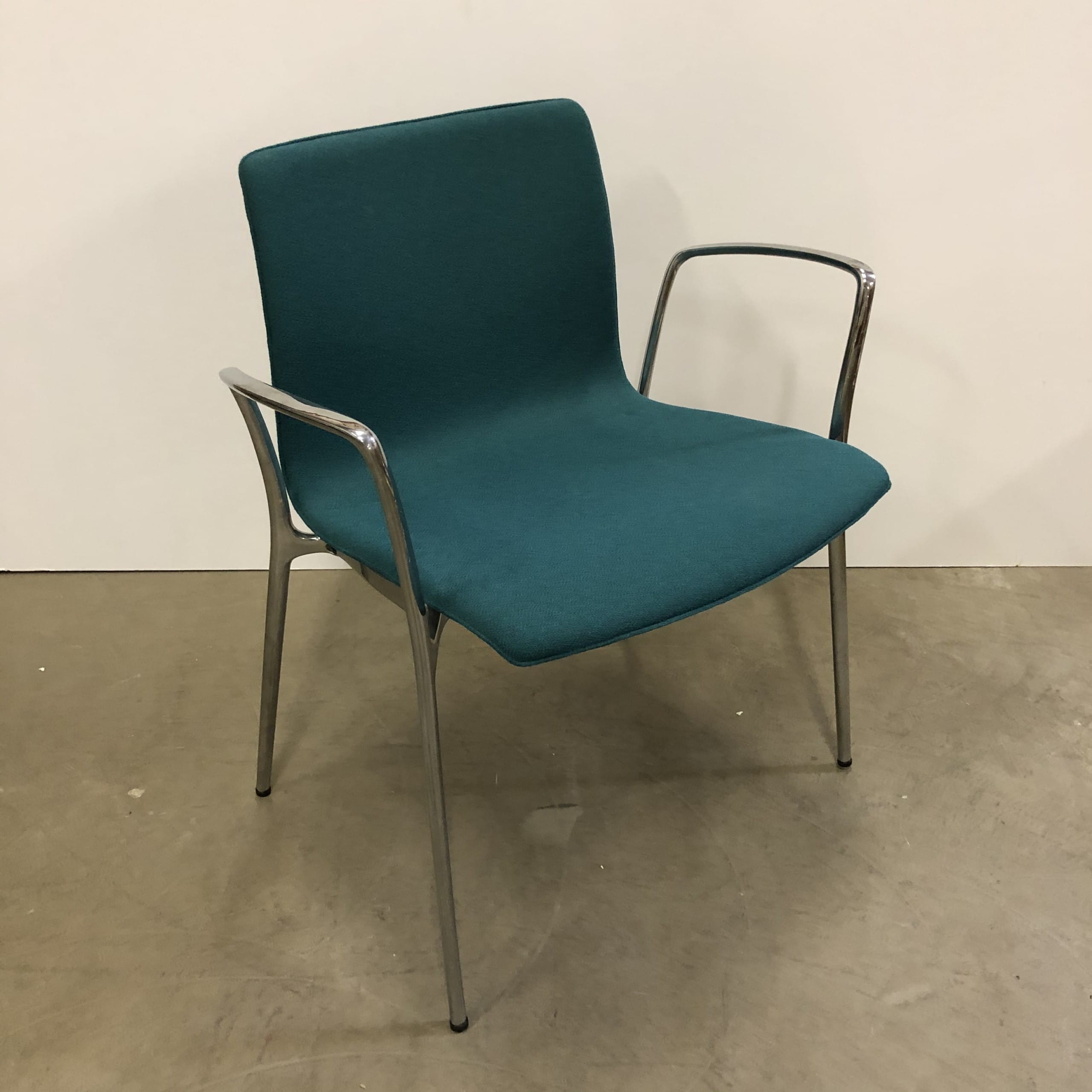 Seat and backrest in fabric (turquoise). Legs in metal (aluminium).