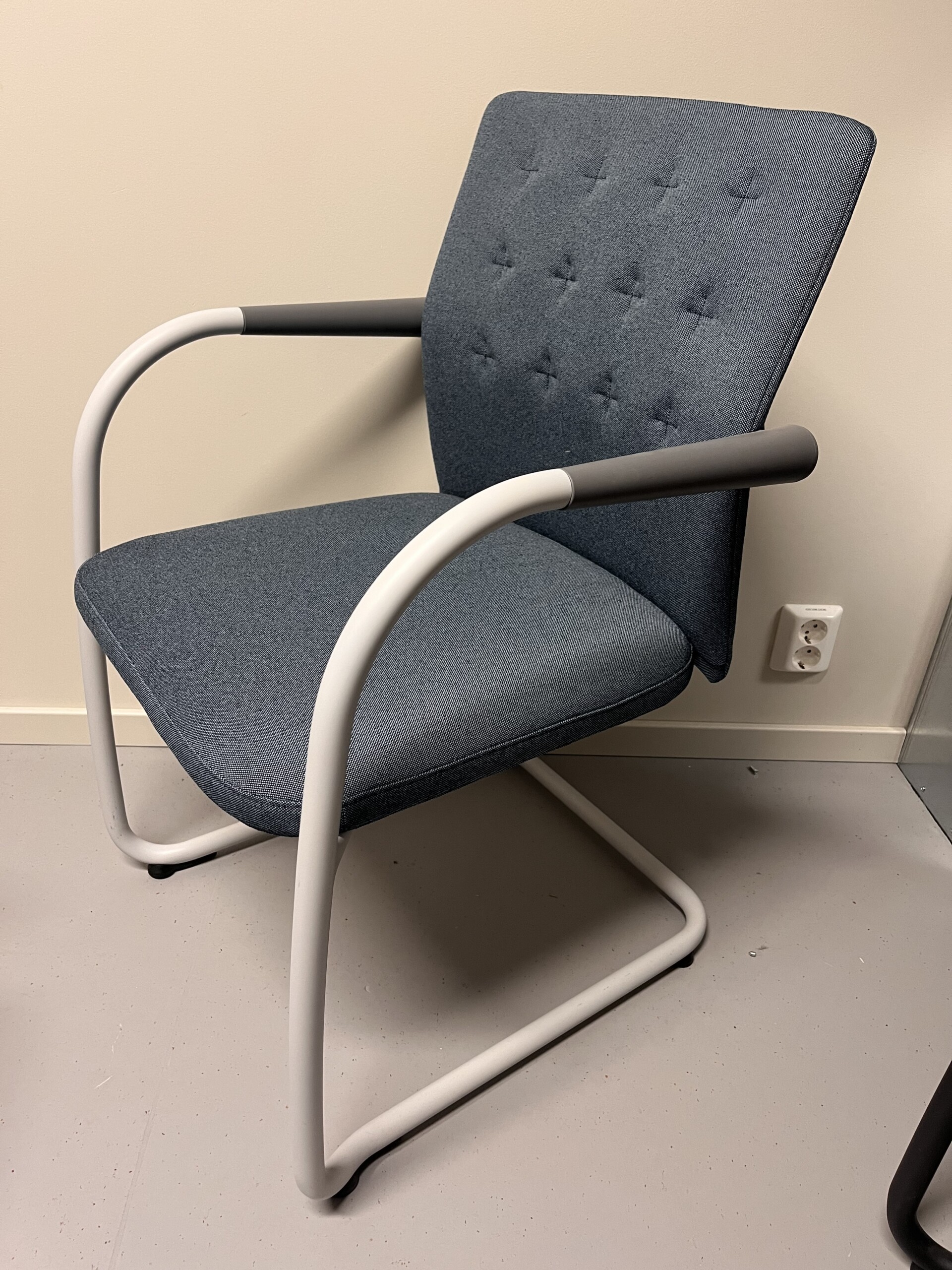 Seat and backrest in fabric (blue). Legs in metal (white).