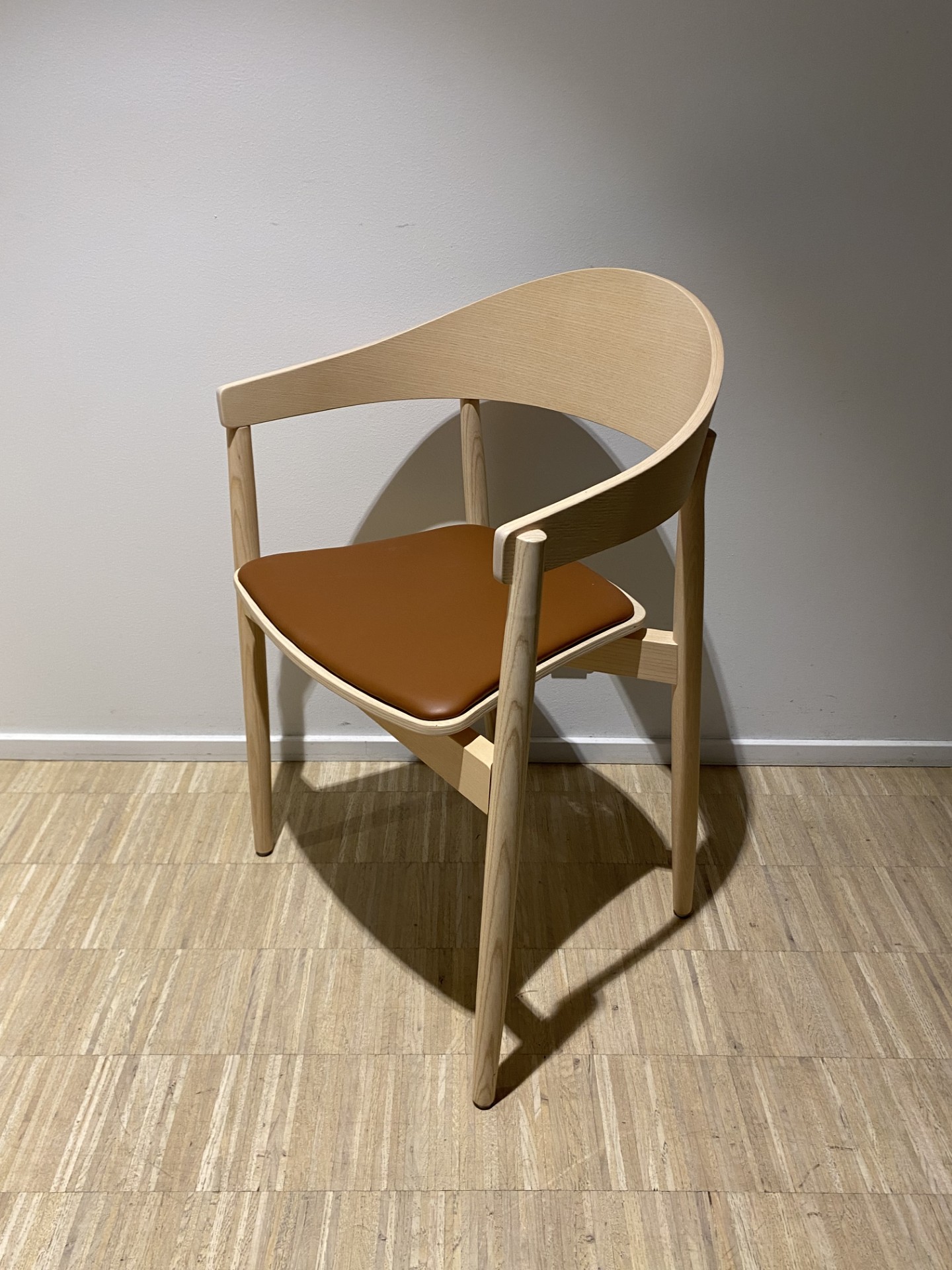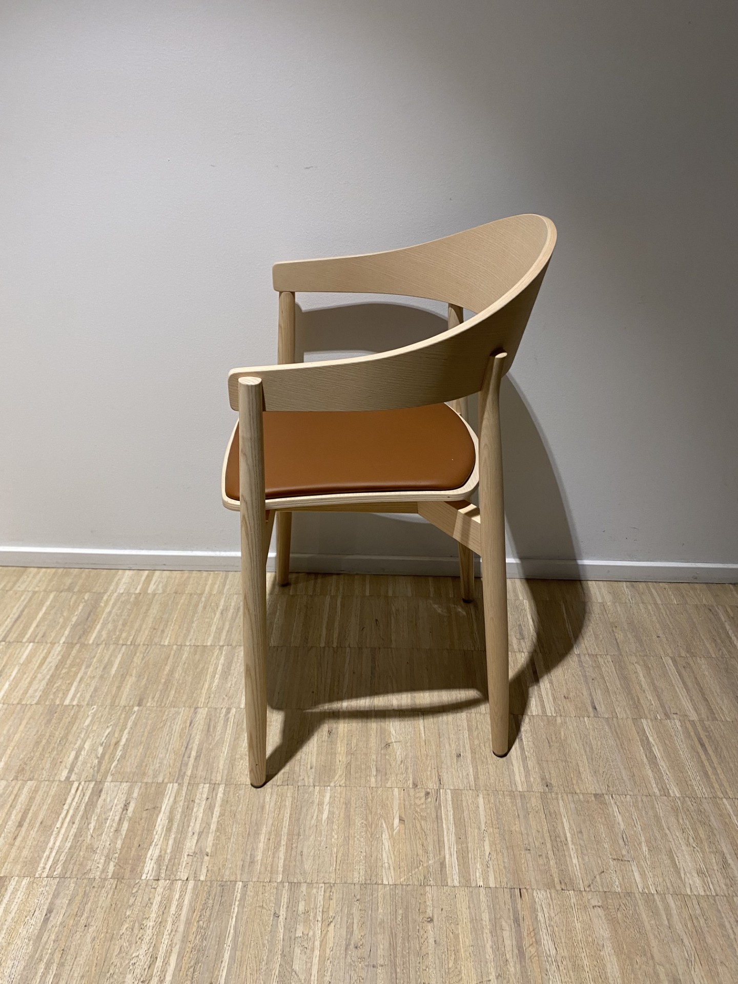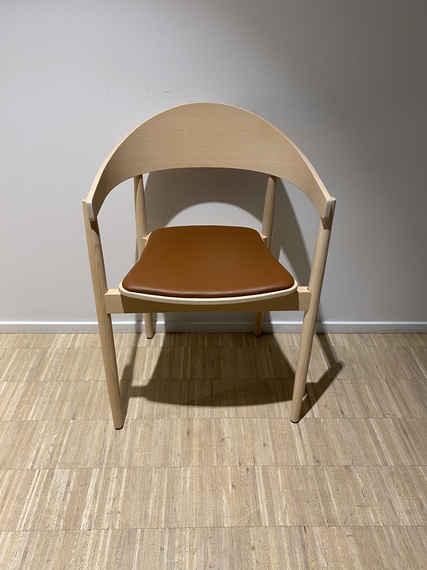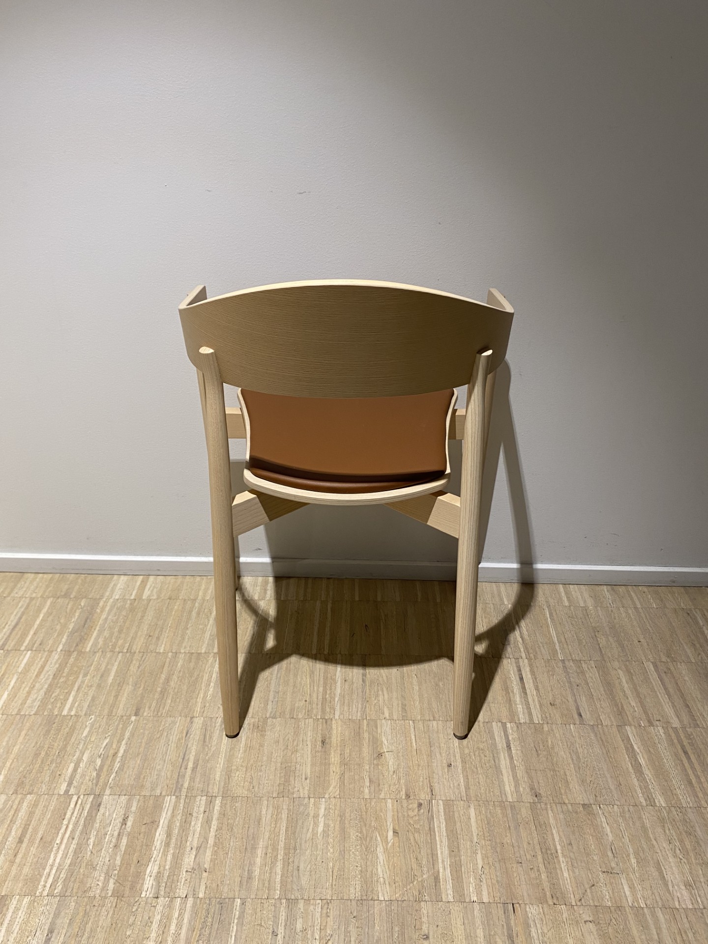 Seat in leather (brown). Backrest in wood (ash). Legs in wood (ash).