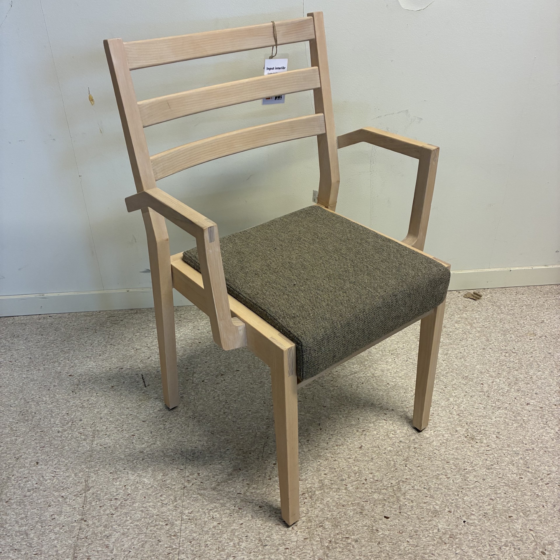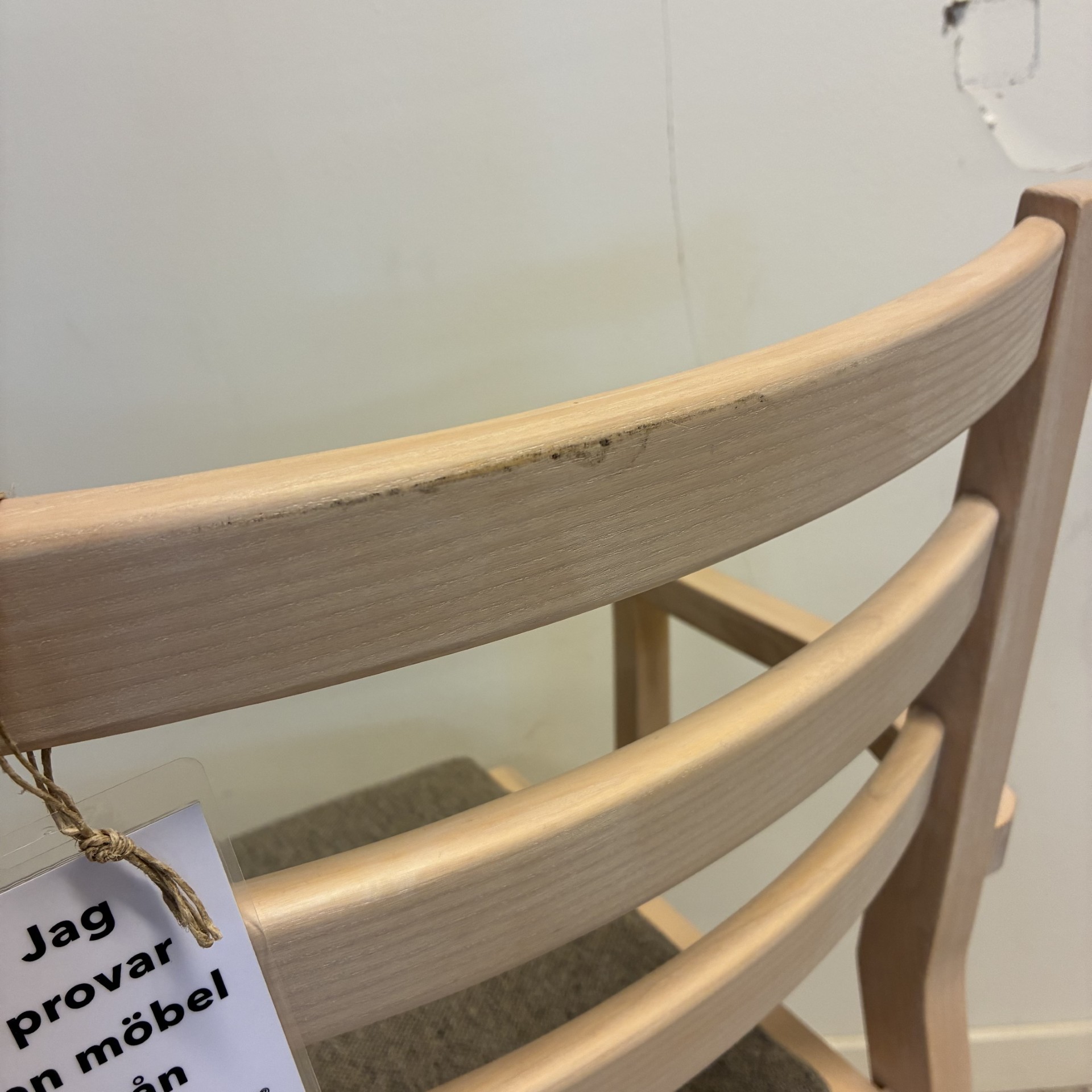 Seat in fabric (grey). Backrest in wood (ash). Legs in wood (ash).
