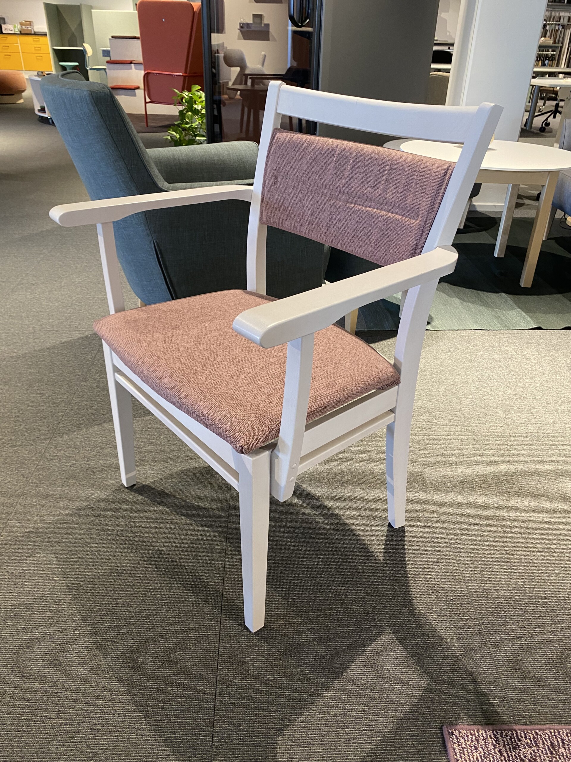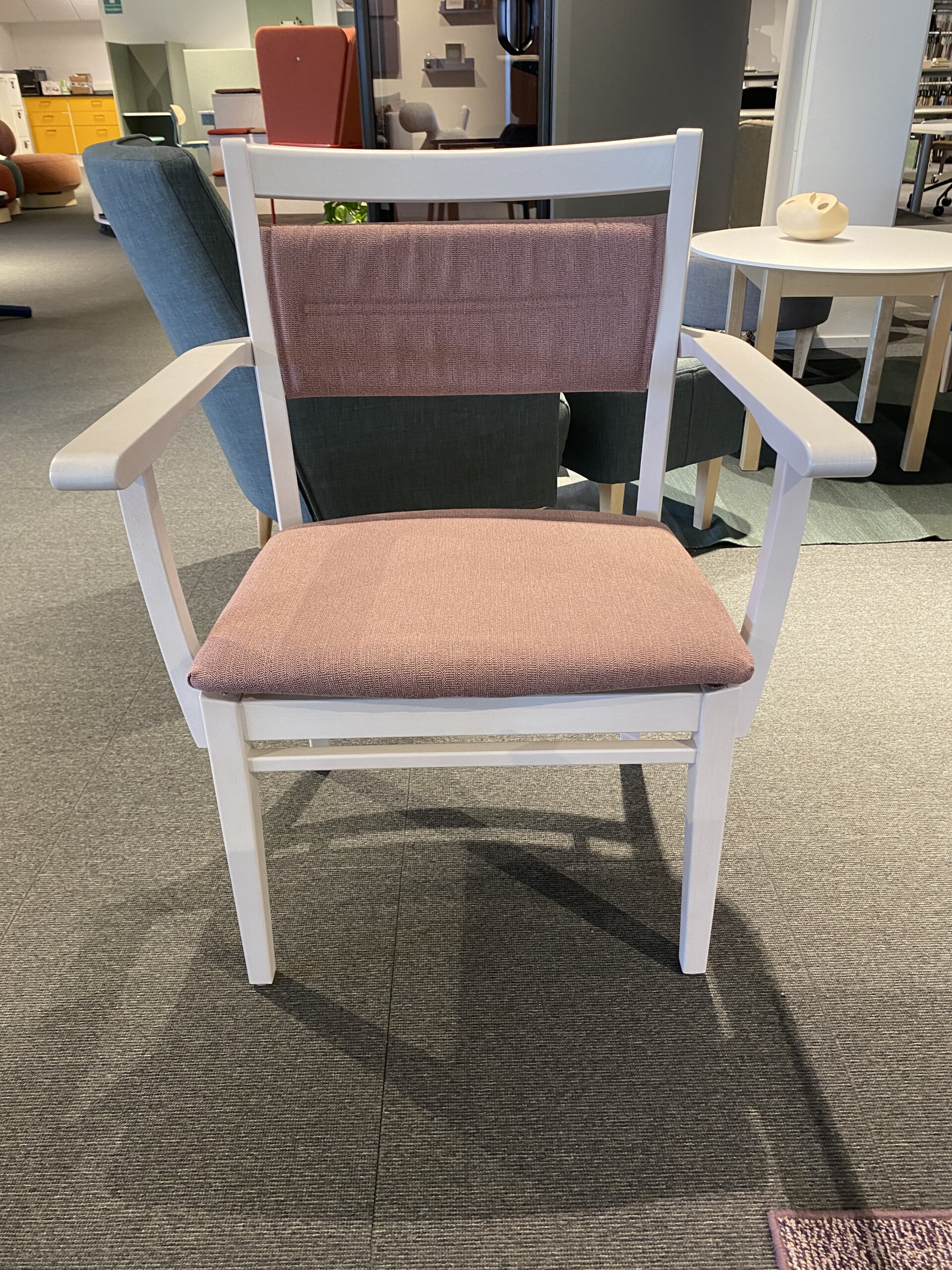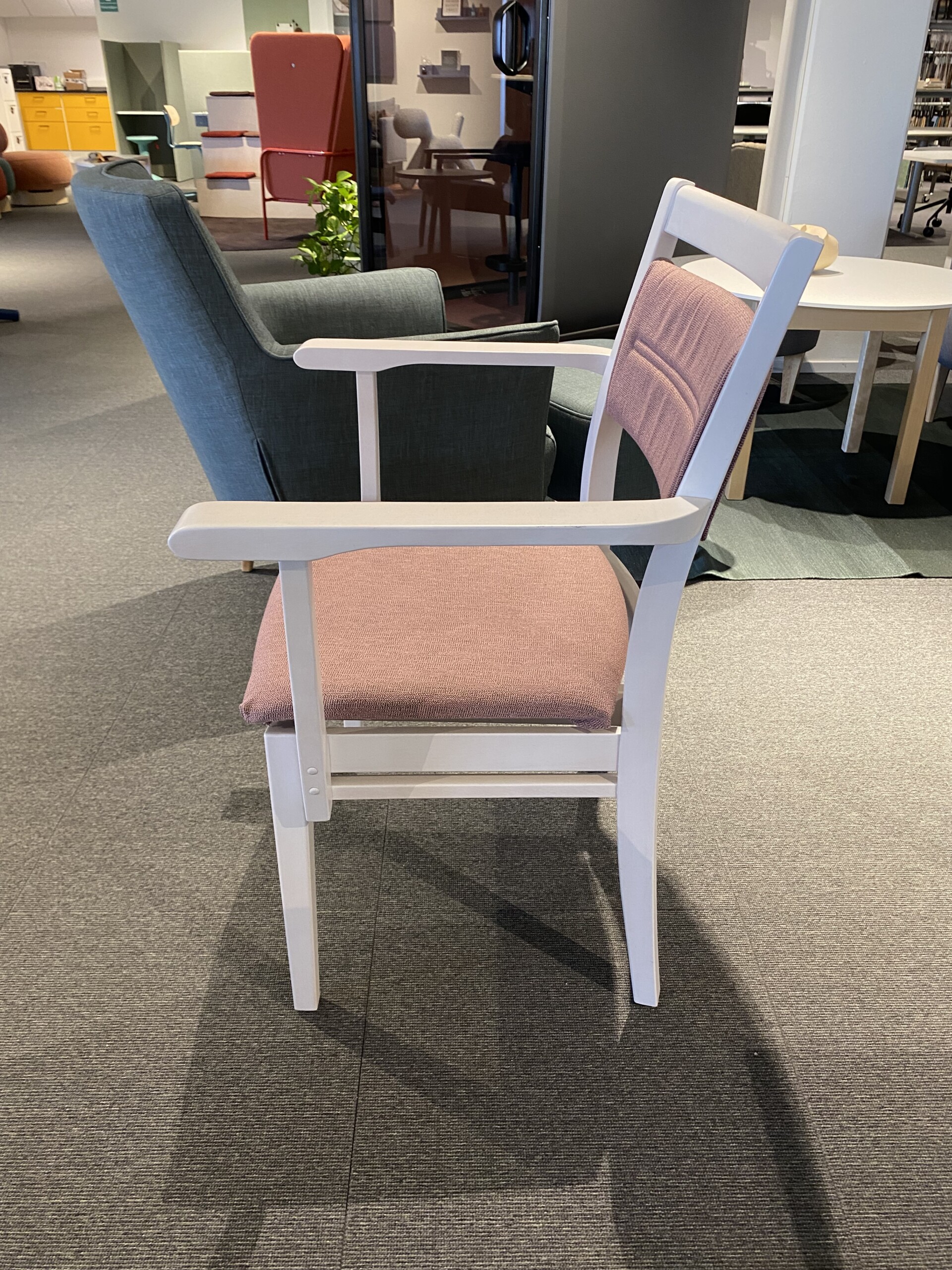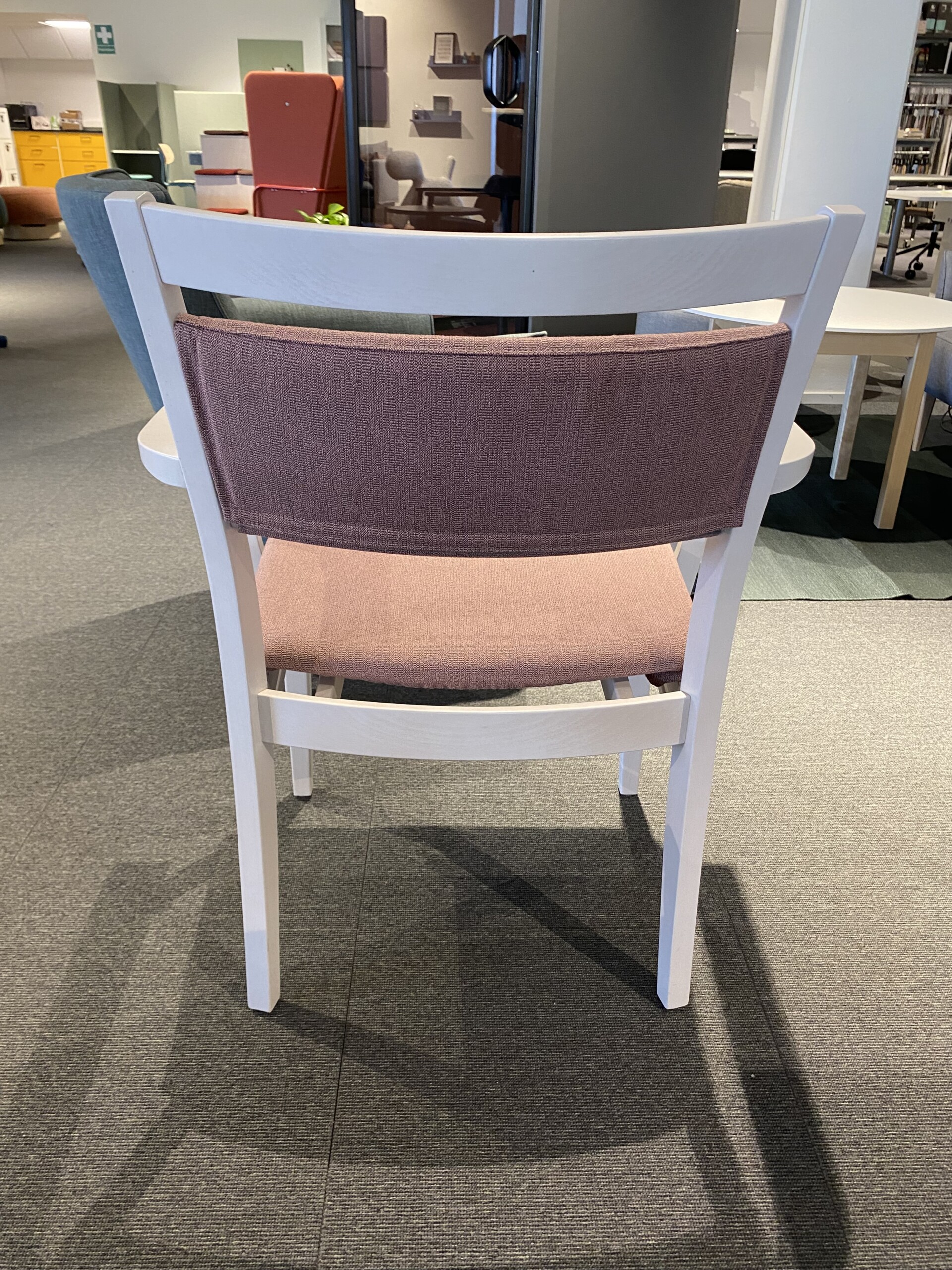 Seat and backrest in fabric (pink). Legs in wood (white).