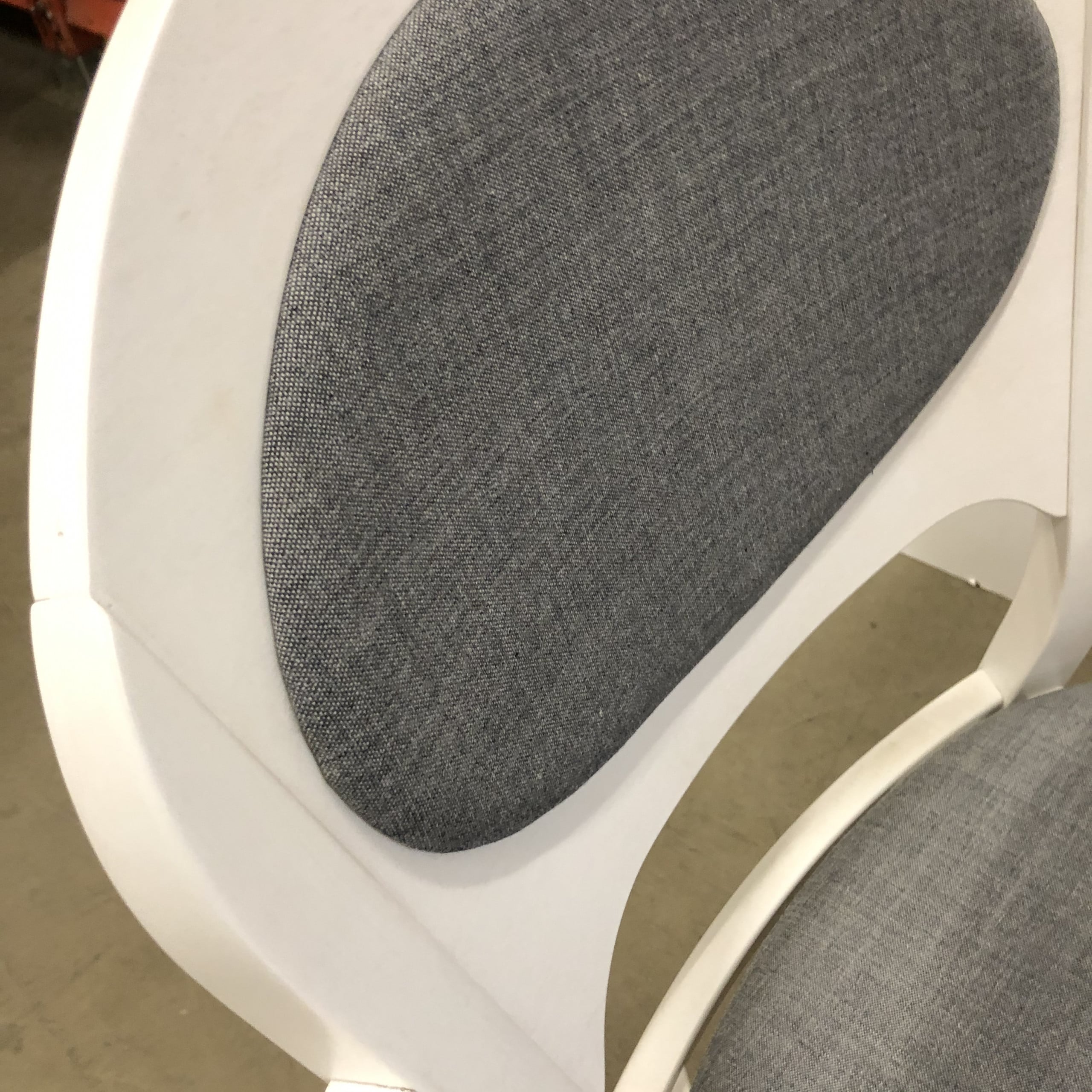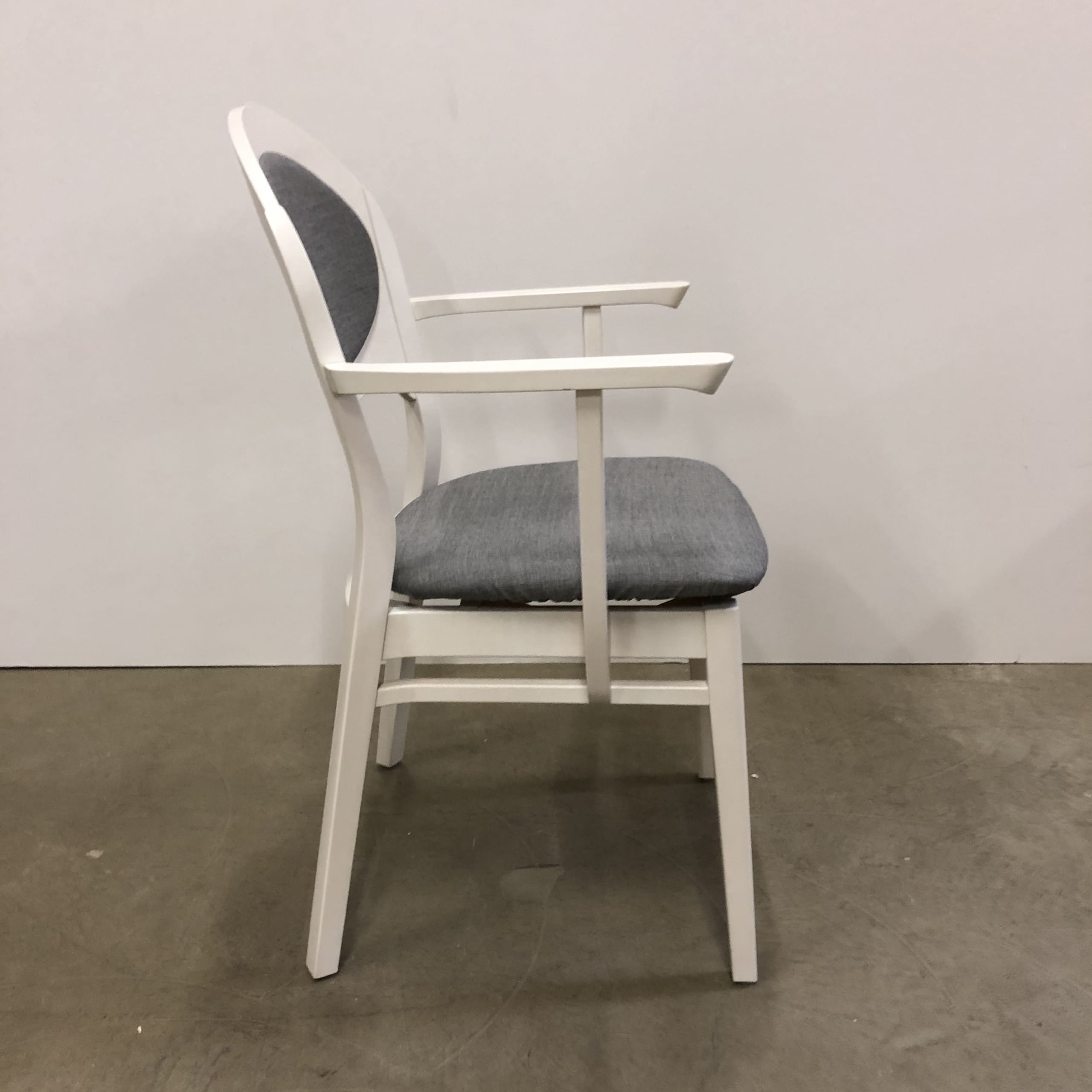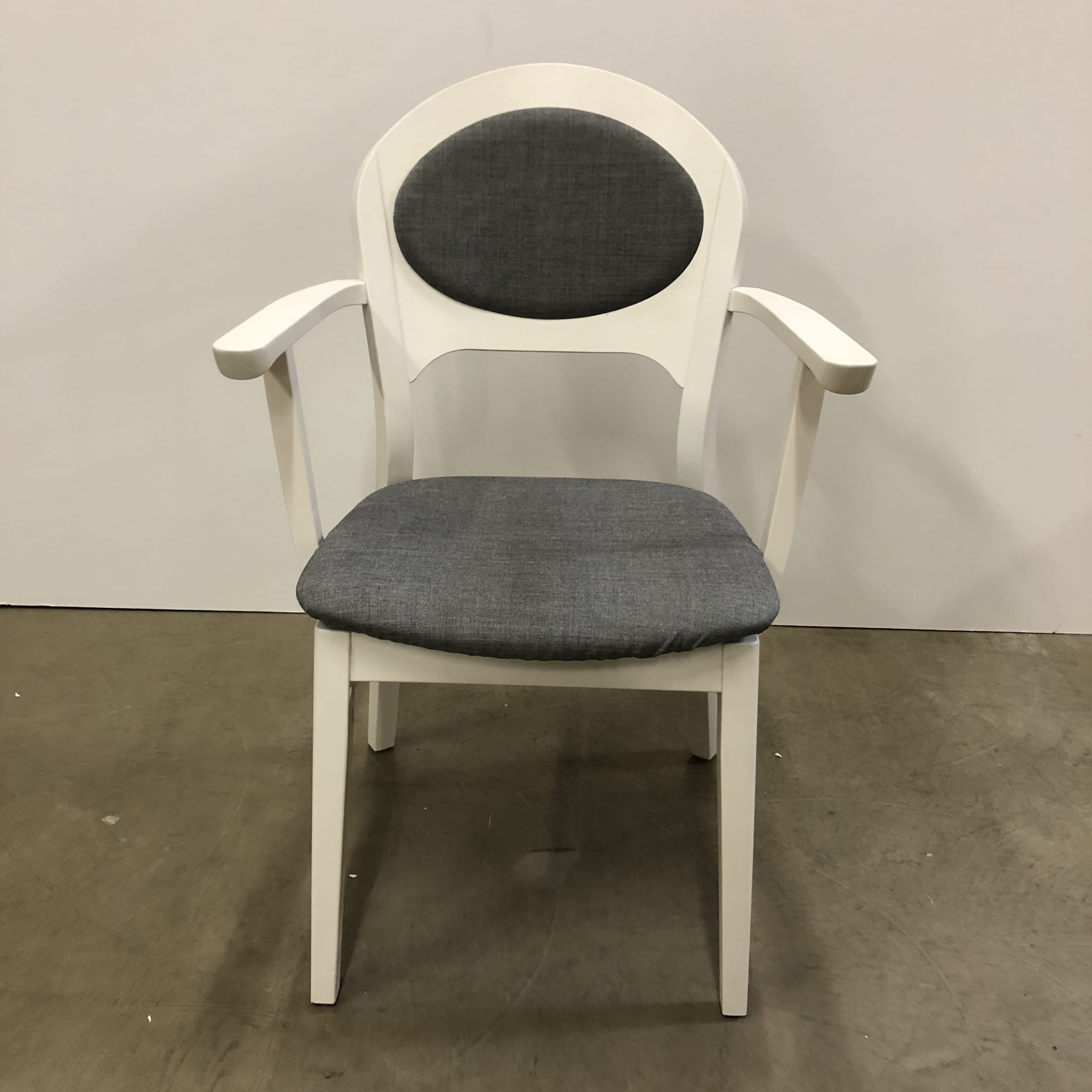 Seat and backrest in fabric (grey). Legs in wood (white).