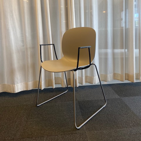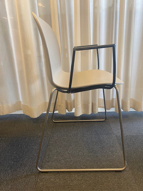 Seat and backrest in plastic (grey). Sledgebase in metal (black).