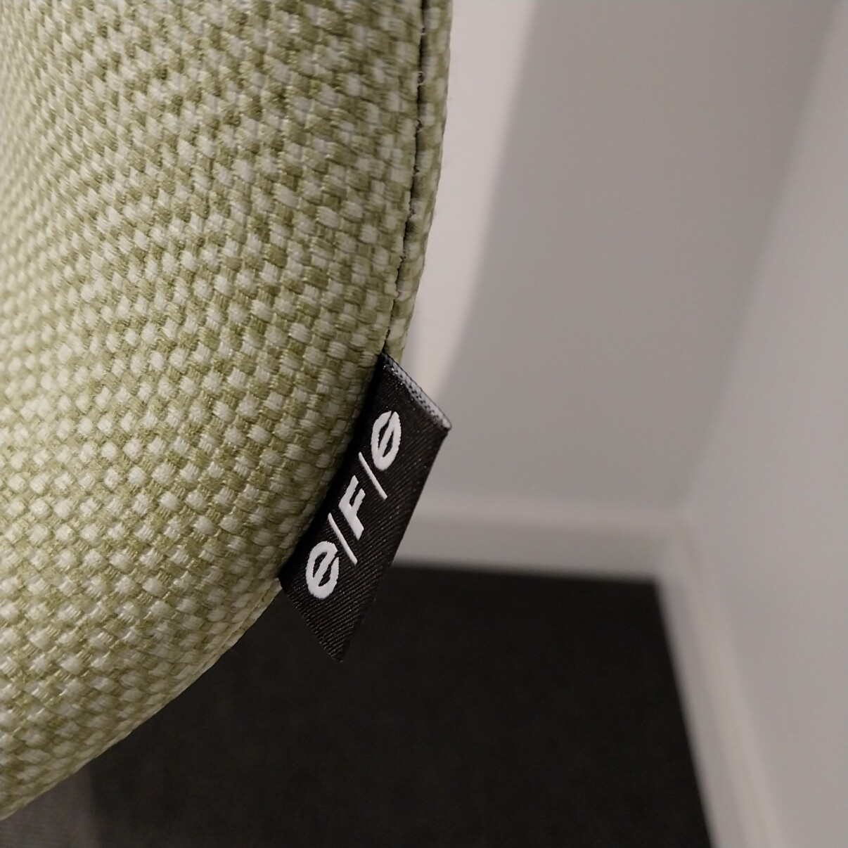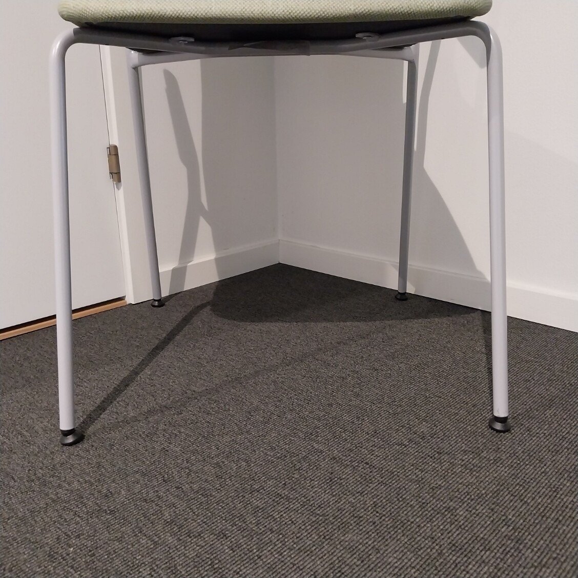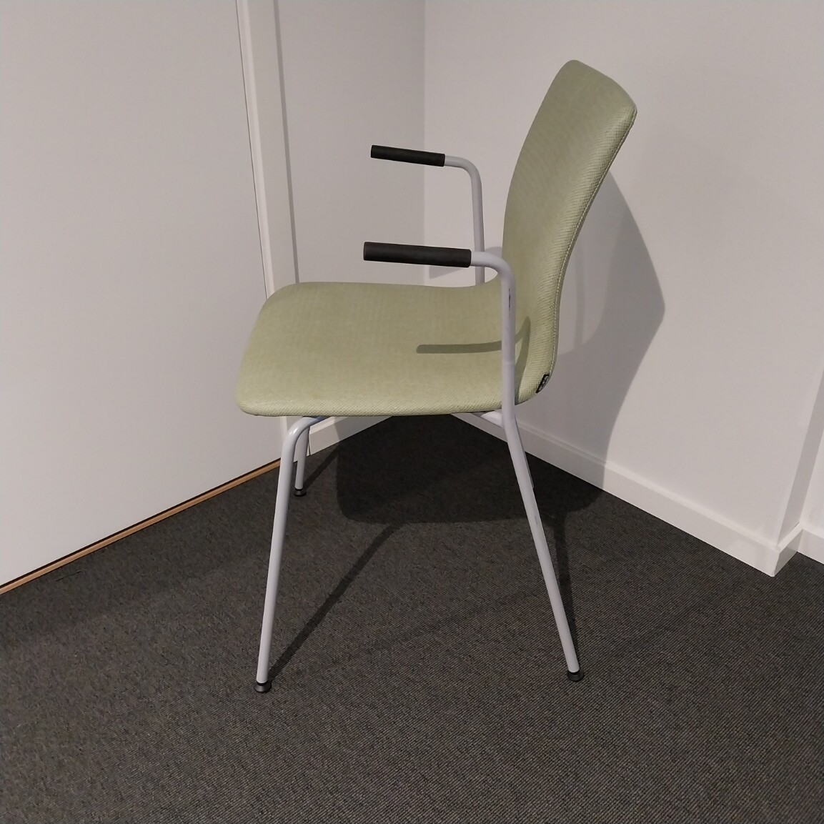 Seat and backrest in fabric (green). Legs in metal (grey).