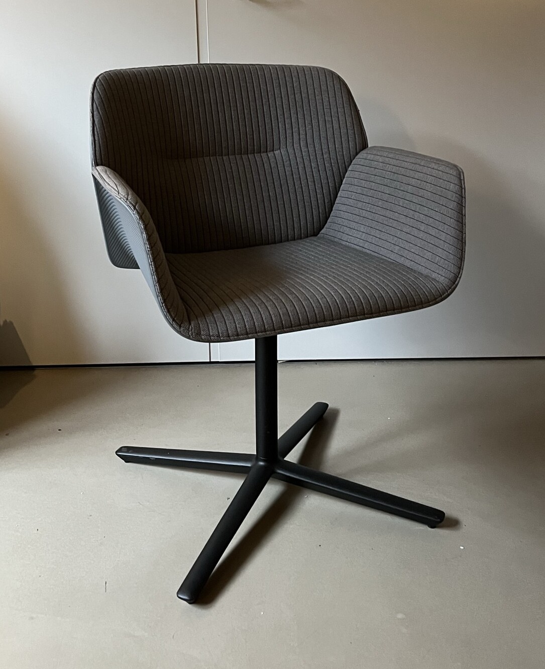Seat and backrest in fabric (grey). Star base in metal (aluminium).