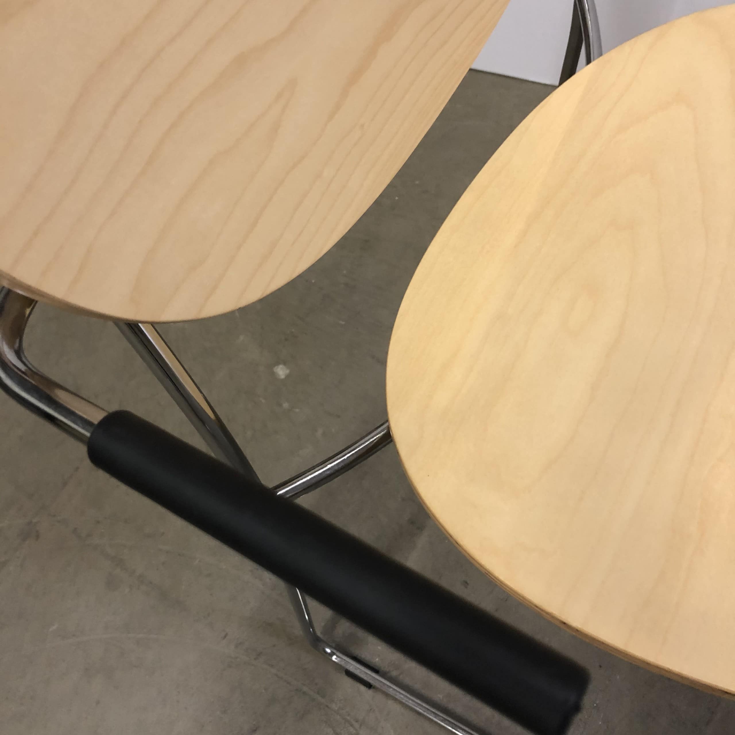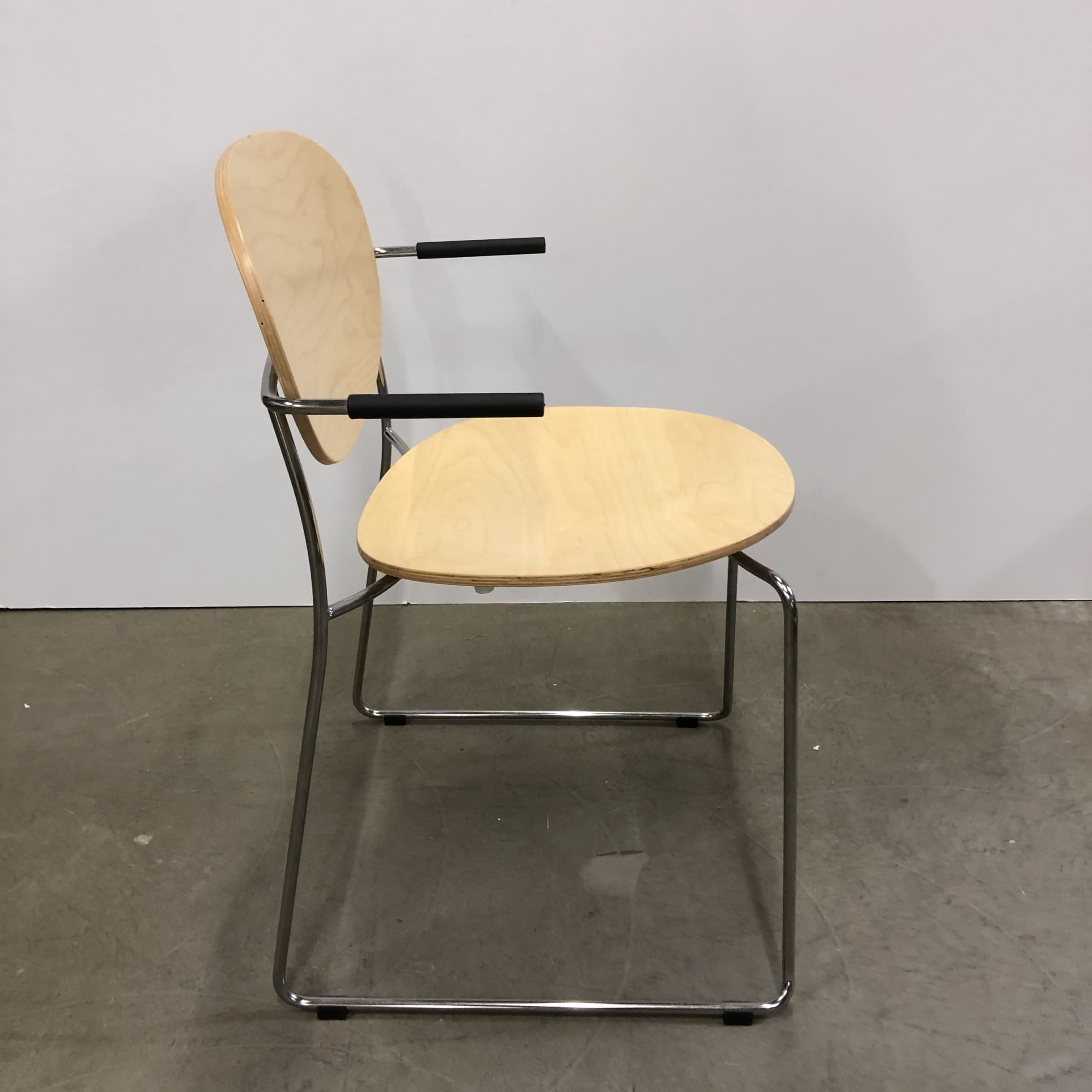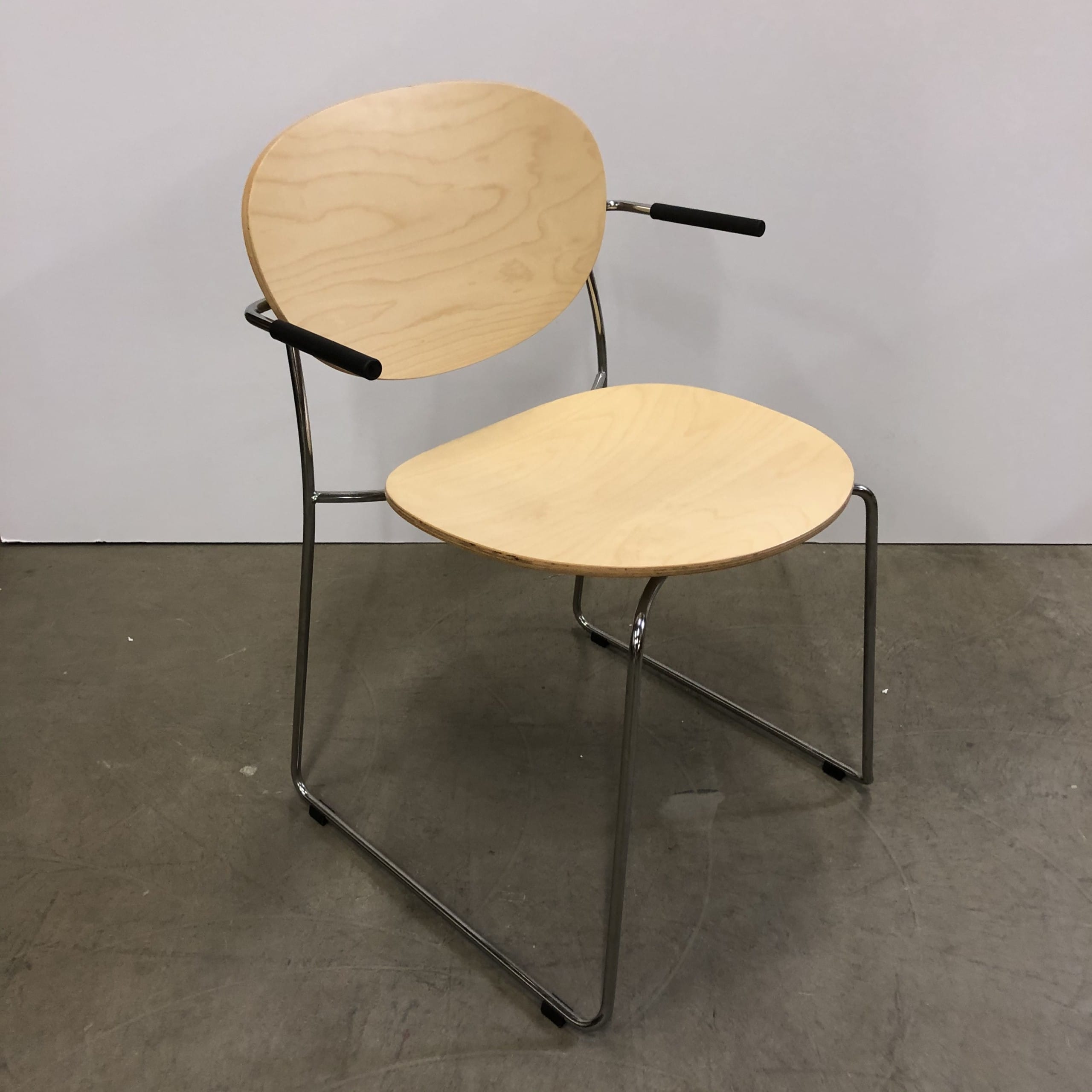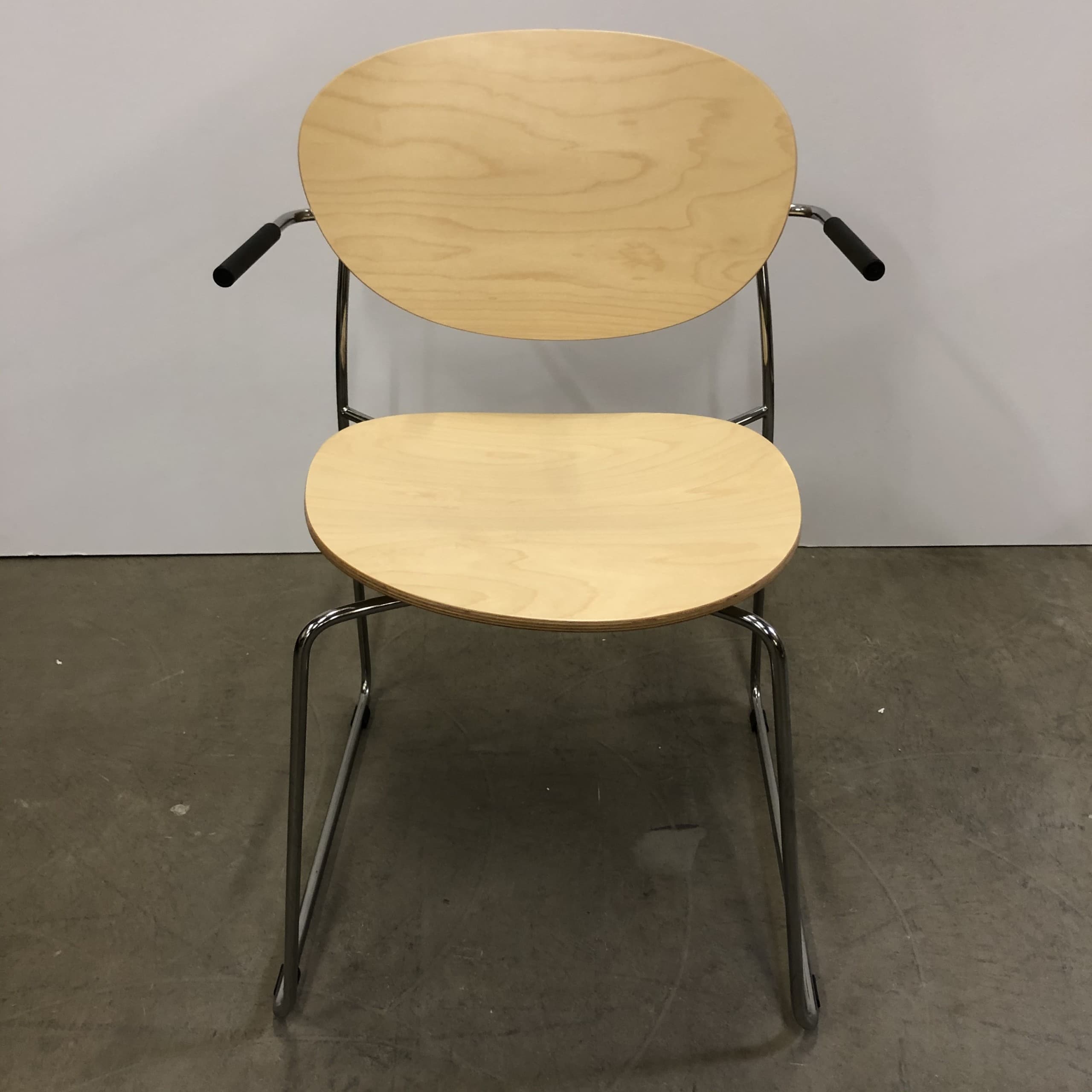 Seat and backrest in wood (birch). Sledgebase in metal (chrome).