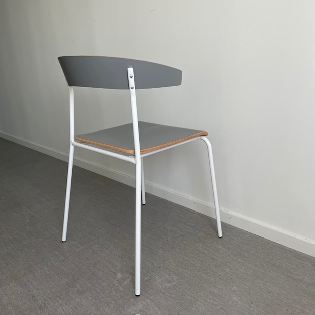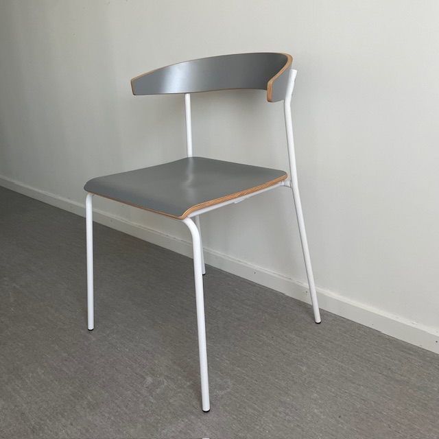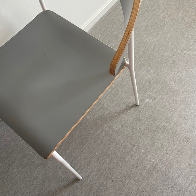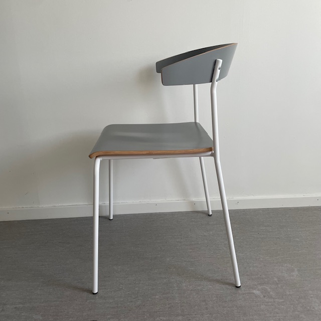Seat and backrest in laminat (grey). Legs in metal (white).